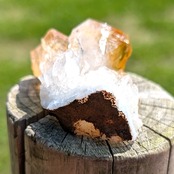 ◯黄色に輝くシトリンのポイントクラスターで、透き通るようなオレンジ色の部分が、宝石質の光を放つ、特別な一品となります。