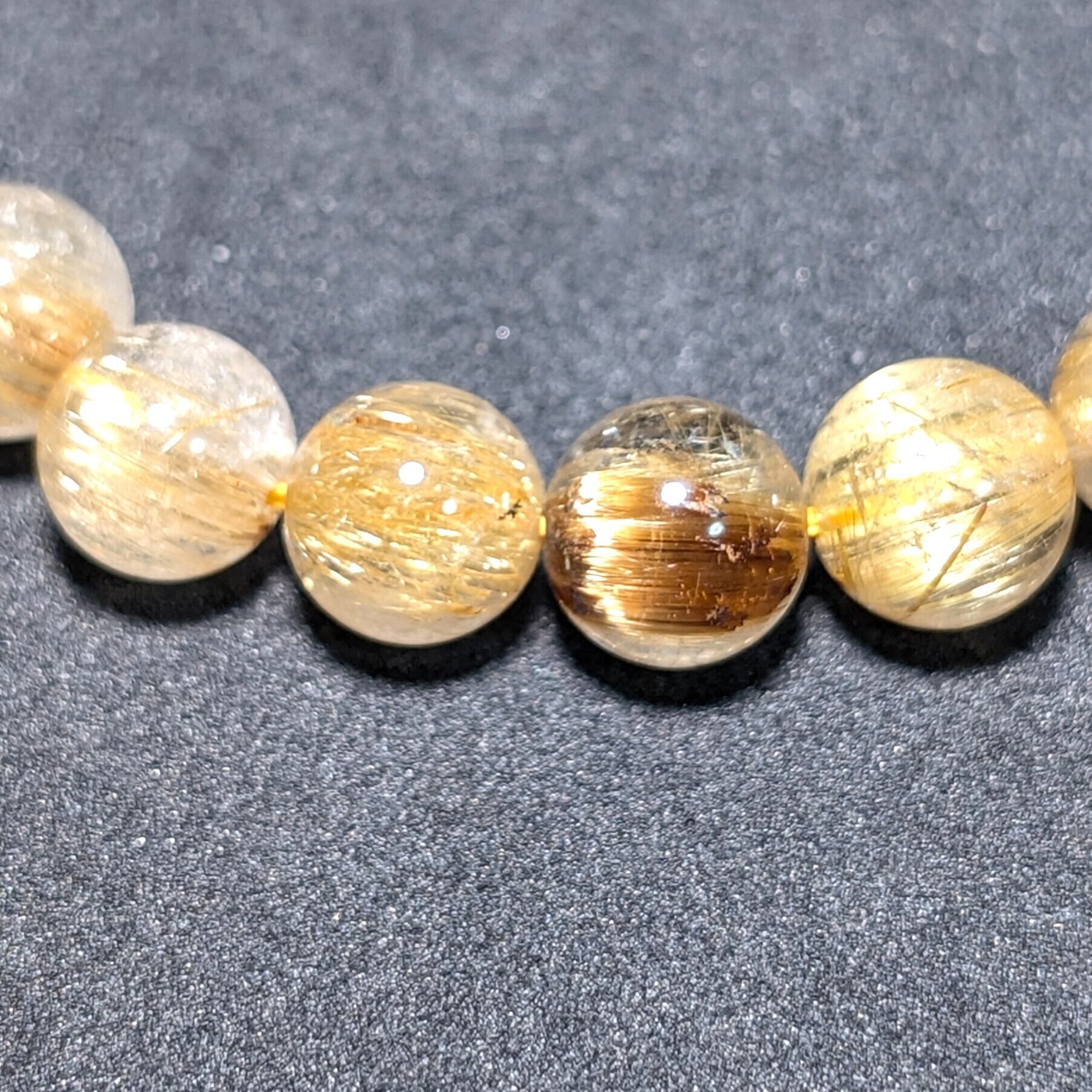 ☆ゴールドタイチンルチルを組み合わせて作ったブレスレットですが、幾つかの玉にキャッツアイ効果が出ているものあり、かなりカッコいいです!!
