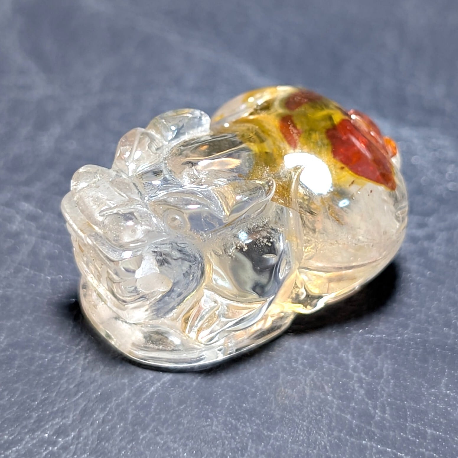透明感抜群のクォーツに、赤と黄色の美しい色の膜を作った非常に希少性の高い天然石です。