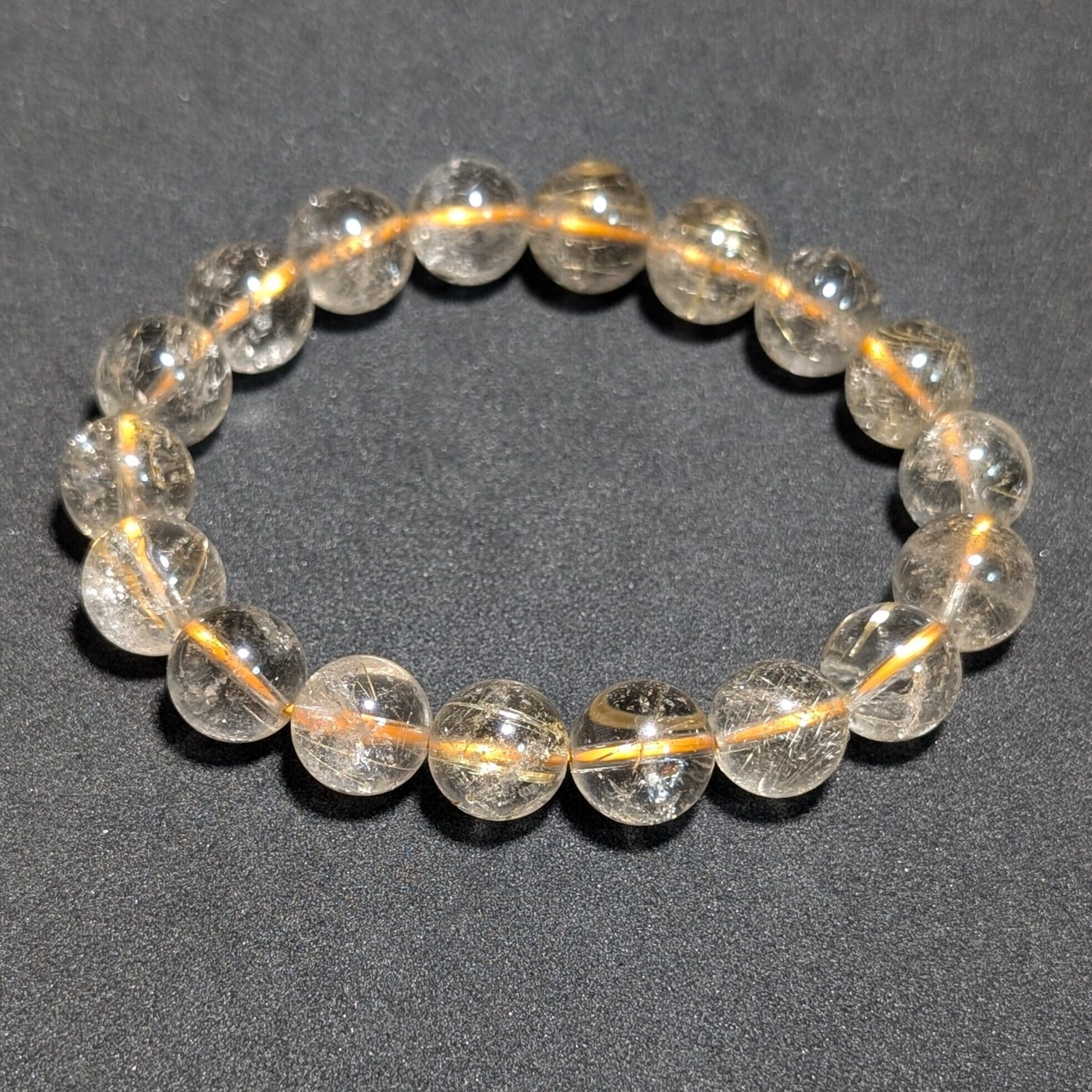 魅惑のオーラを放つ ゴールドルチル クォーツ ブレスレット 11ミリ 虹入り金針水晶 最強天然石 パワーストーン 金運を高める 開運 お守り効果 ギフト 卒業祝い 入学祝い プレゼント