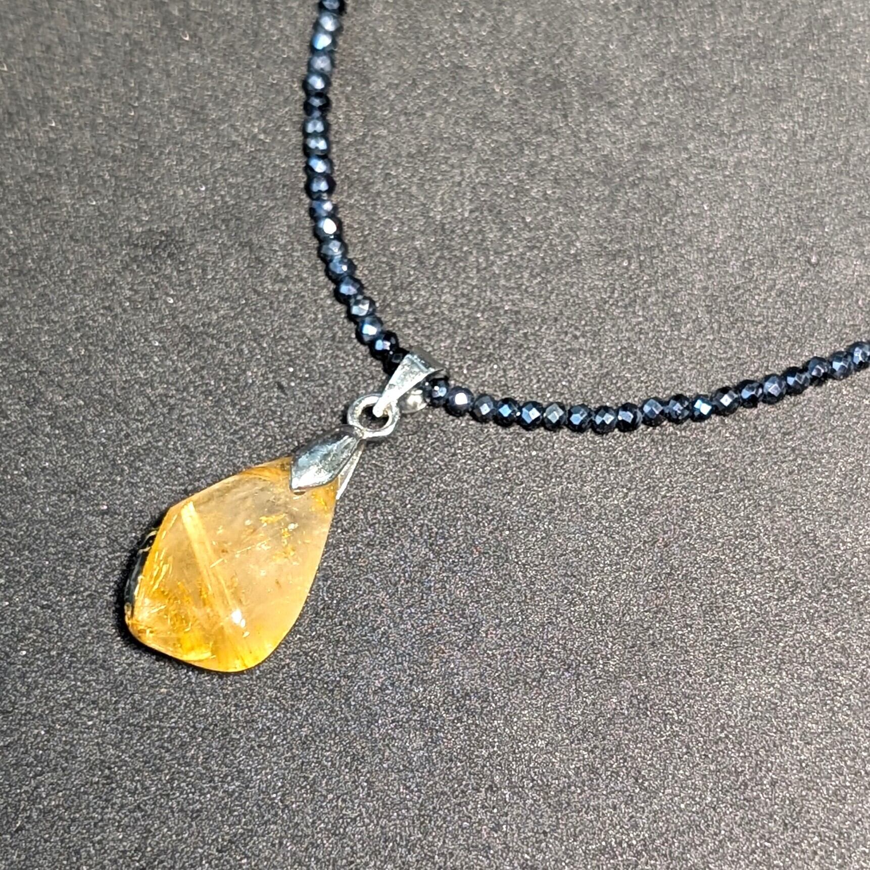そのルチルペンダントに、チタンコーティング加工のブラックスピネルを組み合わせたネックレスを完成させましたので、かなりおすすめです!