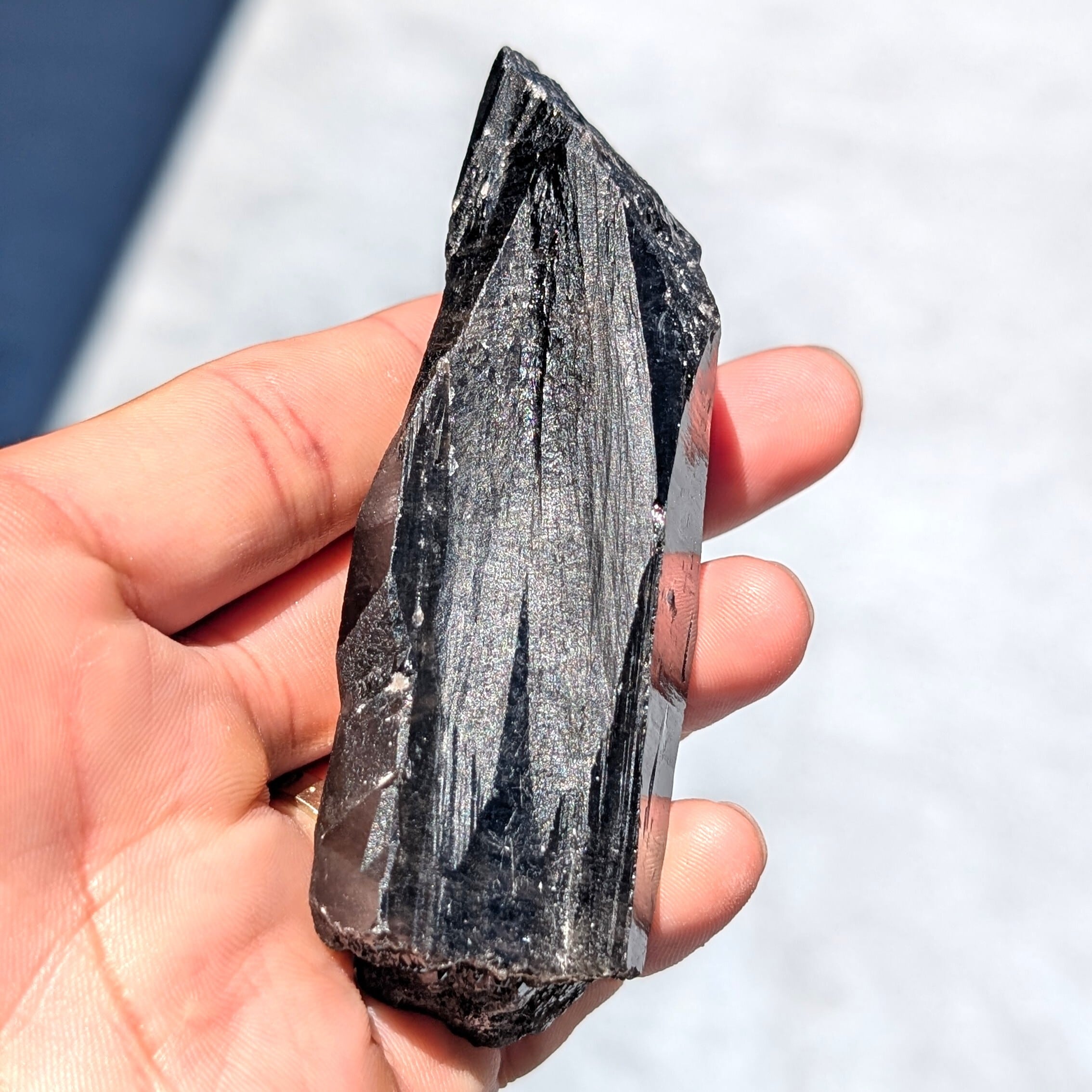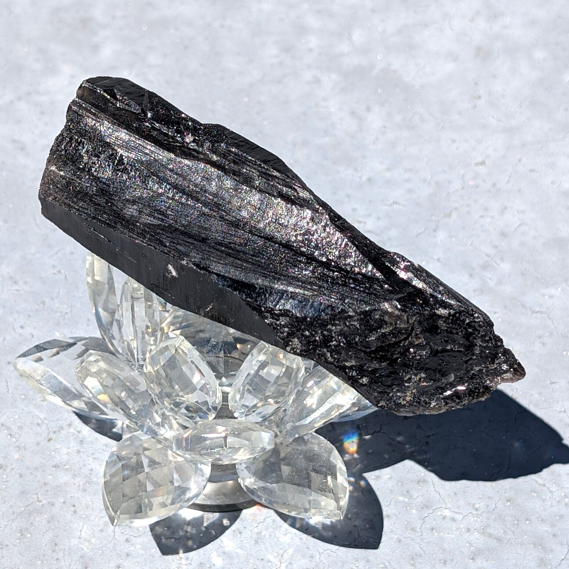 ギラギラと黒光りする中に、光が当たるとレインボーのようなキラキラが目に付く、神秘のエネルギーを感じる一品です。