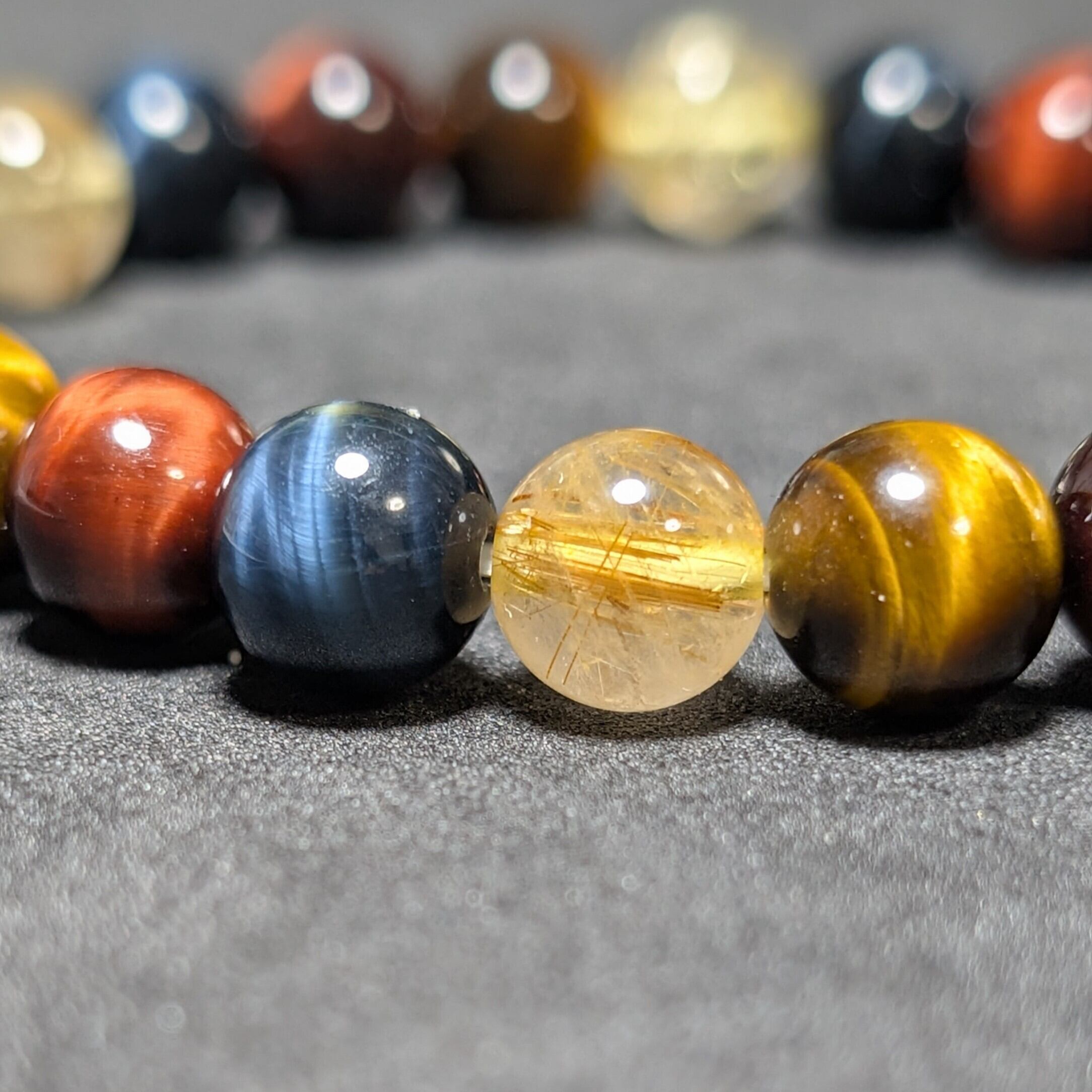 サイズの増減は、8mm三種タイガーアイで施します。