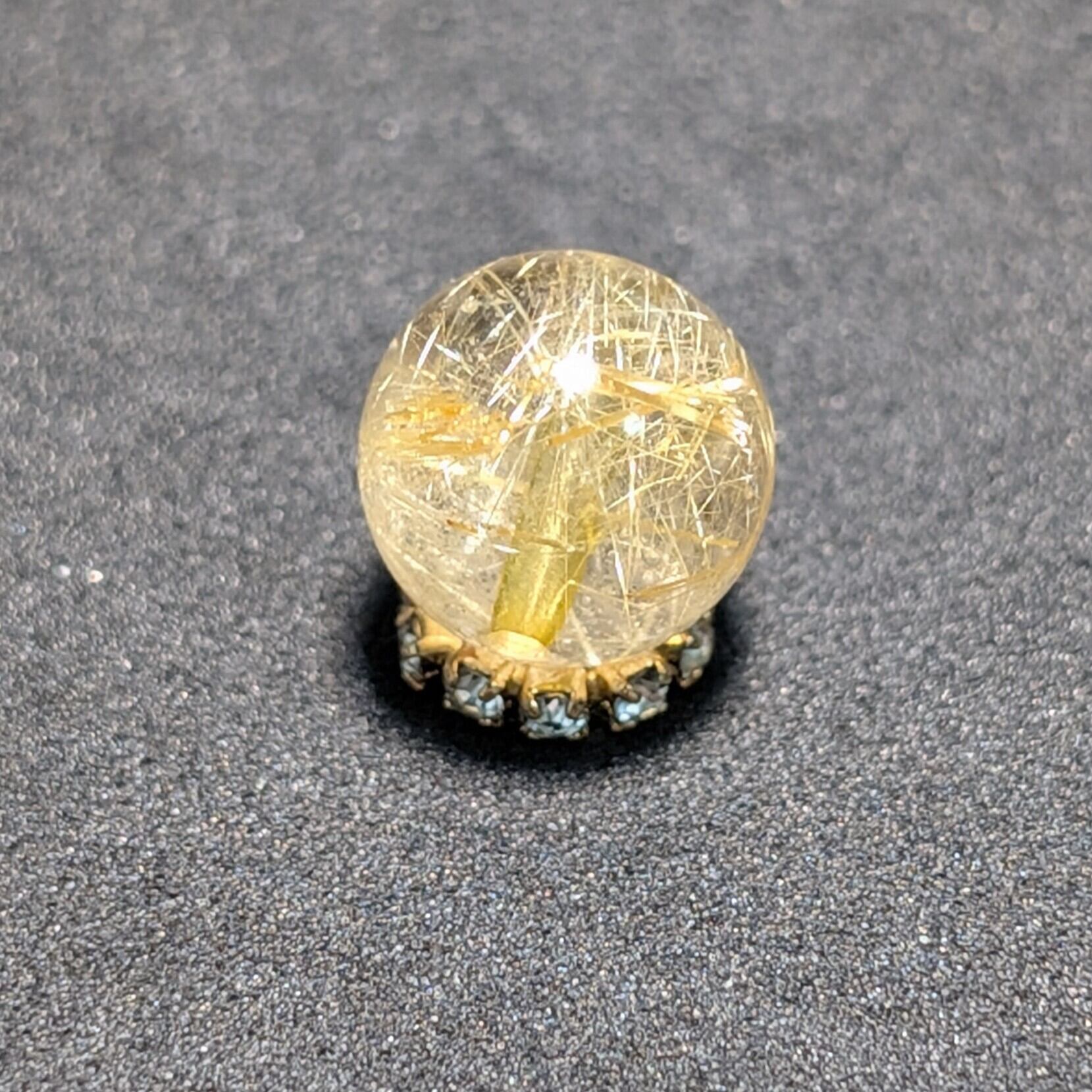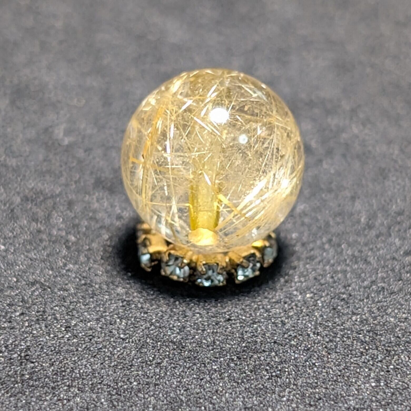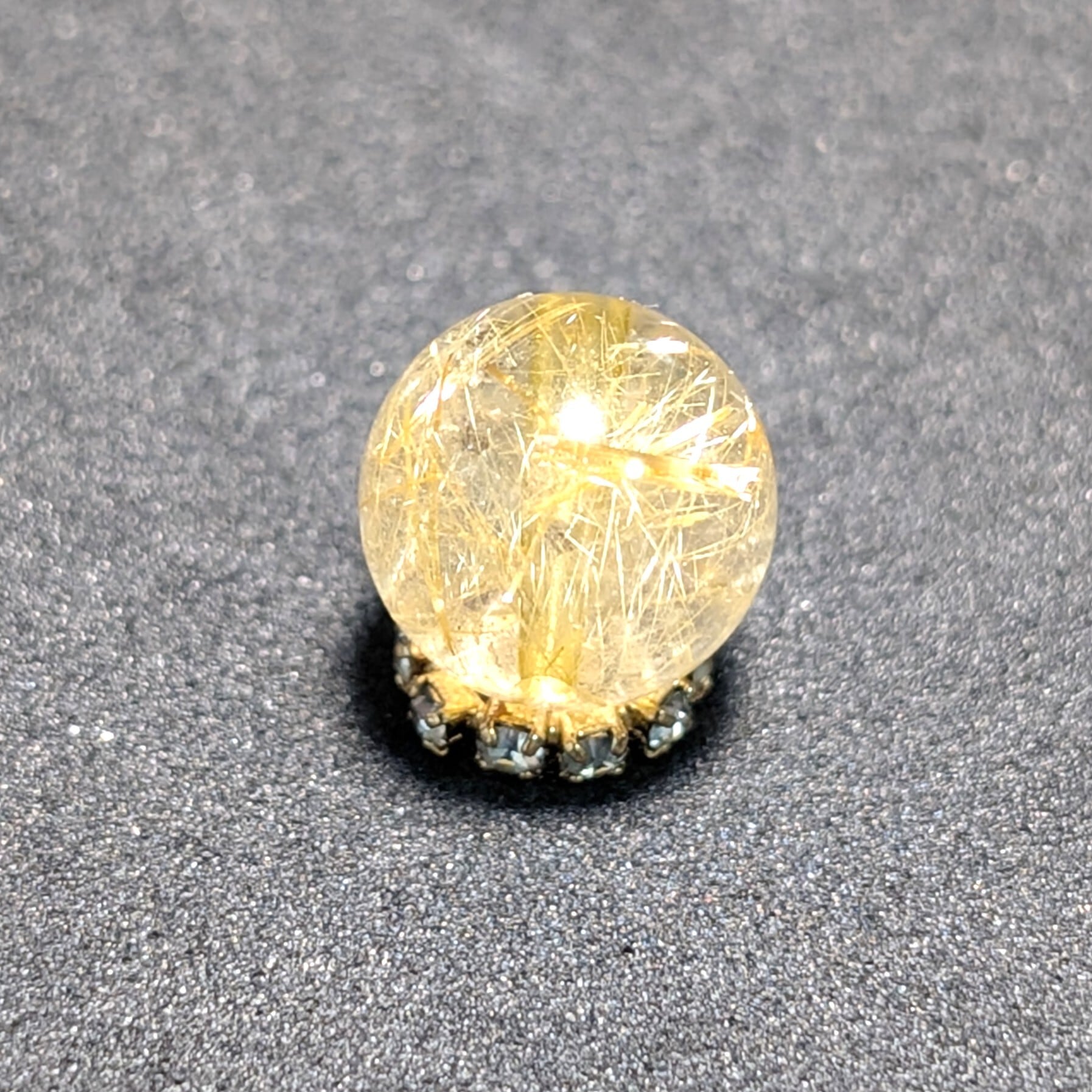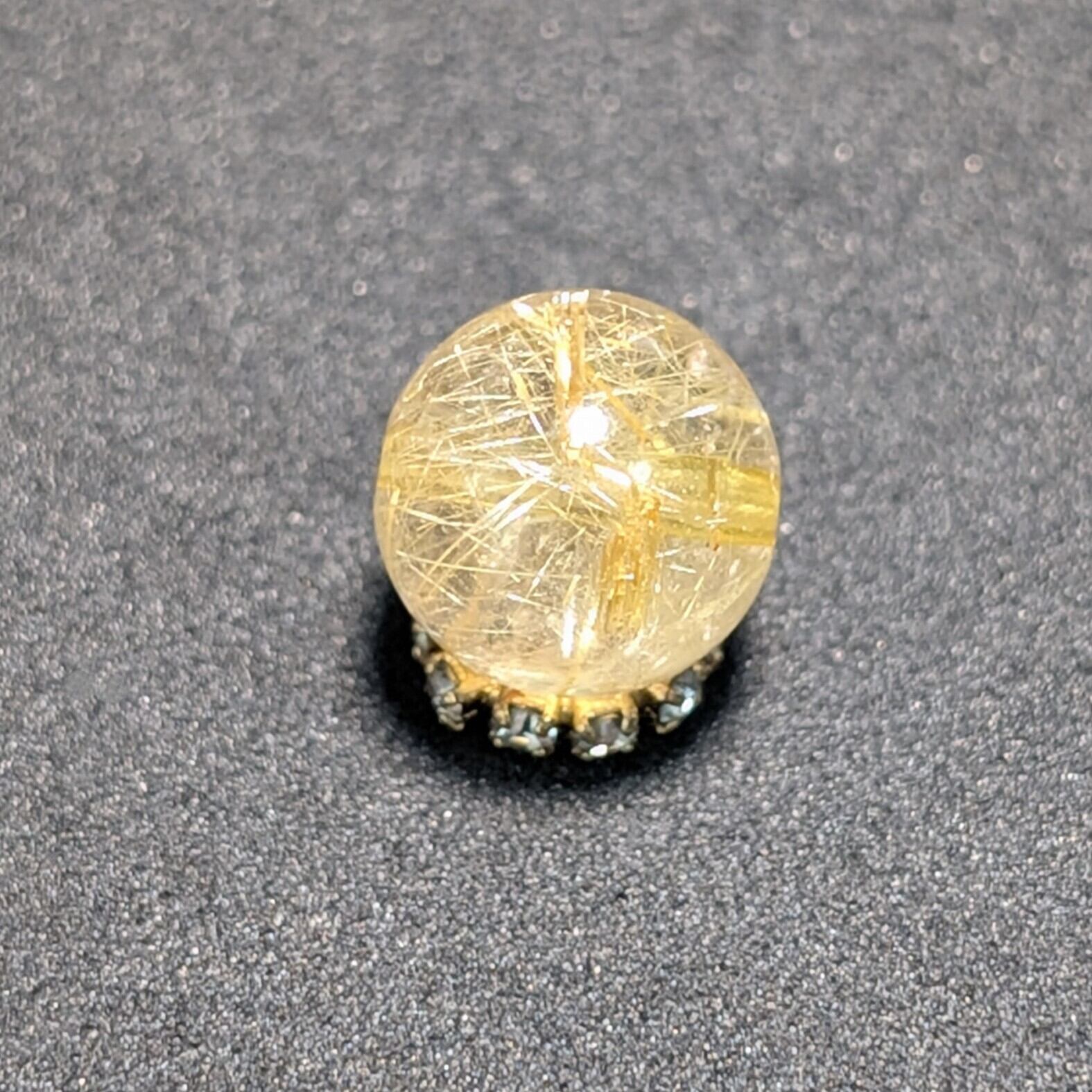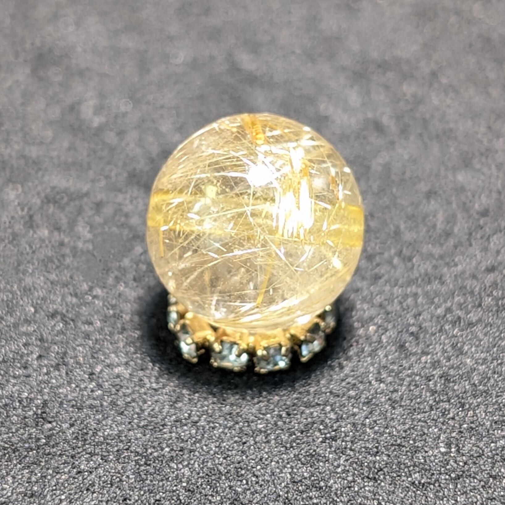 【惹き込まれる世界】ゴールド タイチンルチル 10ミリ 金針入り水晶 1粒売り 貫通穴あり パワーストーン お守り効果 天然石 ハンドメイド リメイク ネックレスやブレスレットに 贈り物 ギフト | N-Andloop