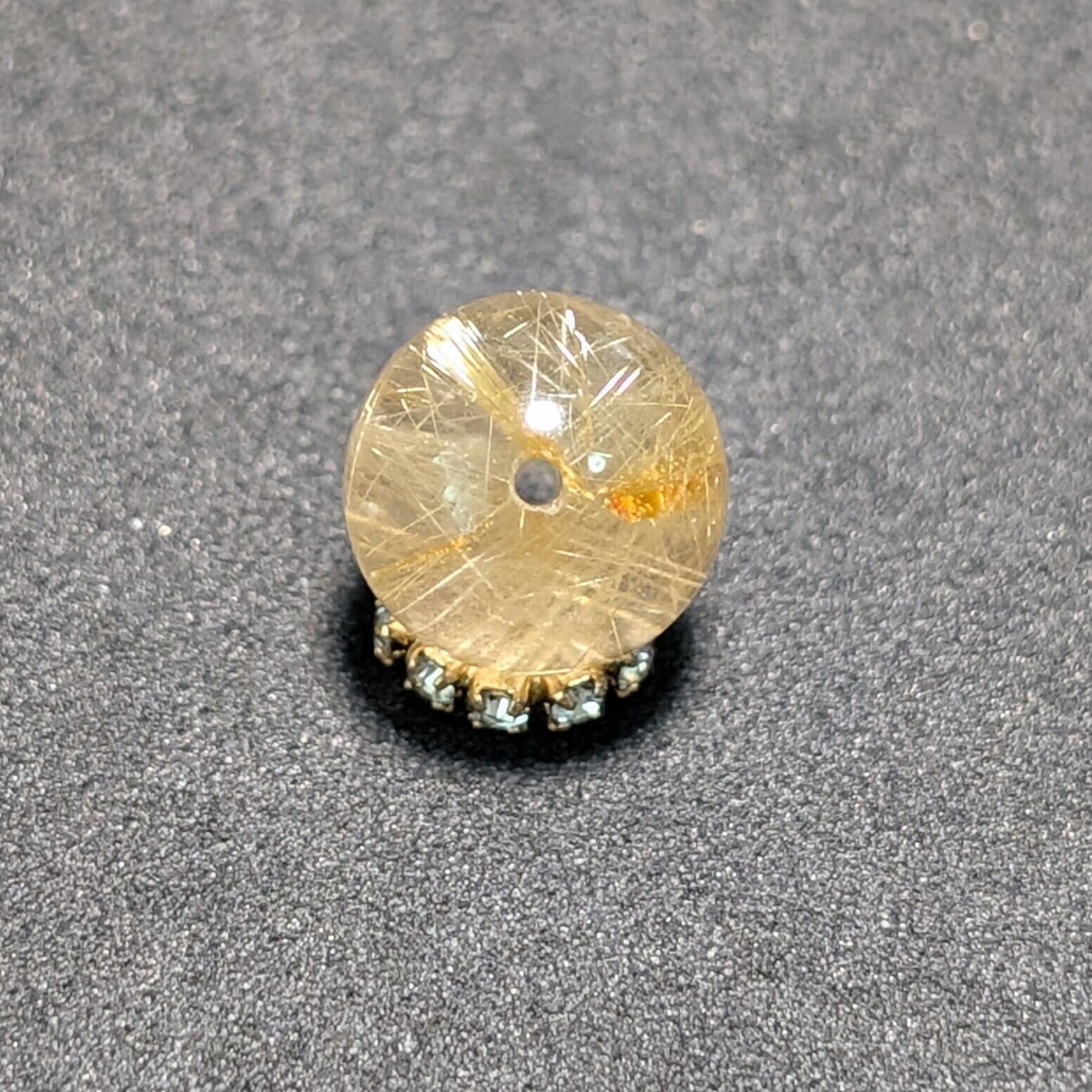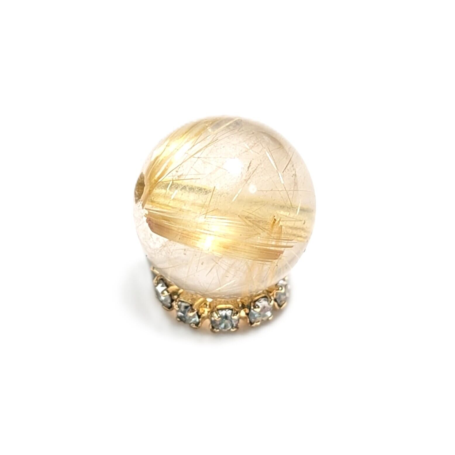 【勝利を目指すあなたへ】ゴールド タイチンルチル 10ミリ V字 金針入り水晶 1粒売り 貫通穴あり パワーストーン お守り効果 天然石 ハンドメイド リメイク ネックレスやブレスレットに 贈り物 ギフト | N-Andloop