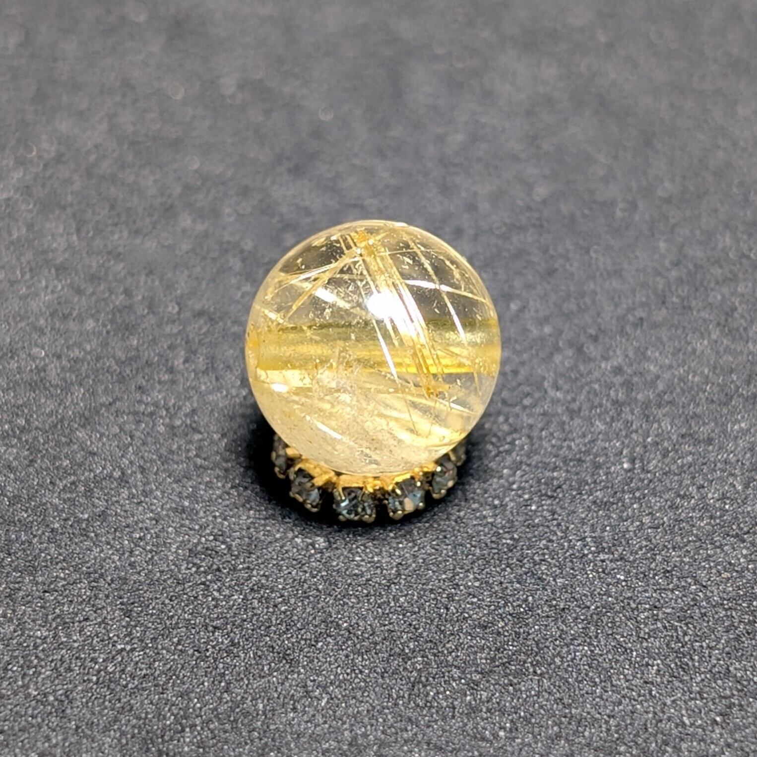 TST22【金色の針がカッコいい】ゴールド タイチンルチル 10ミリ 水晶 1粒売り 貫通穴あり パワーストーン お守り効果 天然石 ハンドメイド リメイク ネックレスやブレスレットに 贈り物 ギフト