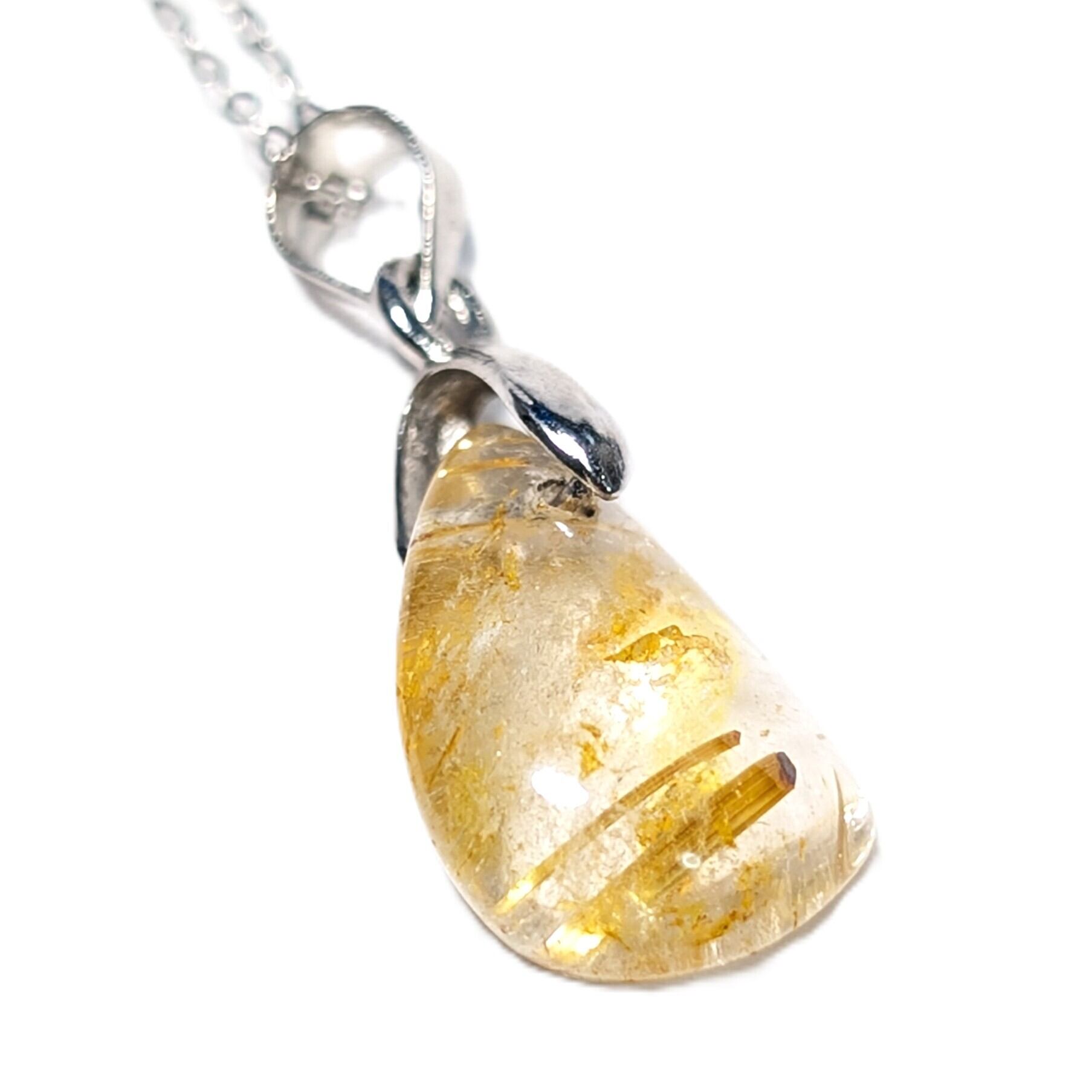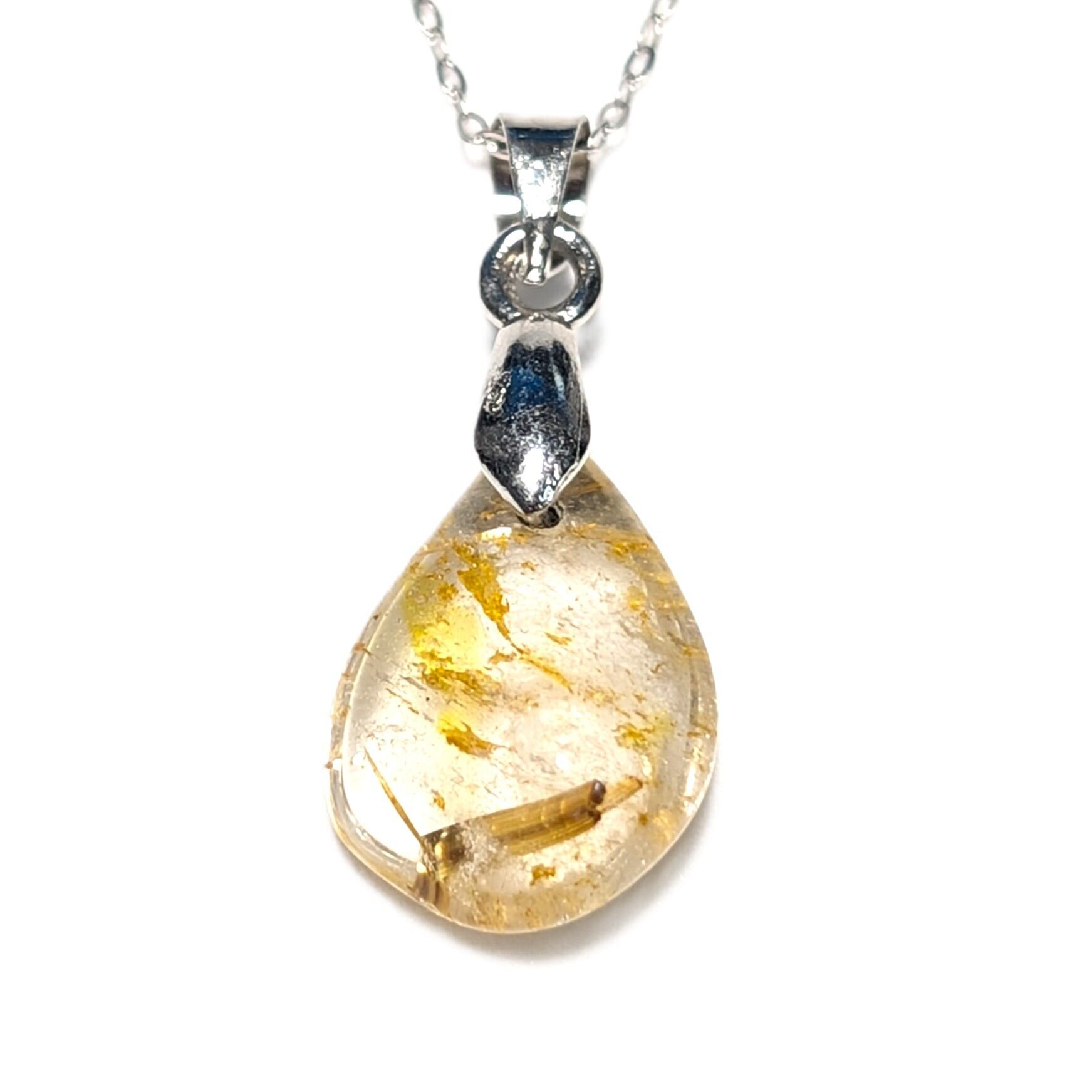 ルチルをインクルージョンとして含有しているクォーツのことをいいます。 このルチルは金紅石と呼ばれる二酸化チタン鉱物のひとつ。 同質異像鉱物とされるアナテースやブルッカイトと、花崗岩ペグマタイトや火成岩、変成岩中に共産します。 正方晶系に属する結晶が柱状になり、稀に双晶で見られることがあり、これがクォーツに含有されるとルチルクォーツになります。