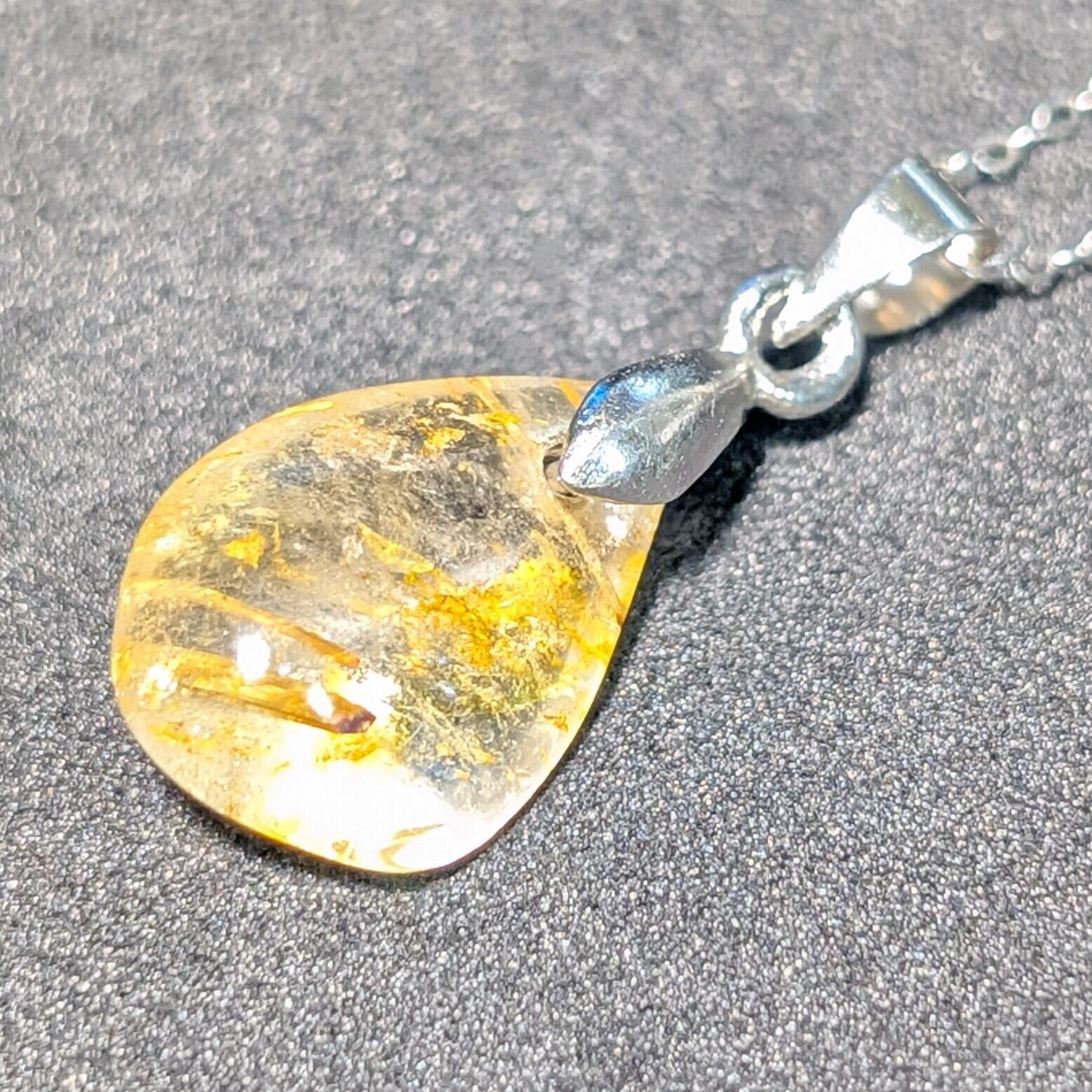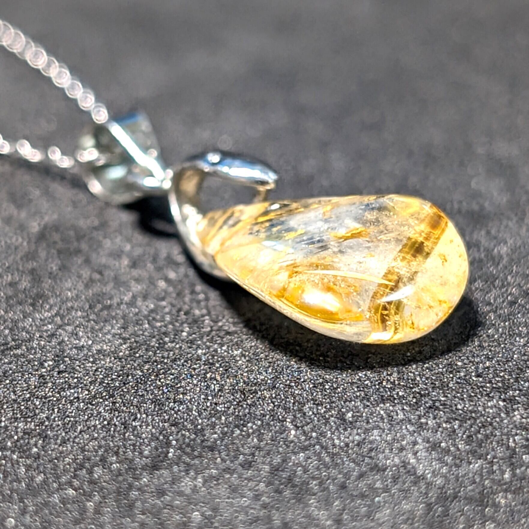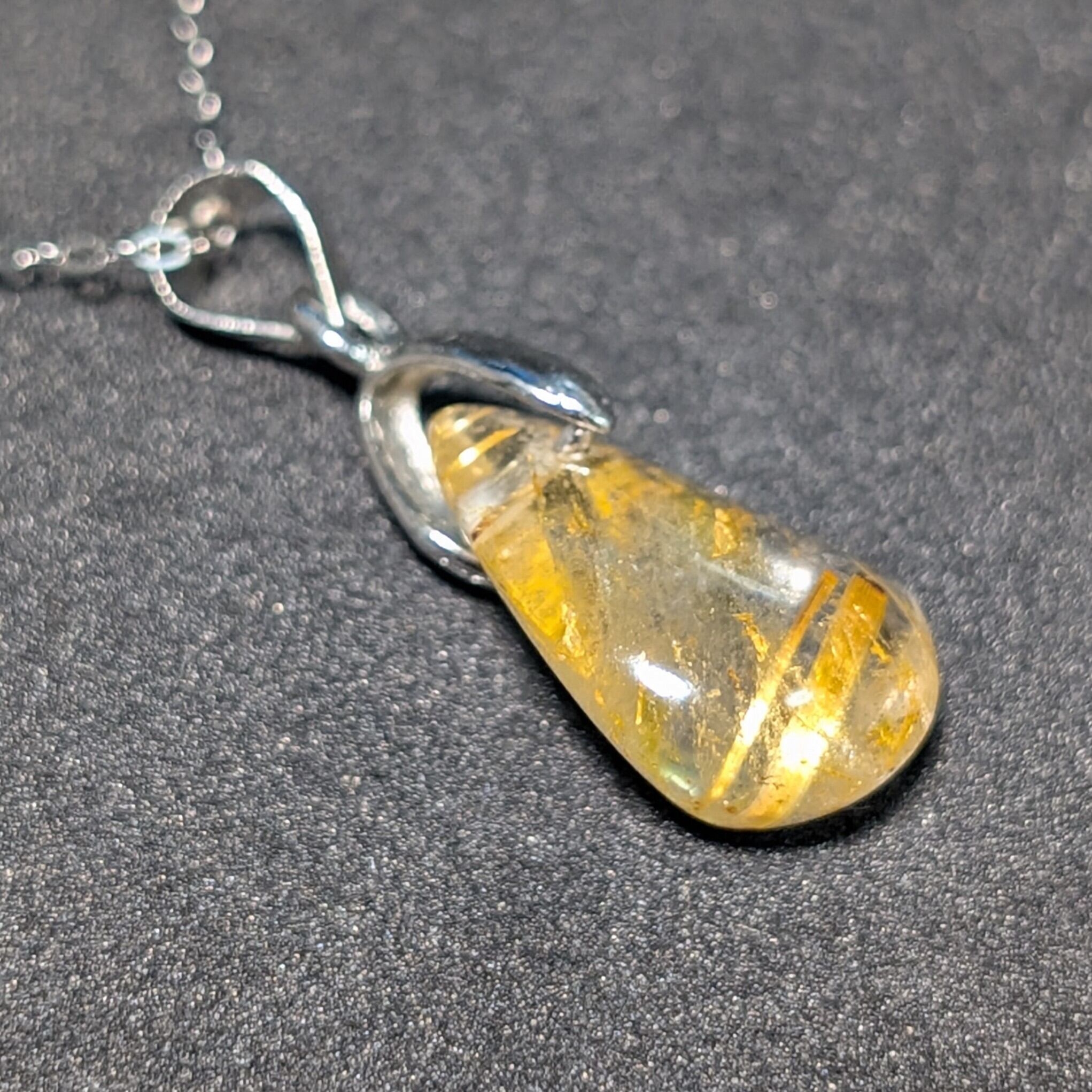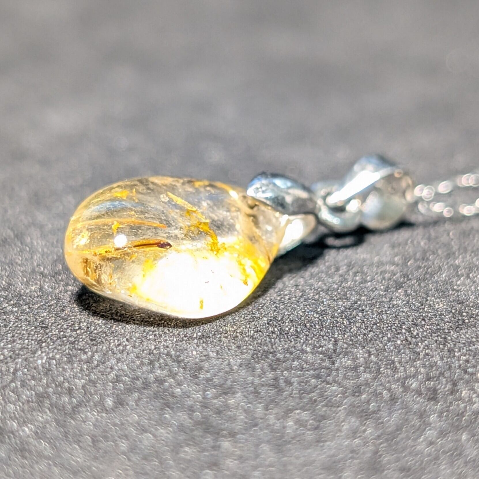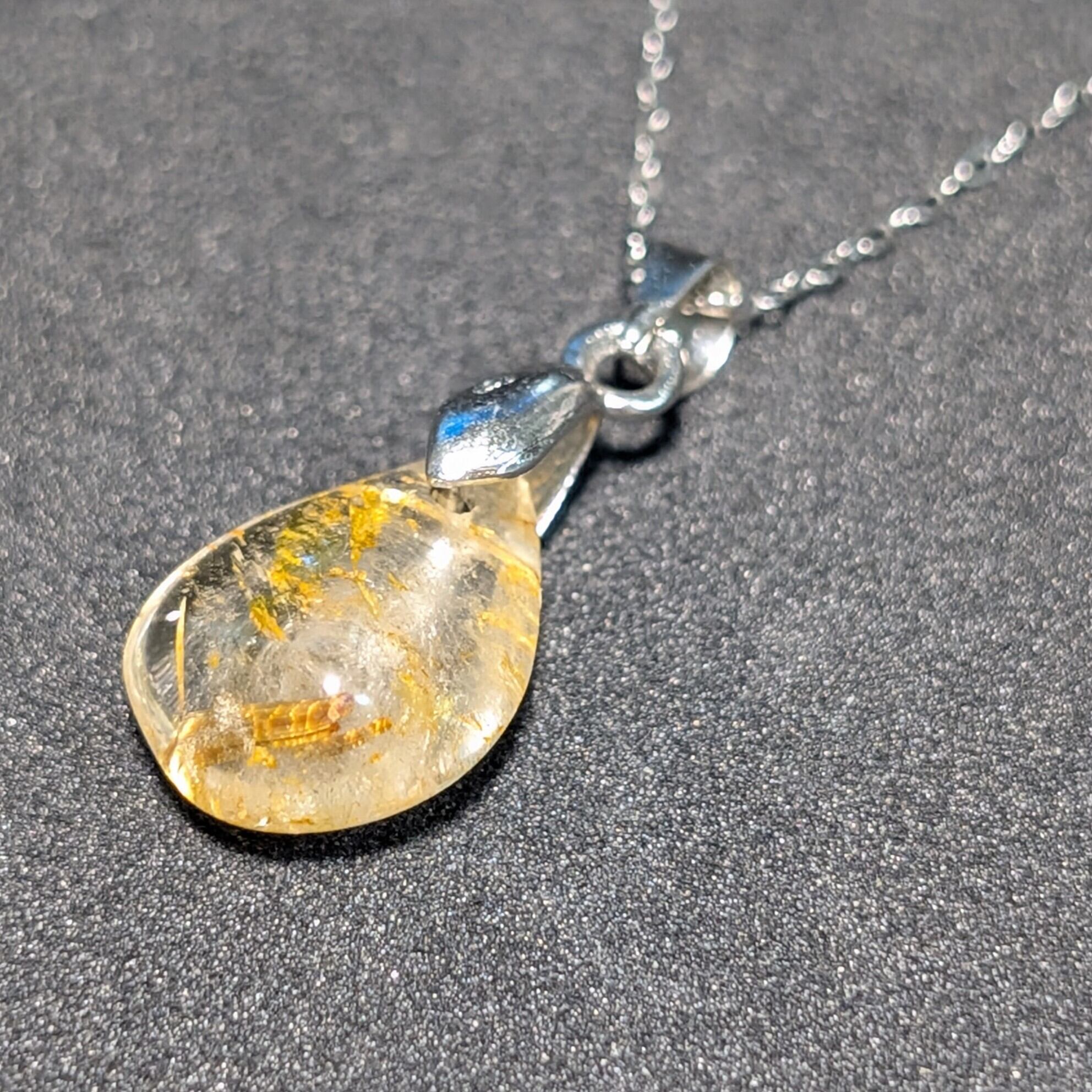 ◇ドロップ型のルースに内包するタイチンルチルが、迫力満点の一品!!