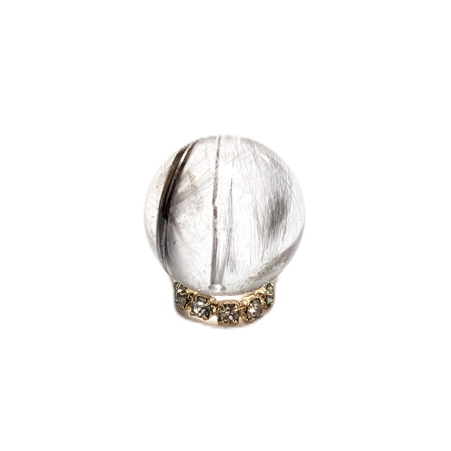 Plt5【壁を乗り越える力を】プラチナルチルクォーツ 一点物 12ミリ 1粒売り 貫通穴あり 白金水晶 パワーストーン お守り効果 天然石 ハンドメイド リメイク ネックレスやブレスレットに 贈り物 ギフト