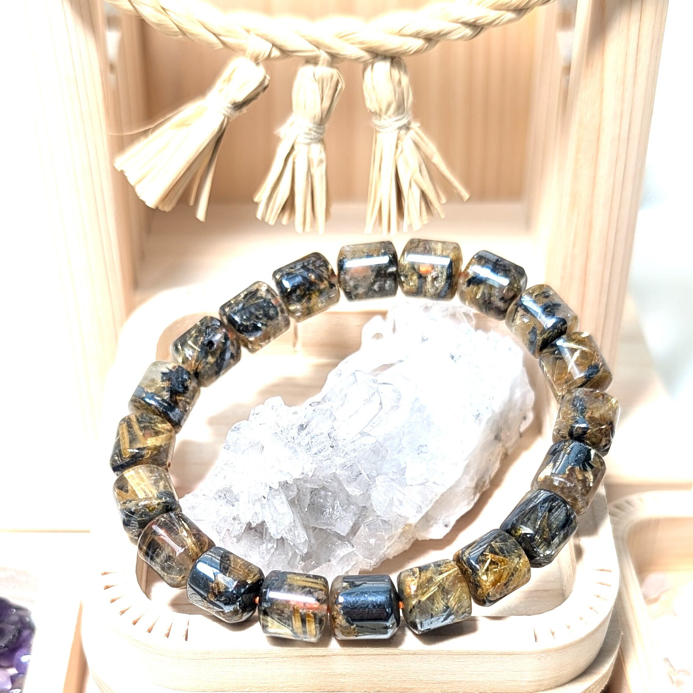 starrutileB2 太陽放射タイチンルチル スタールチル チューブカット ブレスレット 9ミリ 開運 パワーストーン お守り効果 ギフト クリスマス プレゼント