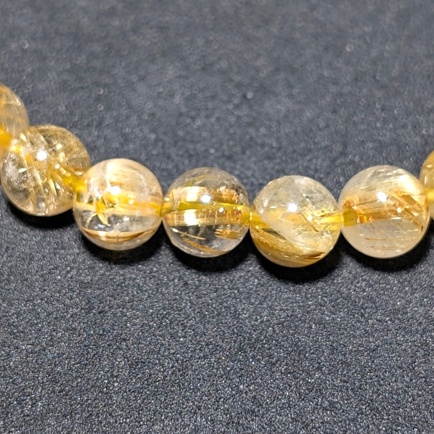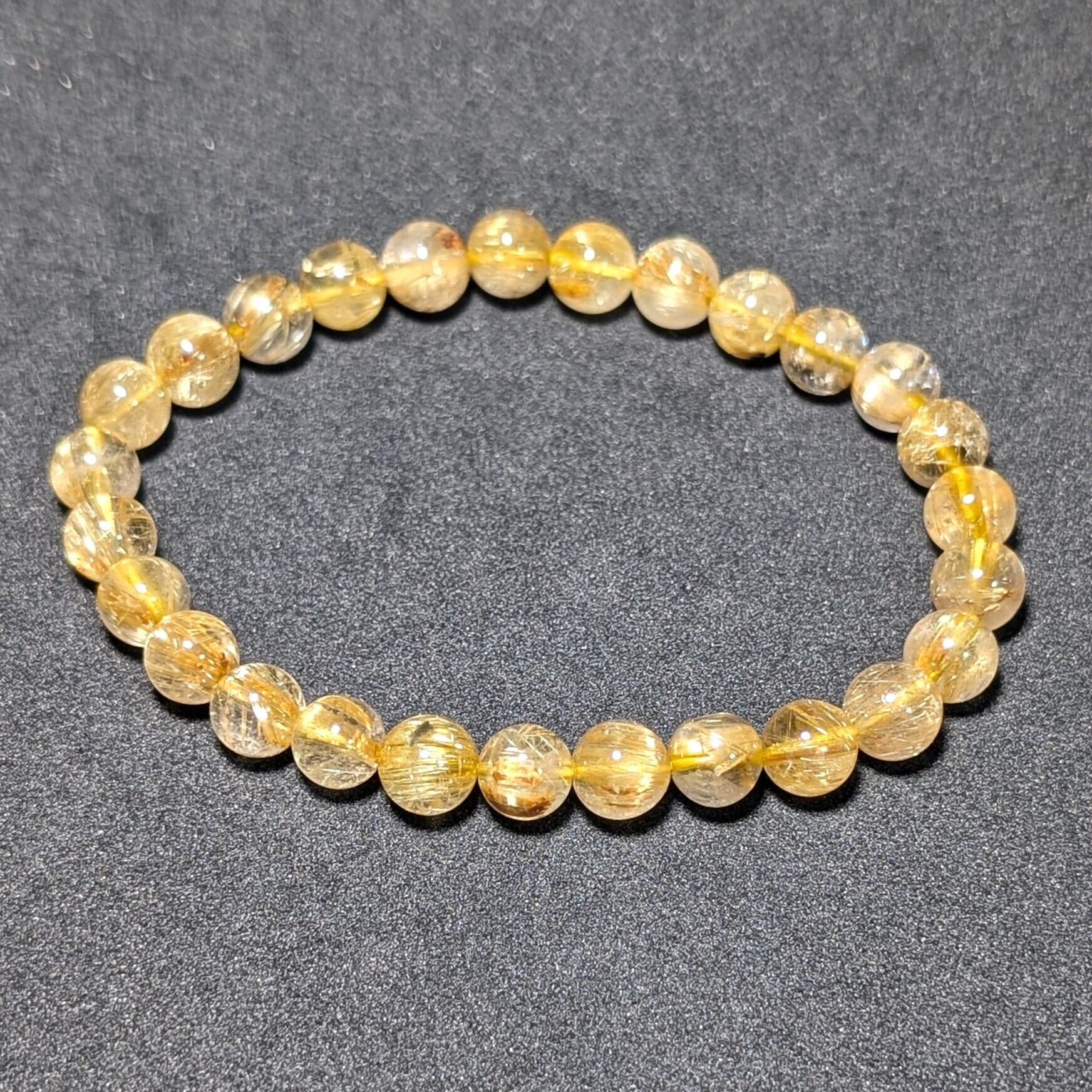 T2【黄金に輝く】タイチンルチル ブレスレット 7mm玉 手首サイズ16.5cm 金運を高める 最強水晶 開運 パワーストーン お守り効果 ギフト クリスマス プレゼント