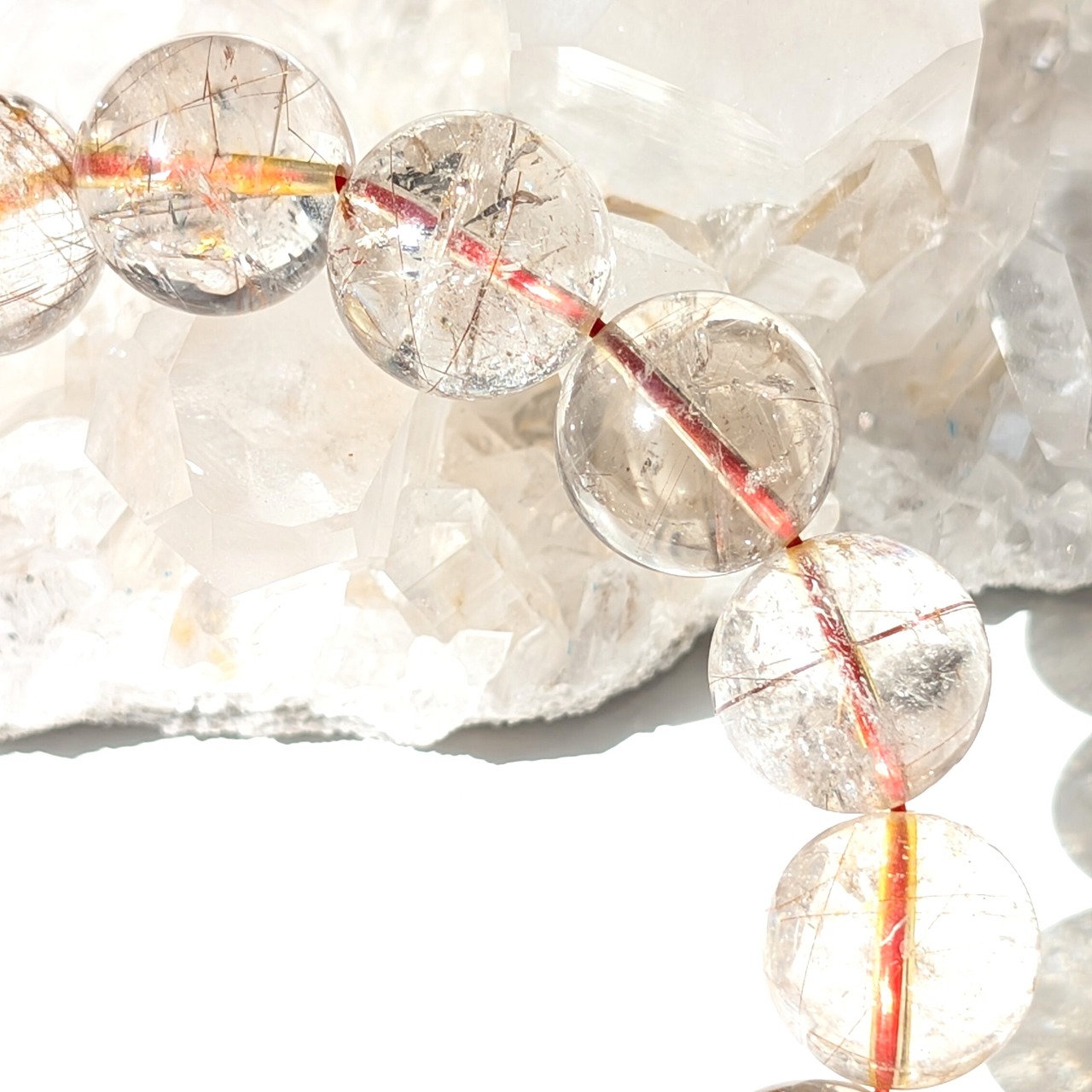 O2 虹とオレンジルチルが融合する神秘的なブレスレット 14ミリ 水晶のお守り効果 宝くじ運 絶好調 ギフト