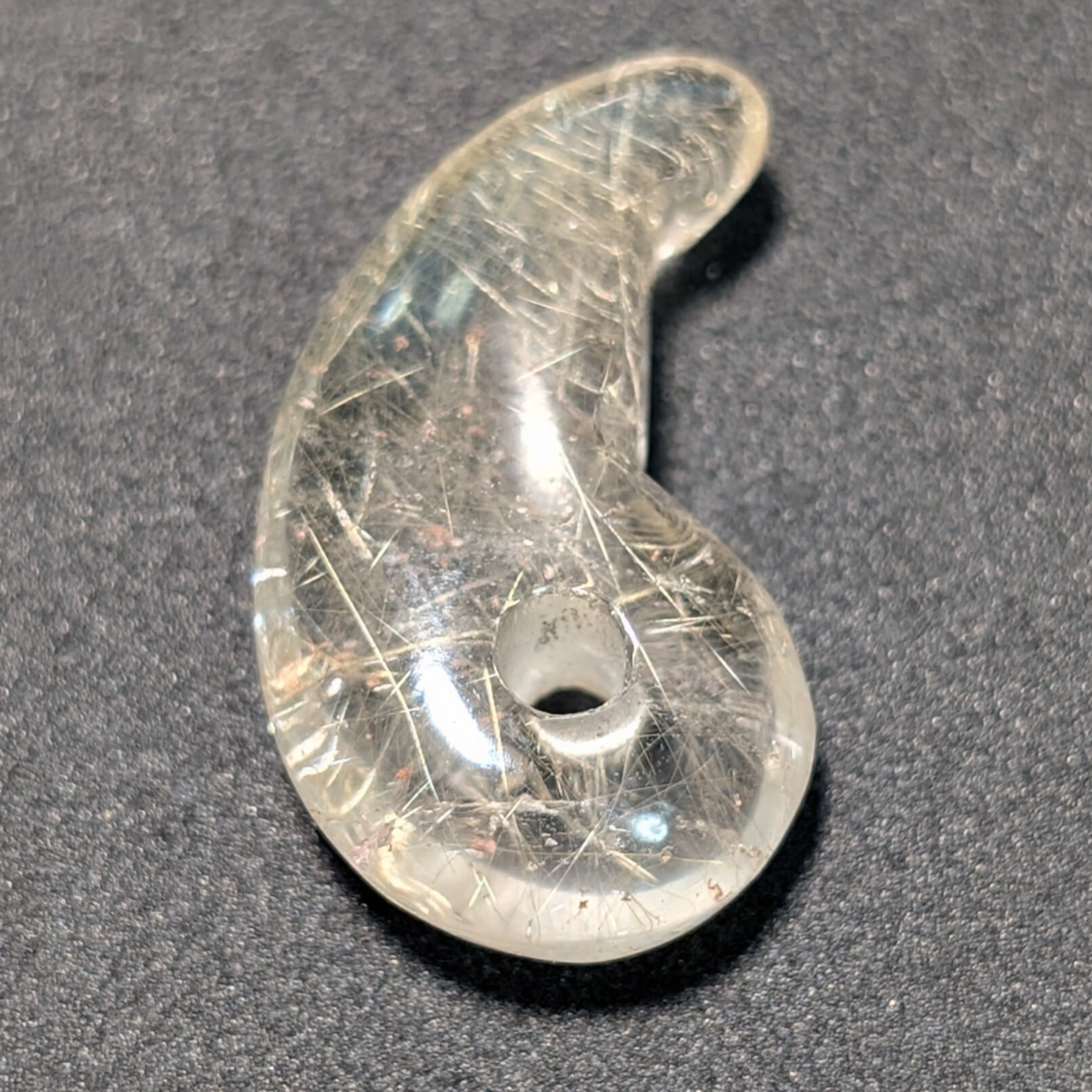 Rm7【柔らかい金の糸のようなルチル】ゴールドルチル 勾玉 金針水晶 透き通るクォーツ お守り効果 天然石 ハンドメイド リメイク ネックレスやブレスレットに ギフト 贈り物 クリスマス プレゼント