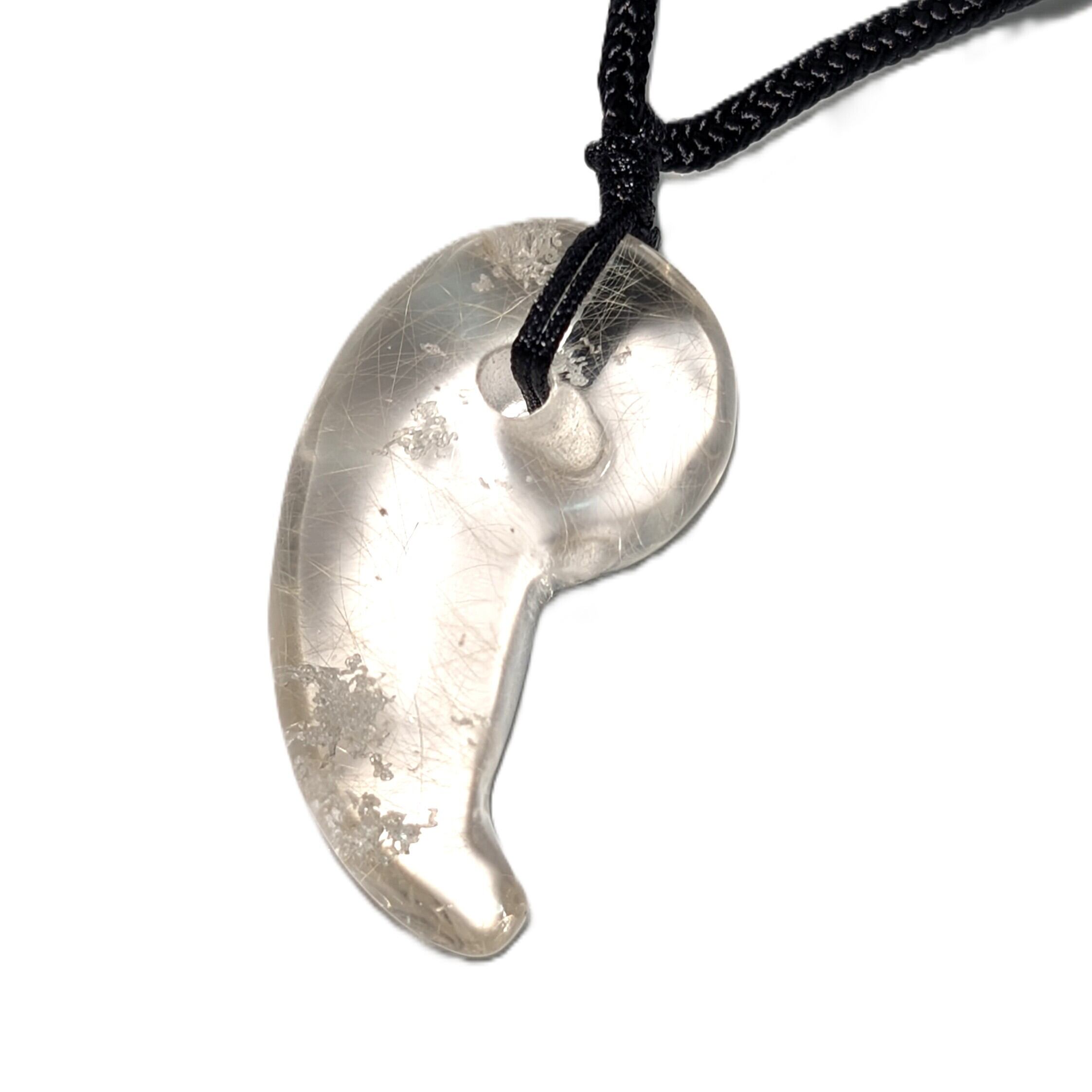ルチルをインクルージョンとして含有しているクォーツのことをいいます。 このルチルは金紅石と呼ばれる二酸化チタン鉱物のひとつ。 同質異像鉱物とされるアナテースやブルッカイトと、花崗岩ペグマタイトや火成岩、変成岩中に共産します。 正方晶系に属する結晶が柱状になり、稀に双晶で見られることがあり、これがクォーツに含有されるとルチルクォーツになります。