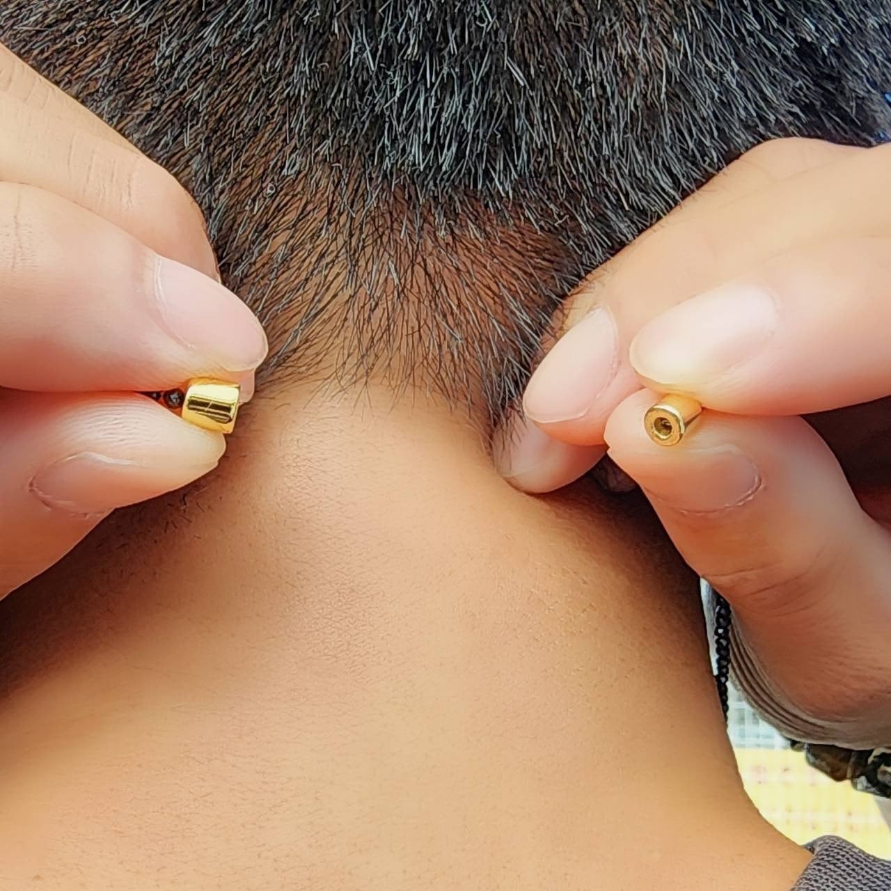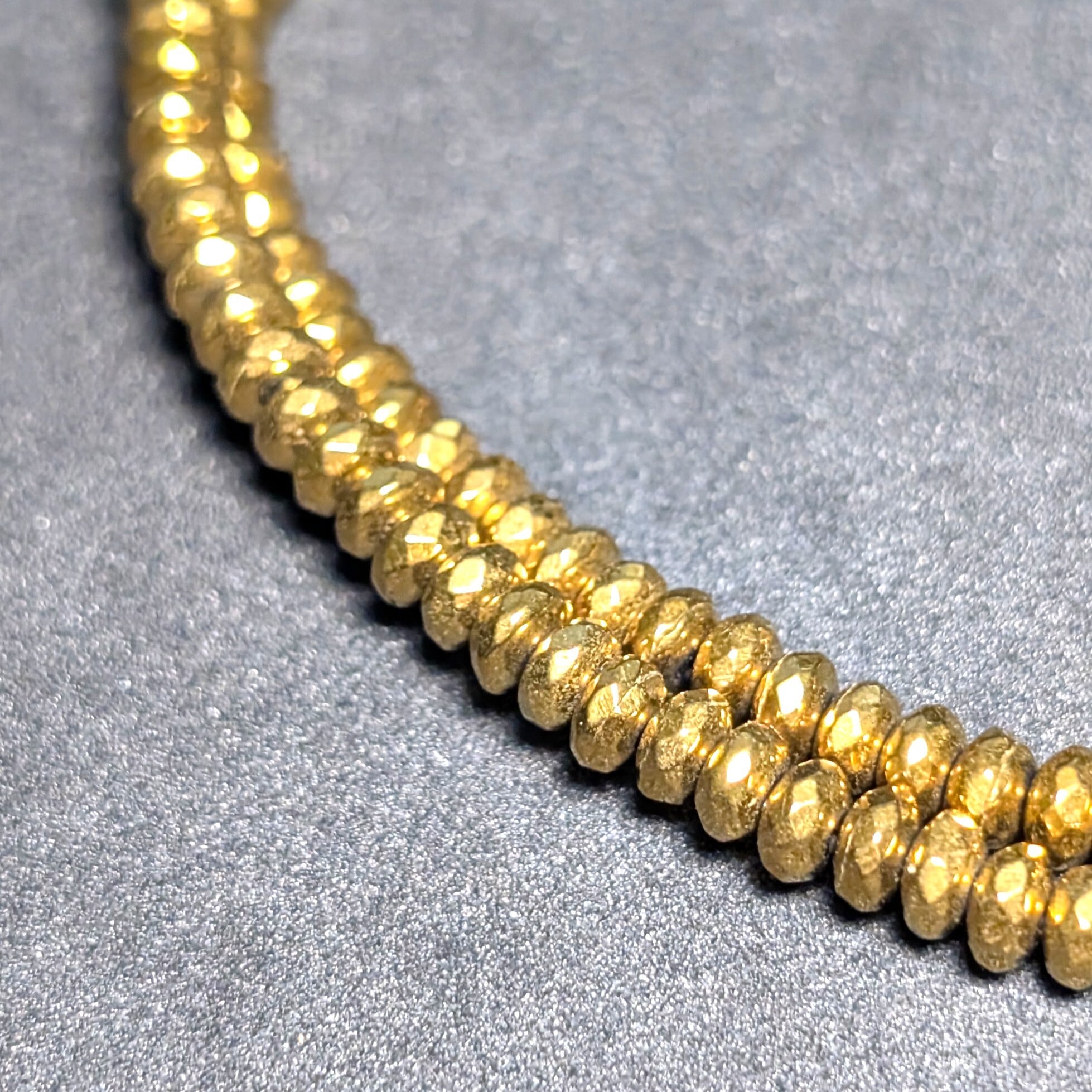 今回は、人工的に作られた磁気入りのヘマタイトとなり、ゴールドカラーのコーティングを施した人工磁性フェライトになります。
