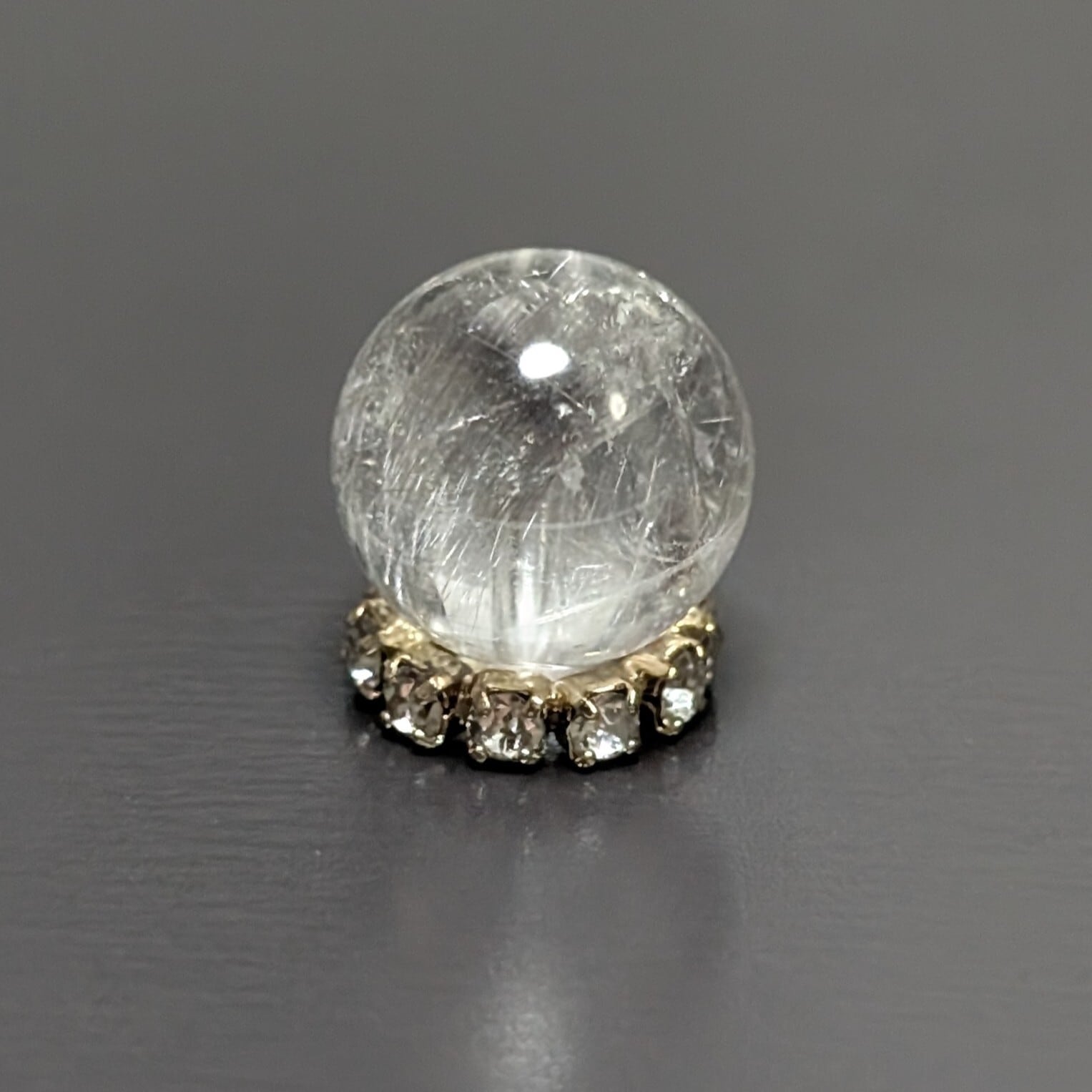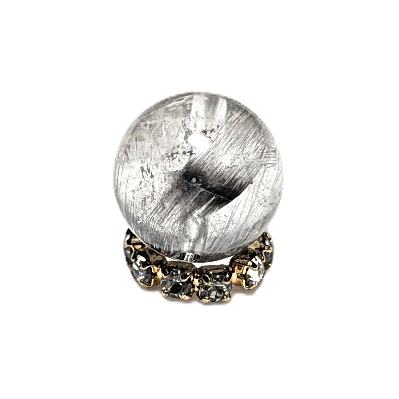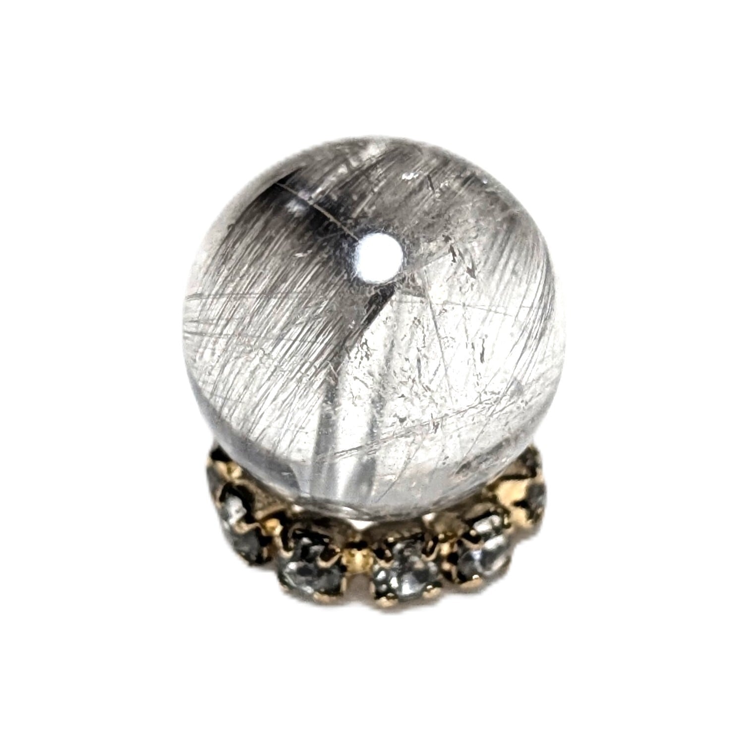 ◇透き通るクォーツに、今にも羽ばたくようなブルッカイトが内包するプラチナルチル8ミリ粒です。