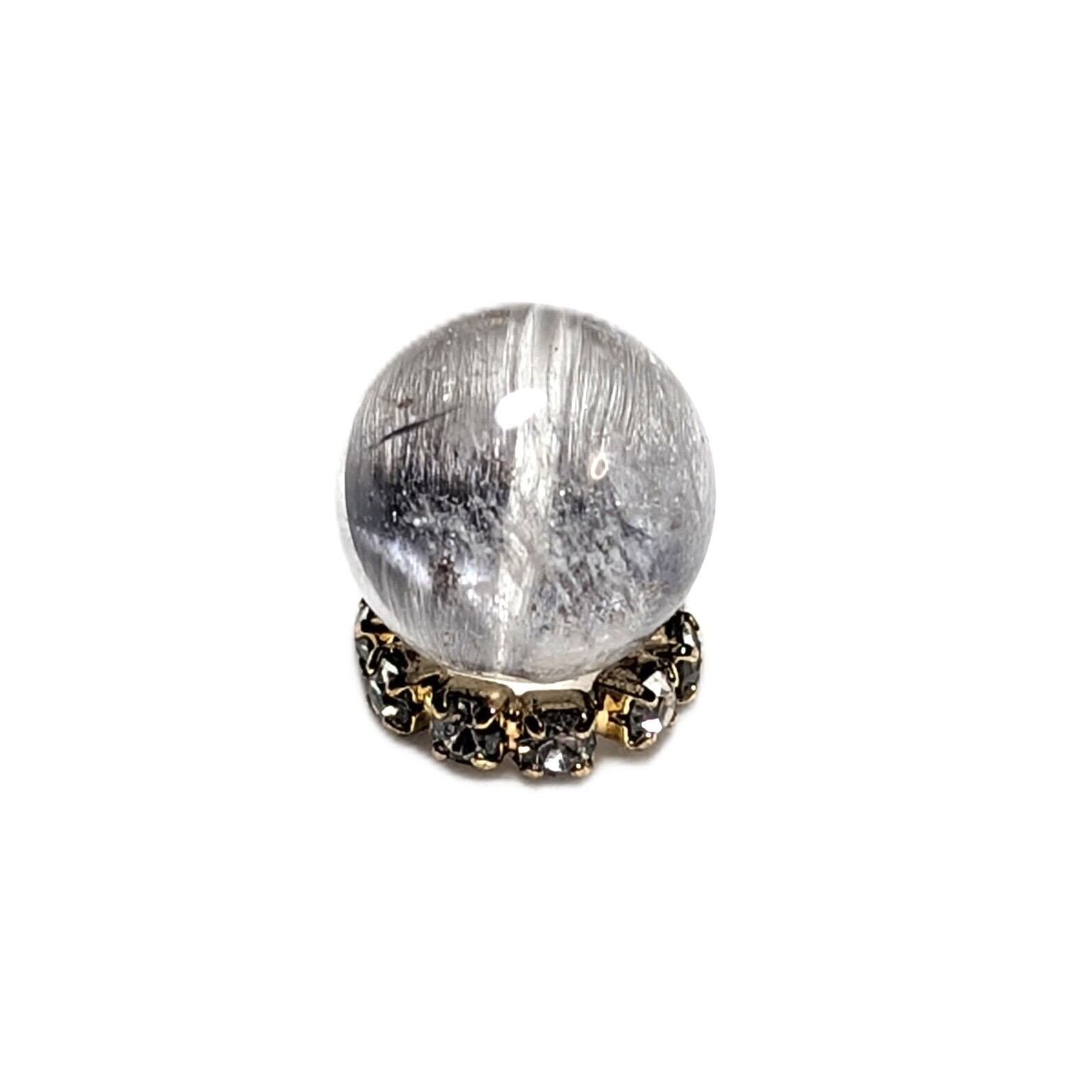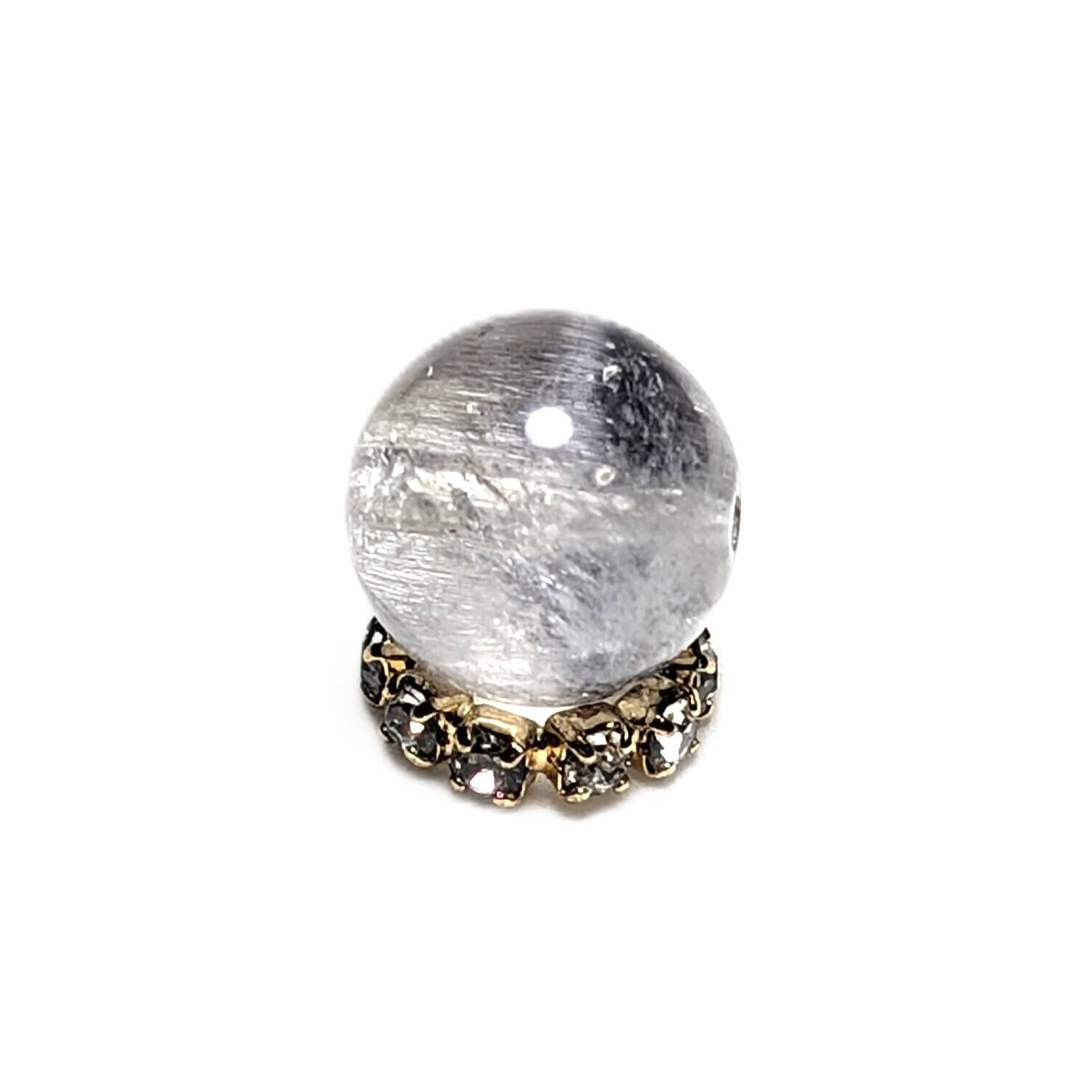 Plt23【ギラギラなブルッカイト】プラチナルチルクォーツ 一点物 8ミリ 1粒売り 貫通穴あり 白金水晶 パワーストーン お守り効果 天然石 ハンドメイド リメイク ネックレスやブレスレットに 贈り物 ギフト