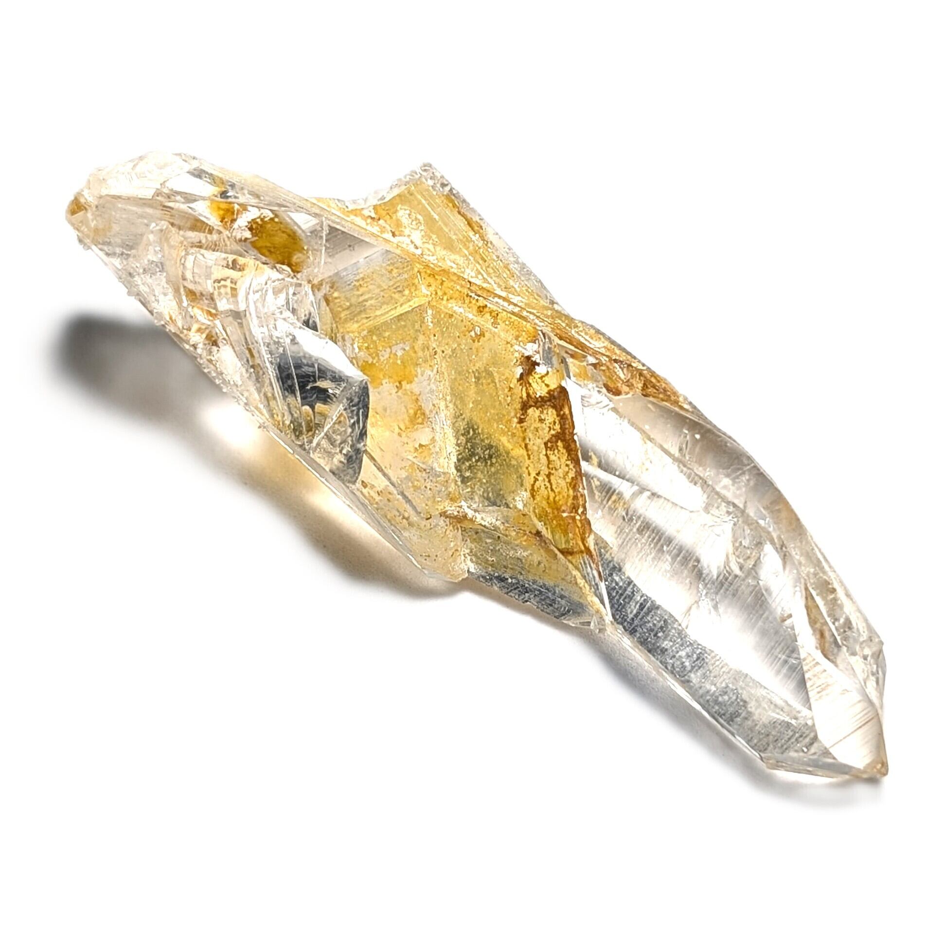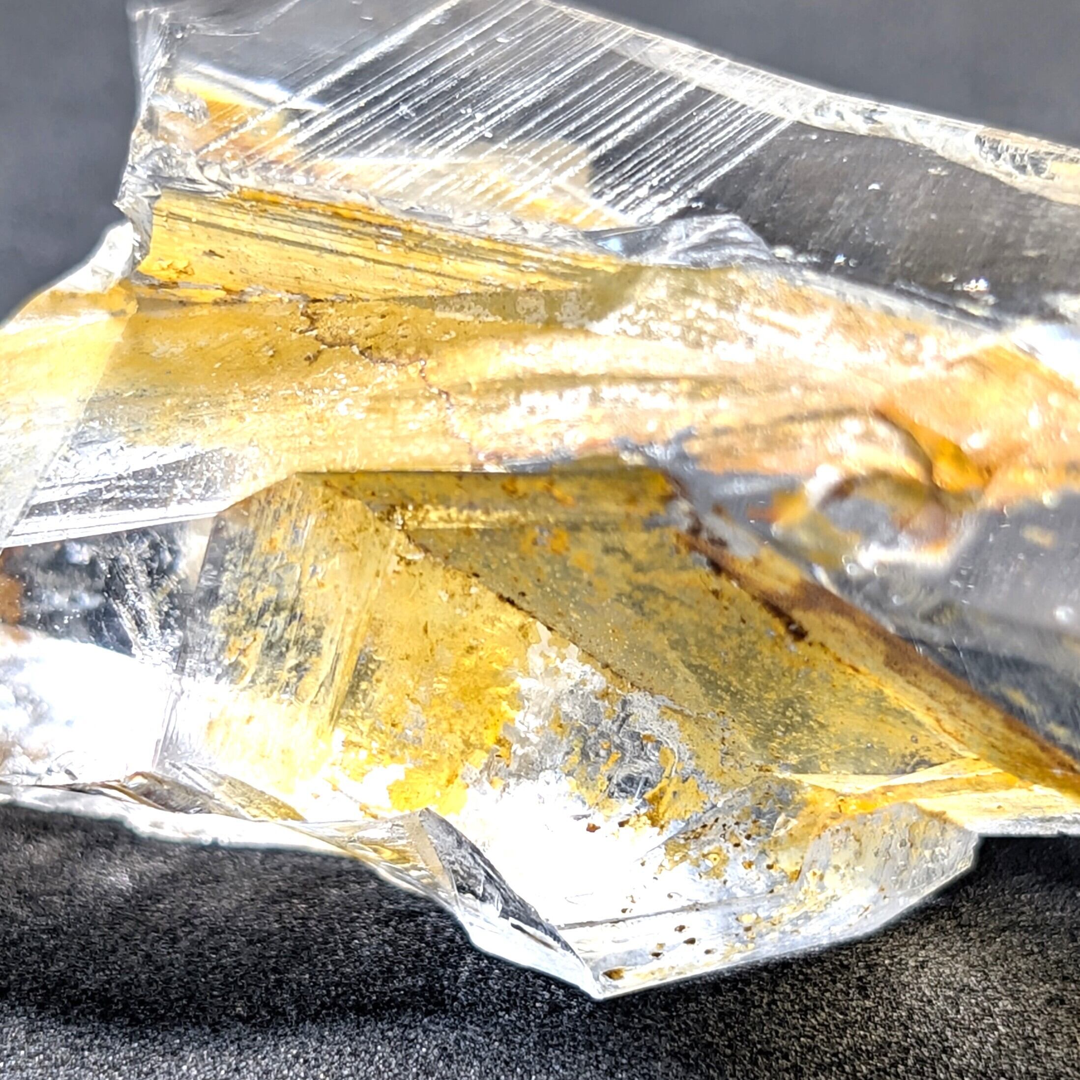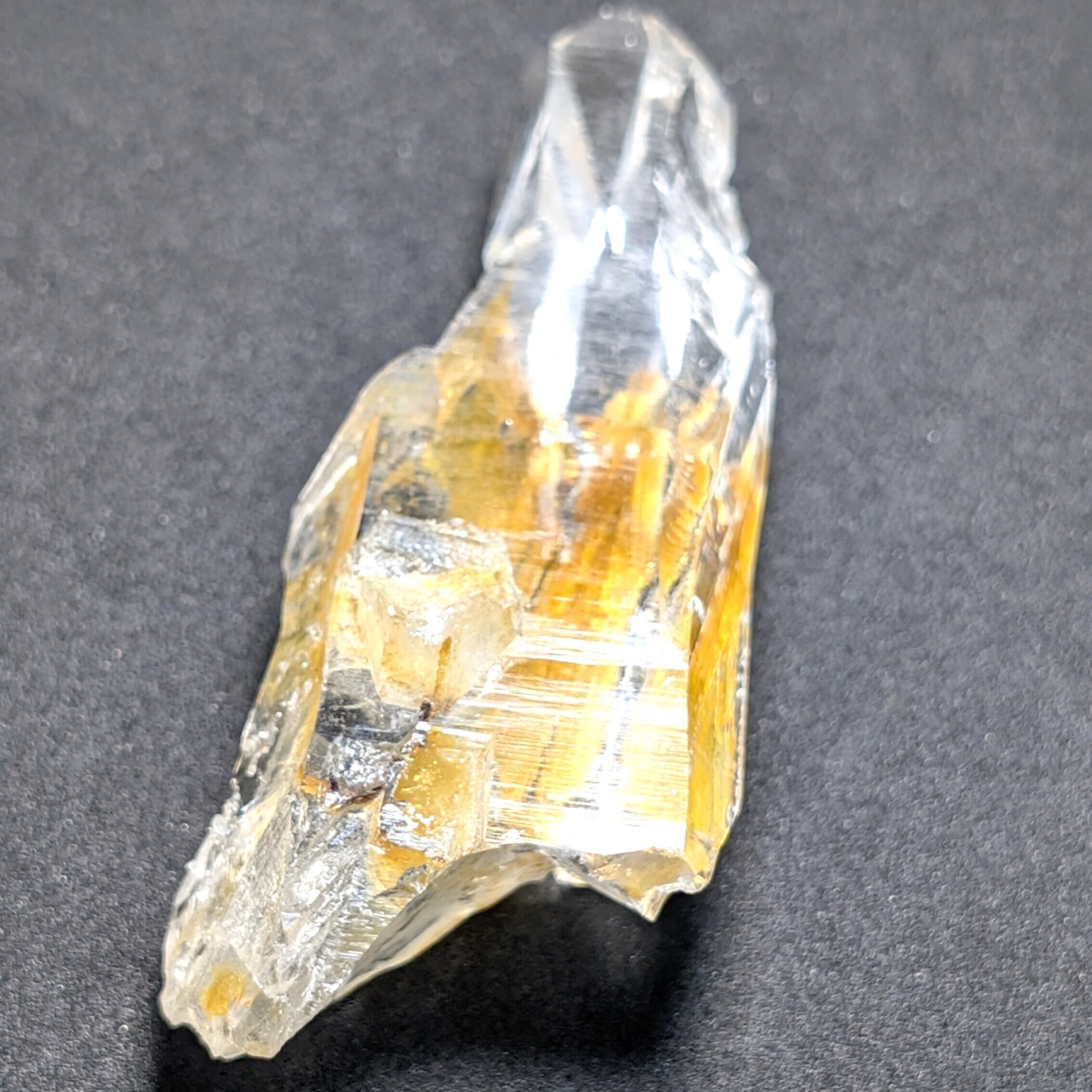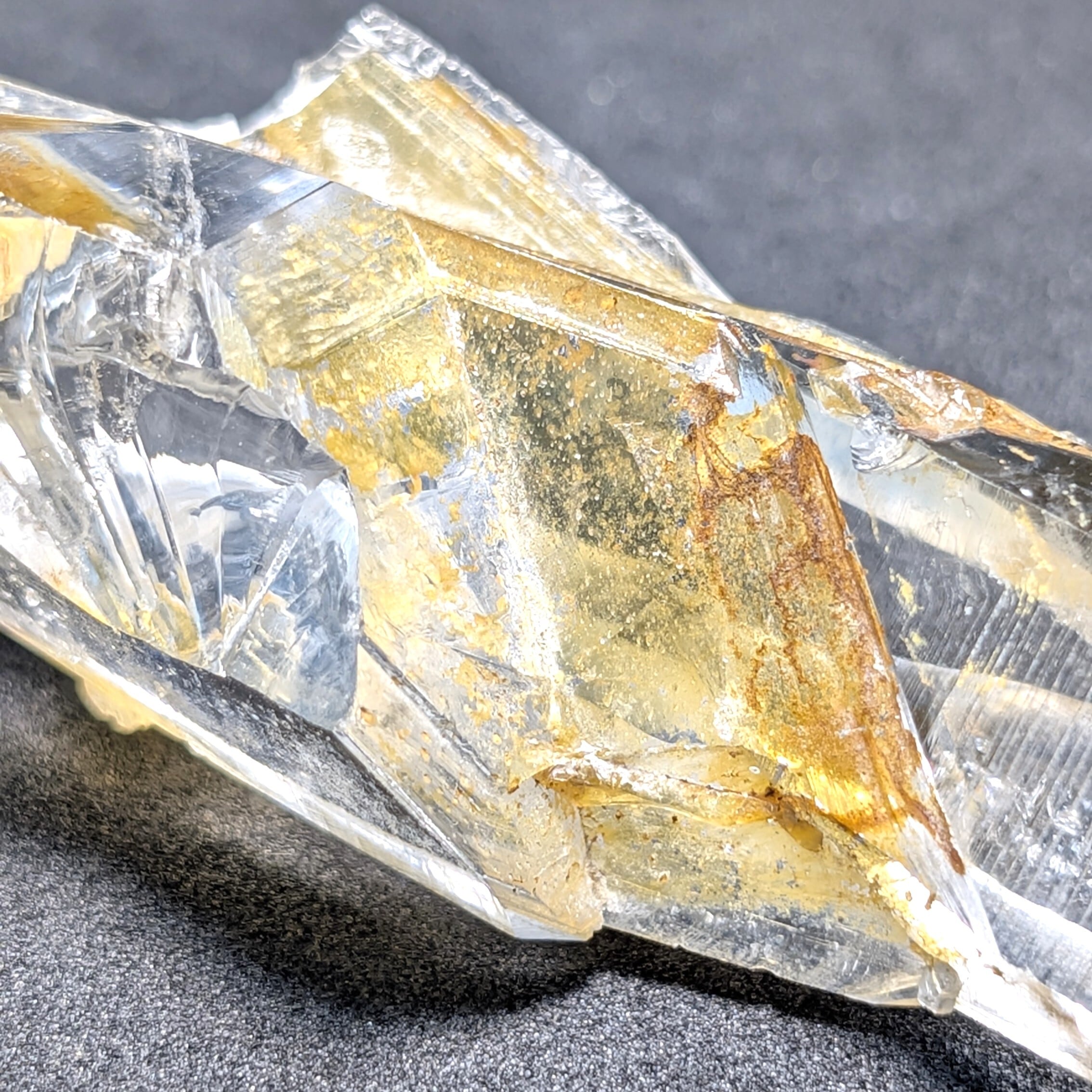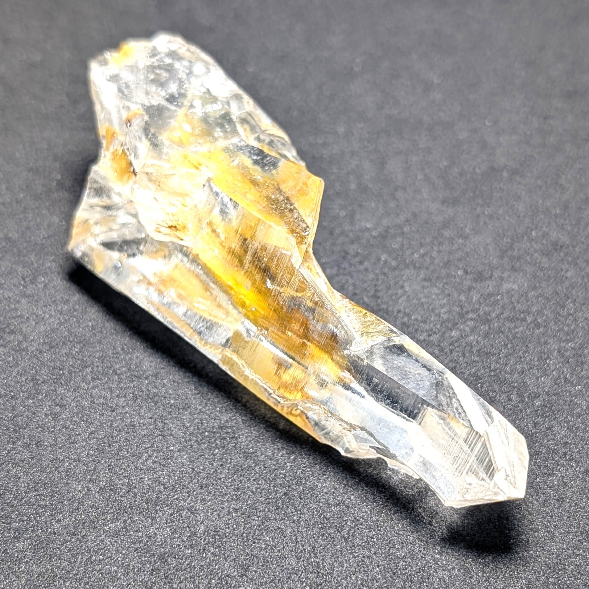 ◯ゴールデンレムリアン水晶は、レムリアンシードクリスタルの中でも、表面や内部に“黄金色”の光彩をまとった特別な水晶を指します。一般にこの金色は、結晶表面や内部に微細に付着・含有した鉄分(酸化鉄)によって現れるもので、自然が生み出した温かな黄金の色合いが特徴です。