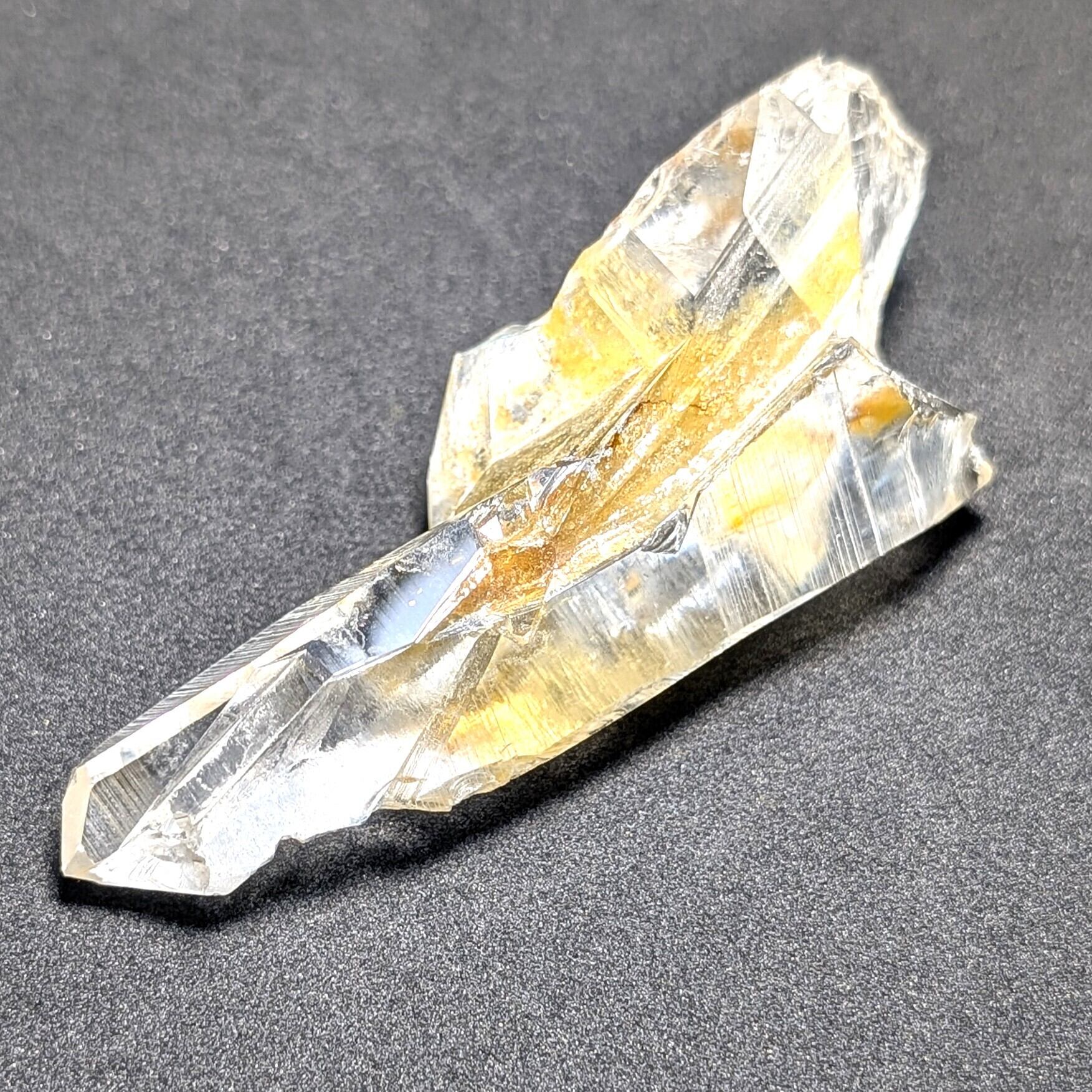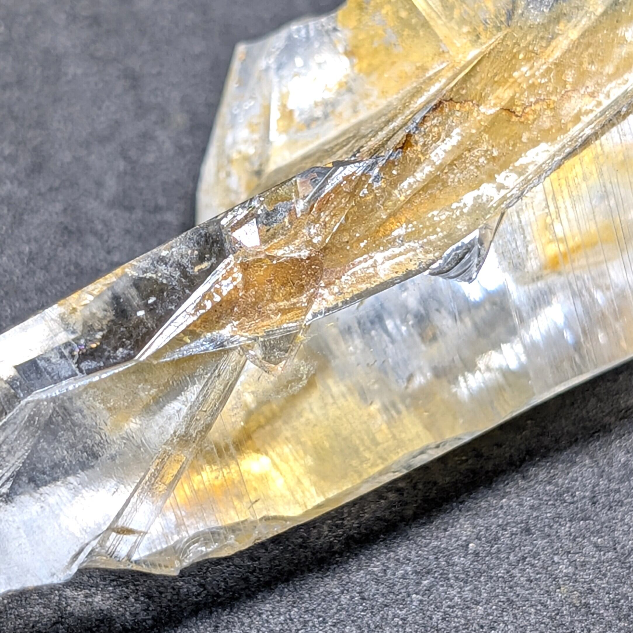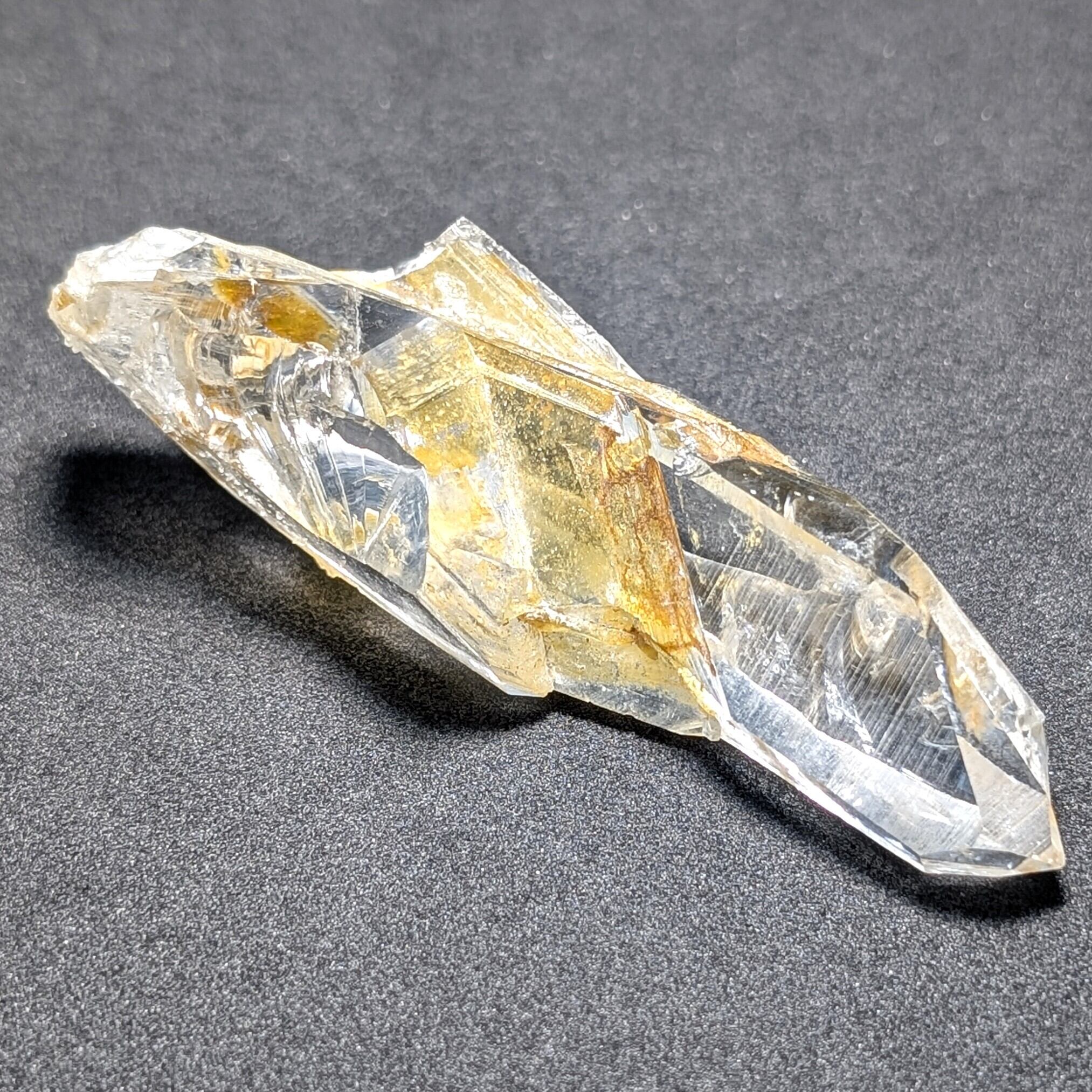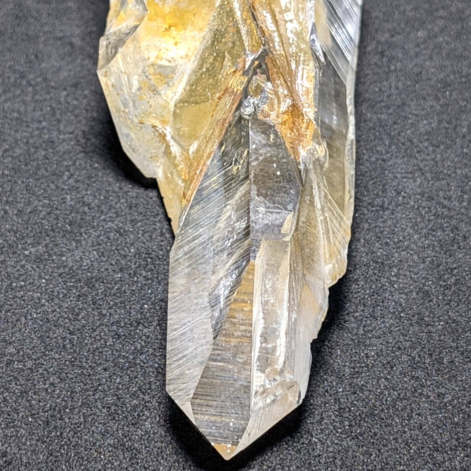 ◯ゴールデンレムリアン水晶は、レムリアンシードクリスタルの中でも、表面や内部に“黄金色”の光彩をまとった特別な水晶を指します。一般にこの金色は、結晶表面や内部に微細に付着・含有した鉄分(酸化鉄)によって現れるもので、自然が生み出した温かな黄金の色合いが特徴です。