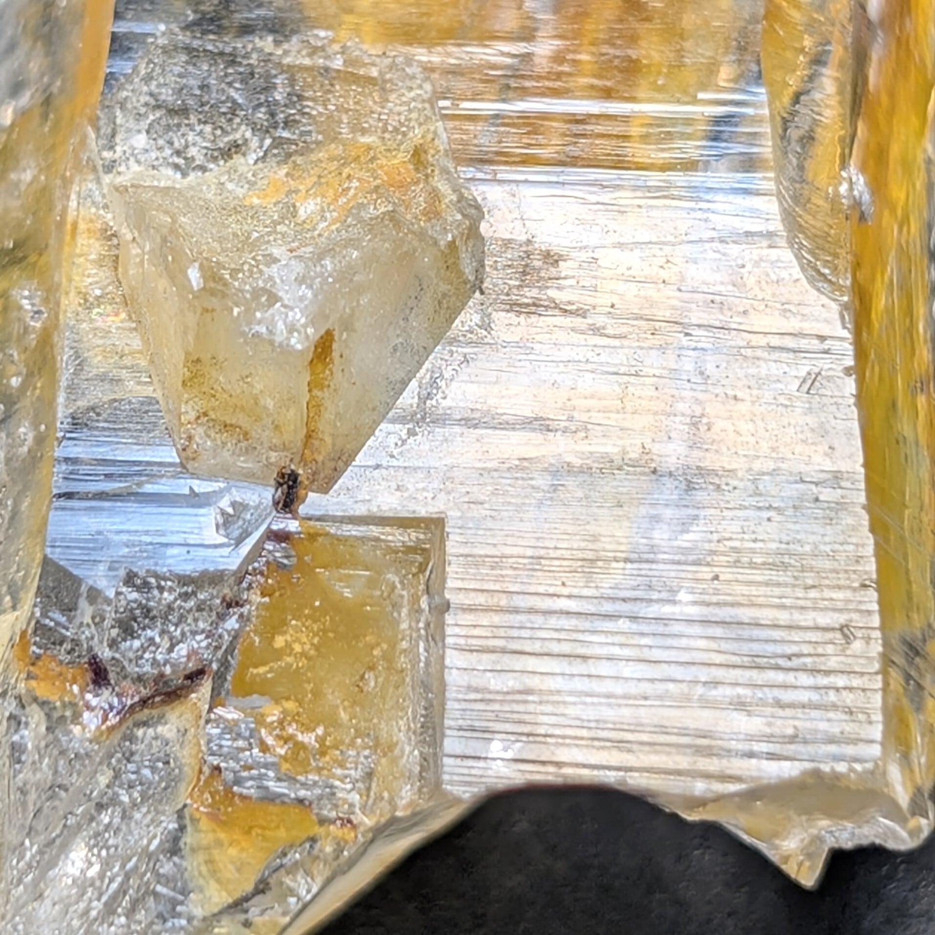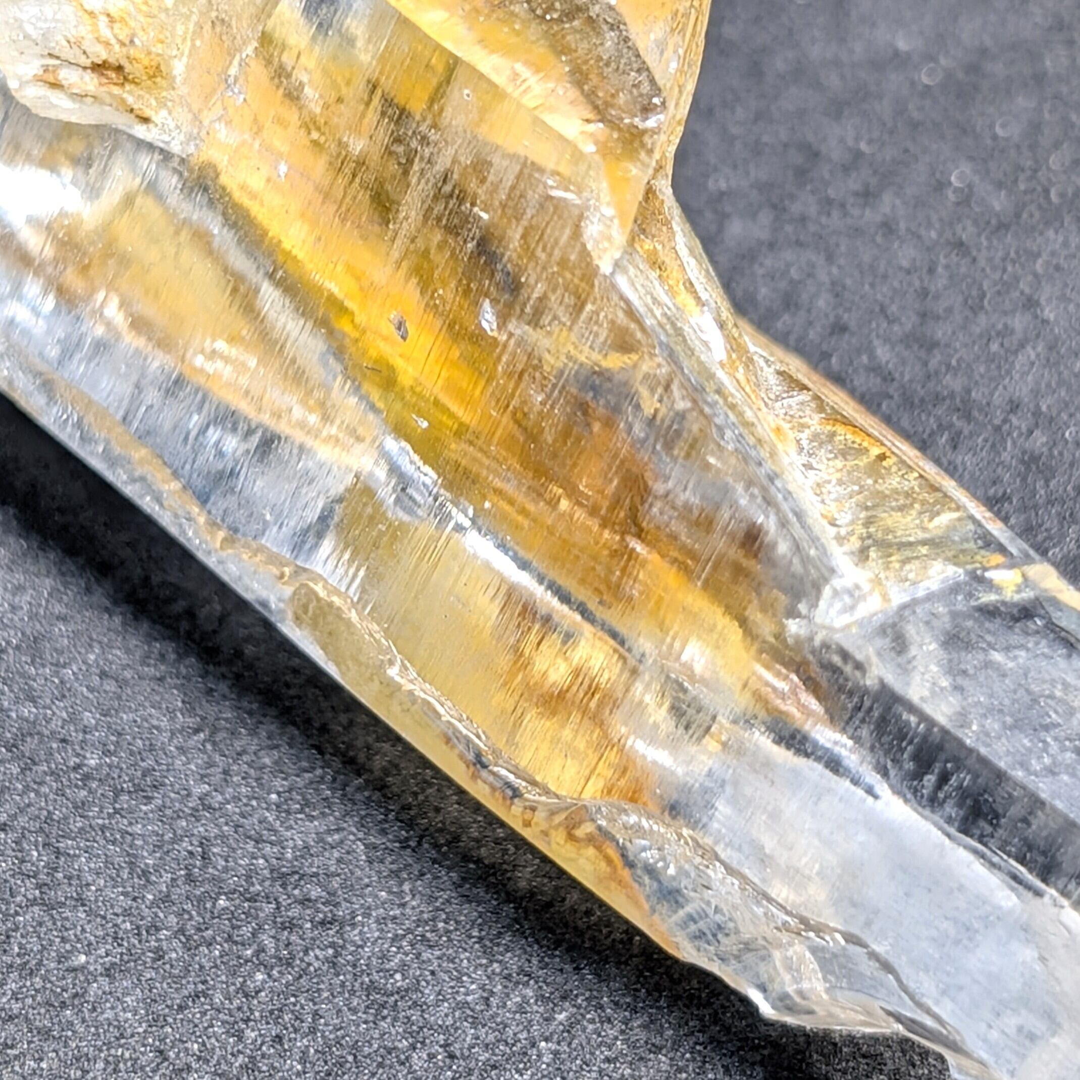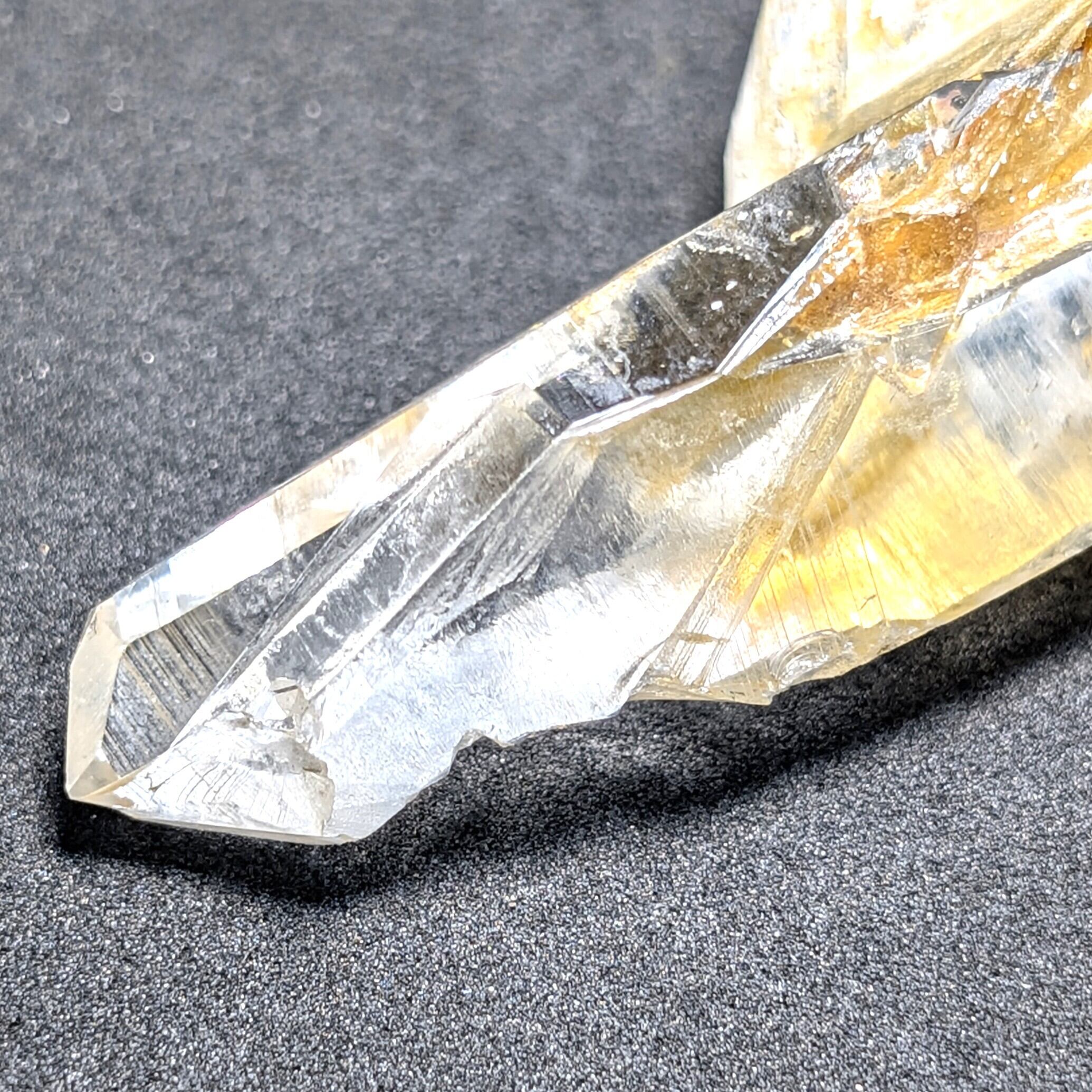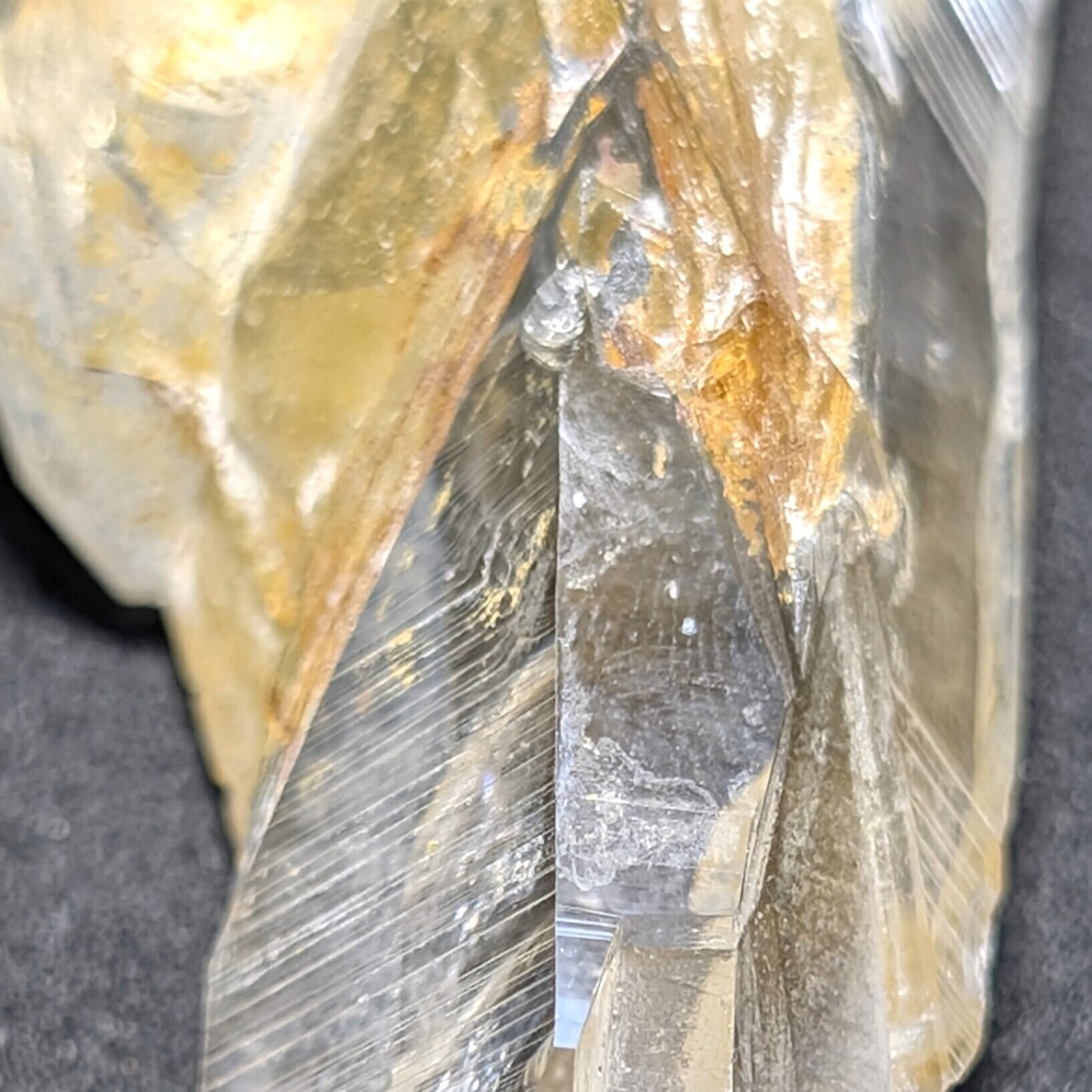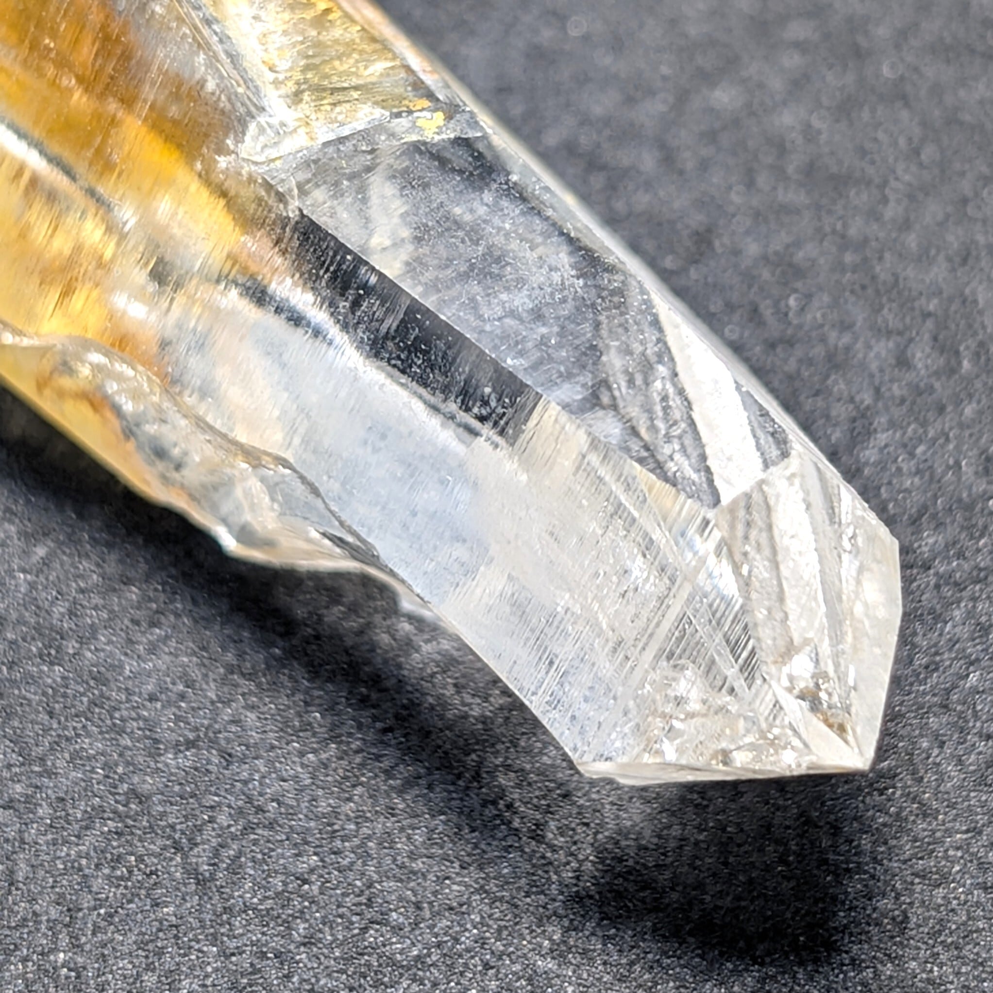 ◯ゴールデンレムリアン水晶は、レムリアンシードクリスタルの中でも、表面や内部に“黄金色”の光彩をまとった特別な水晶を指します。一般にこの金色は、結晶表面や内部に微細に付着・含有した鉄分(酸化鉄)によって現れるもので、自然が生み出した温かな黄金の色合いが特徴です。