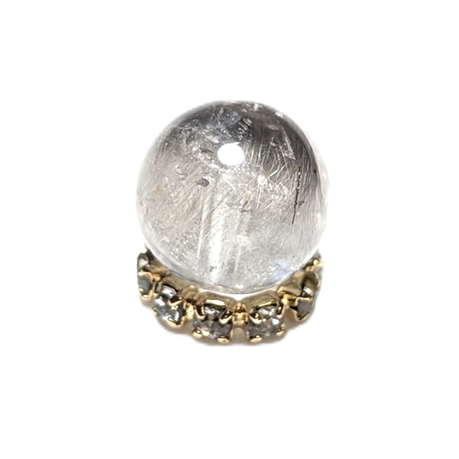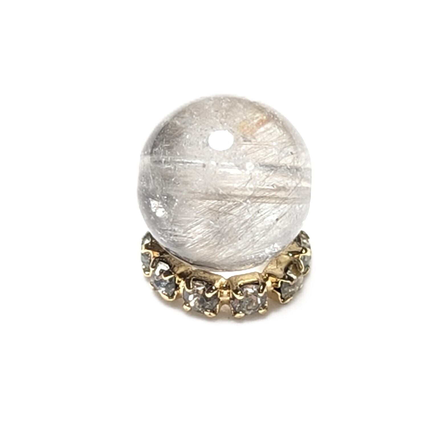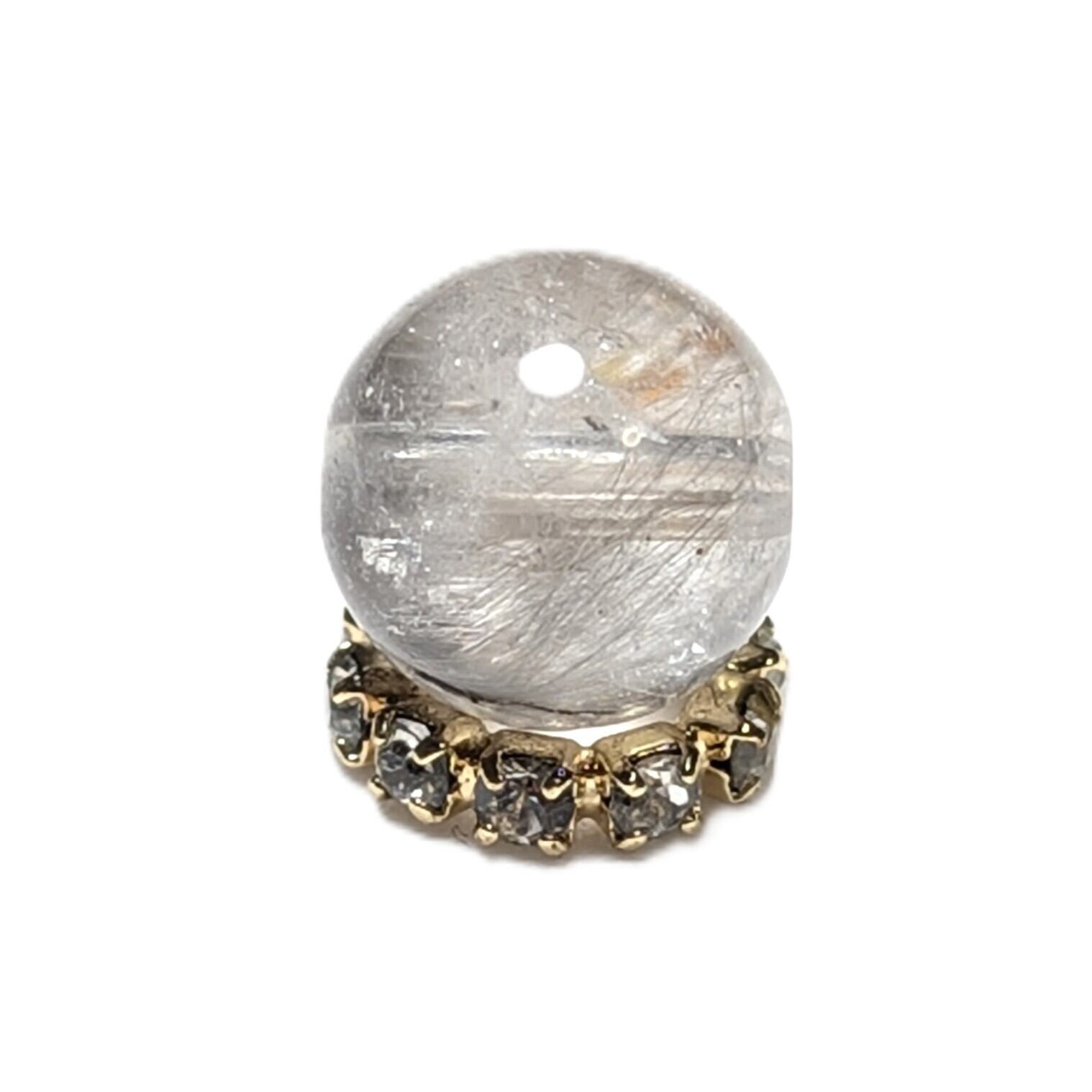 Plt33【ブルッカイトが美しい】プラチナルチルクォーツ 一点物 8ミリ 1粒売り 貫通穴あり 白金水晶 パワーストーン お守り効果 天然石 ハンドメイド リメイク ネックレスやブレスレットに 贈り物 ギフト