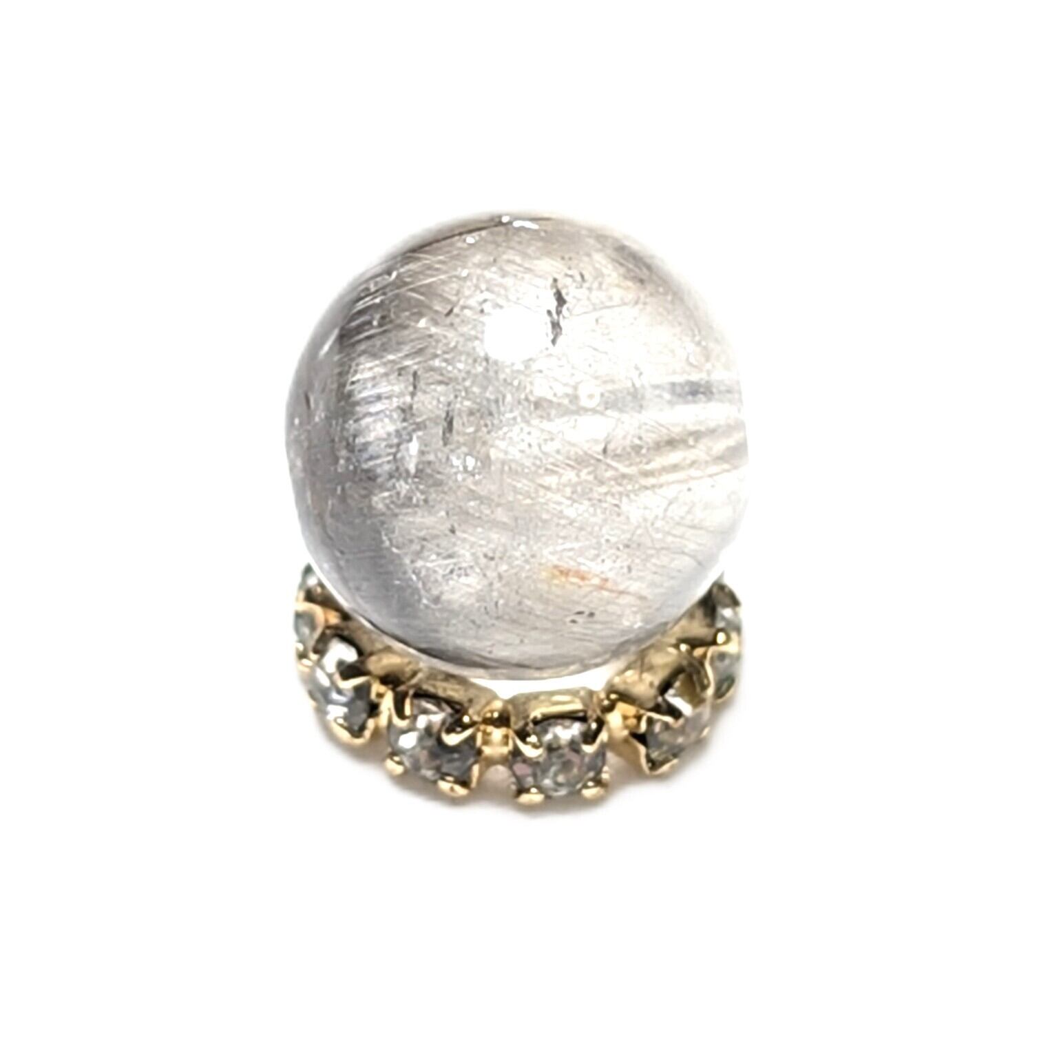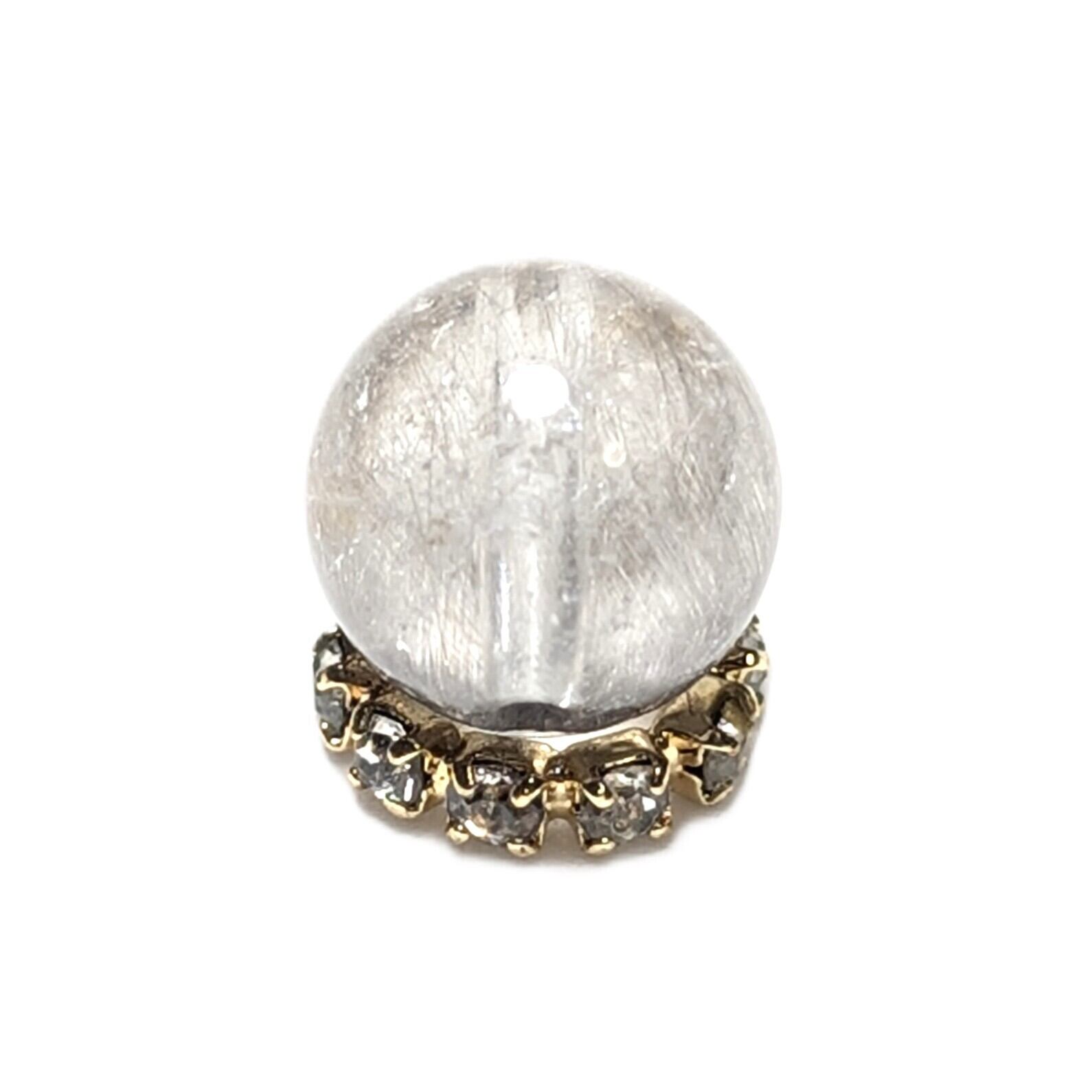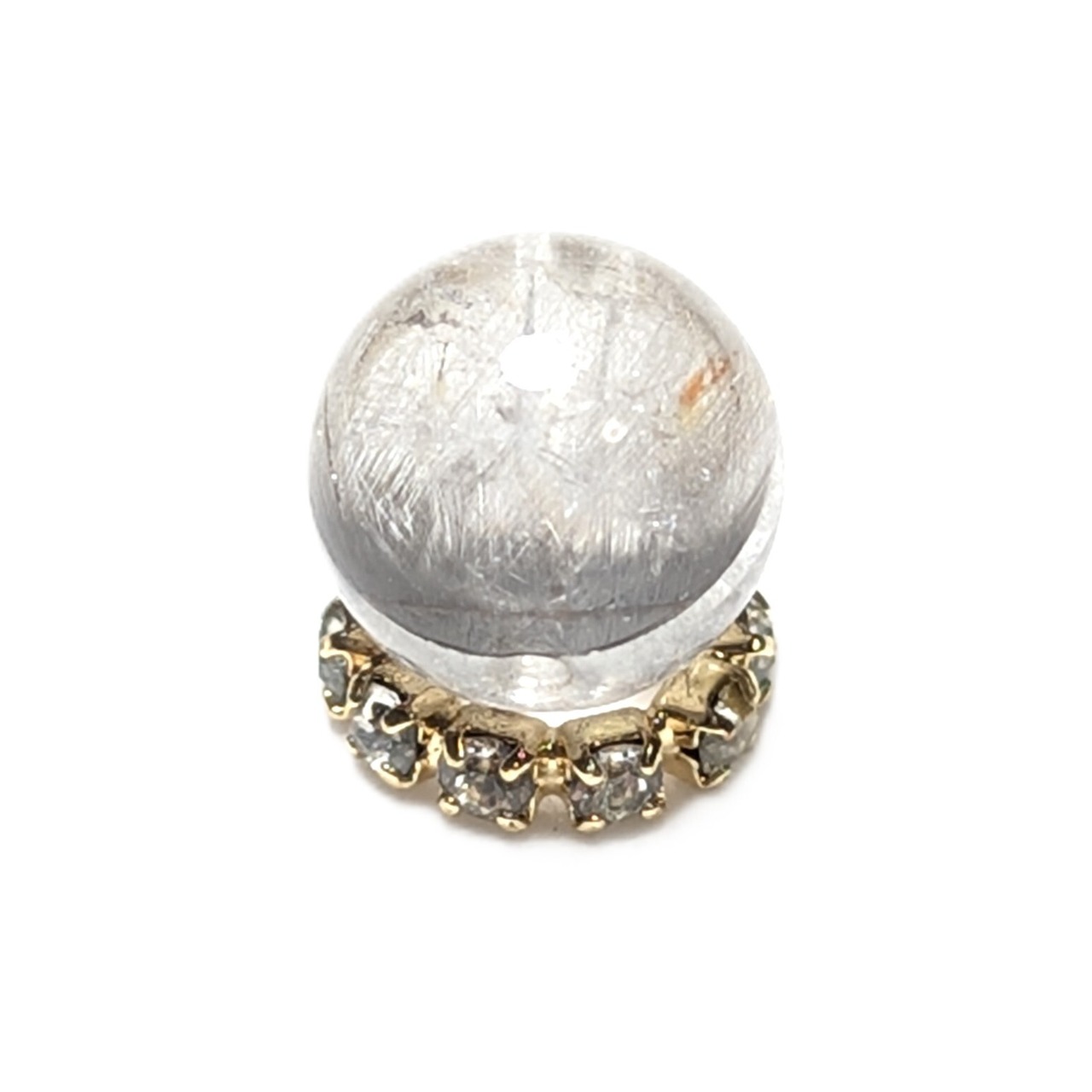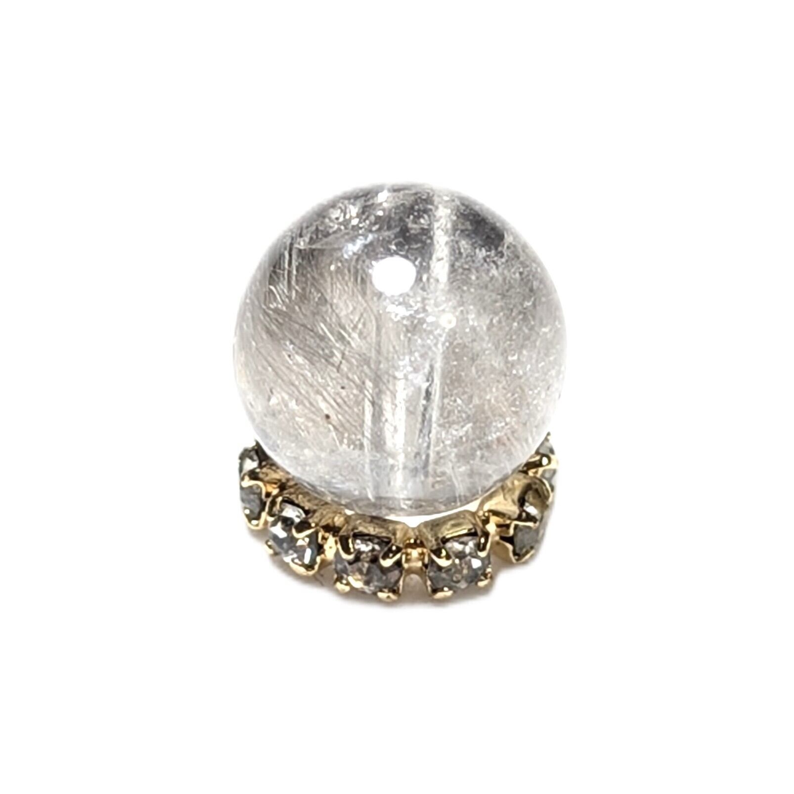 Plt33【ブルッカイトが美しい】プラチナルチルクォーツ 一点物 8ミリ 1粒売り 貫通穴あり 白金水晶 パワーストーン お守り効果 天然石 ハンドメイド リメイク ネックレスやブレスレットに 贈り物 ギフト