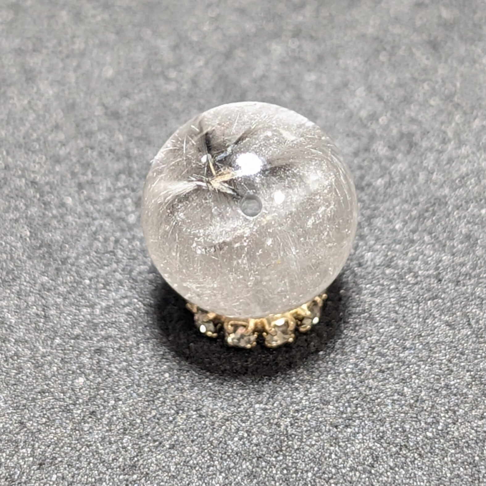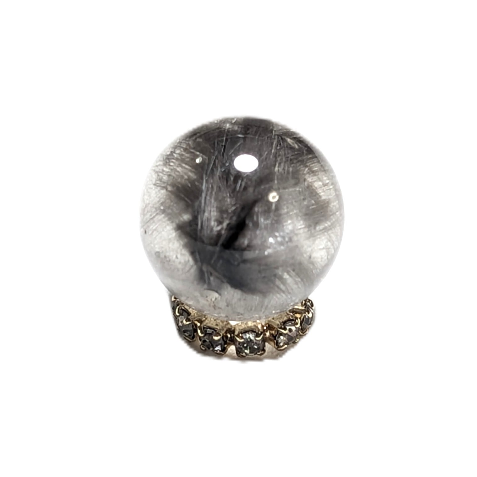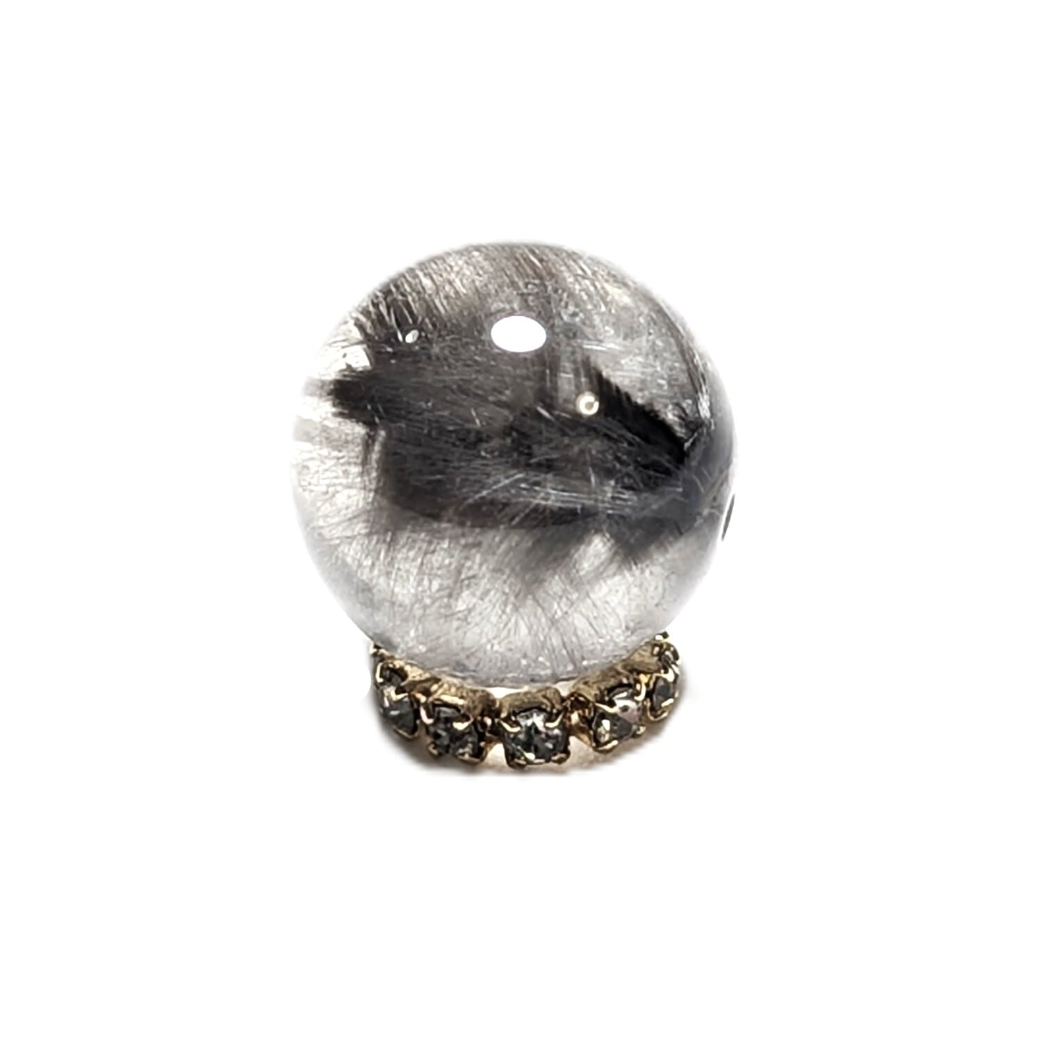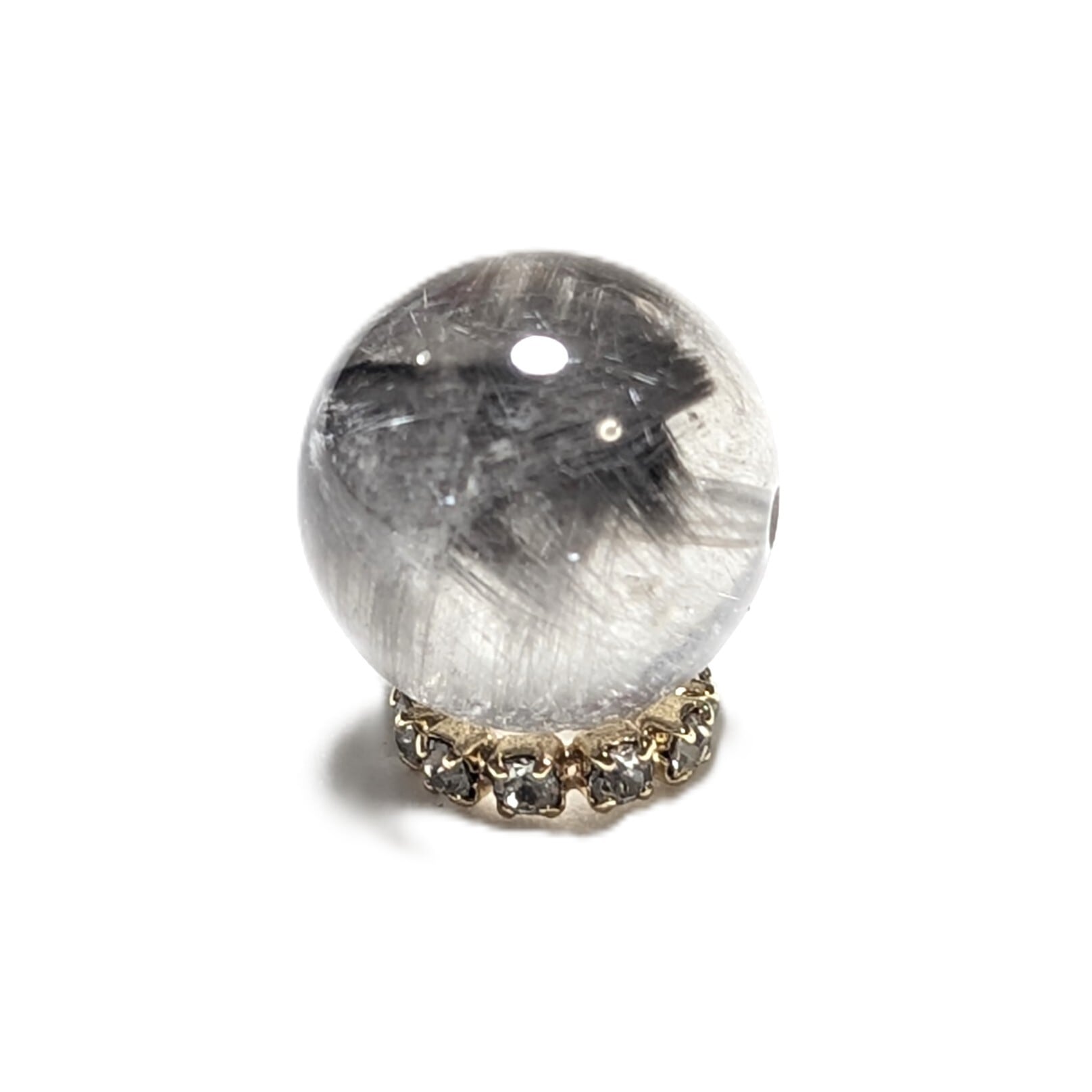 Plt40【美しすぎる1粒】プラチナルチルクォーツ 一点物 11ミリ 粒売り 貫通穴あり 白金水晶 パワーストーン お守り効果 天然石 ハンドメイド リメイク ネックレスやブレスレットに 贈り物 ギフト