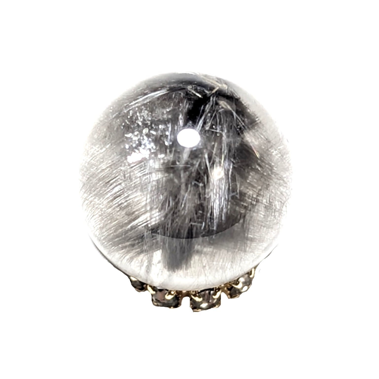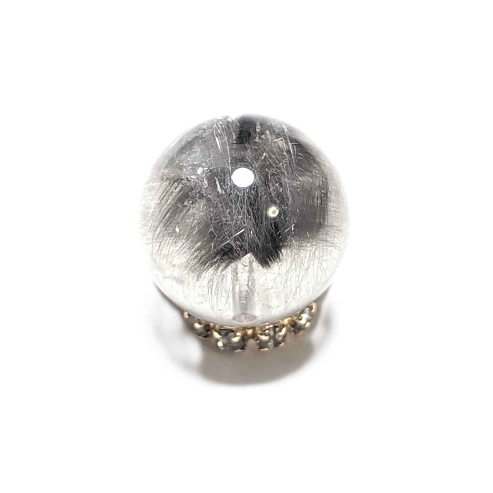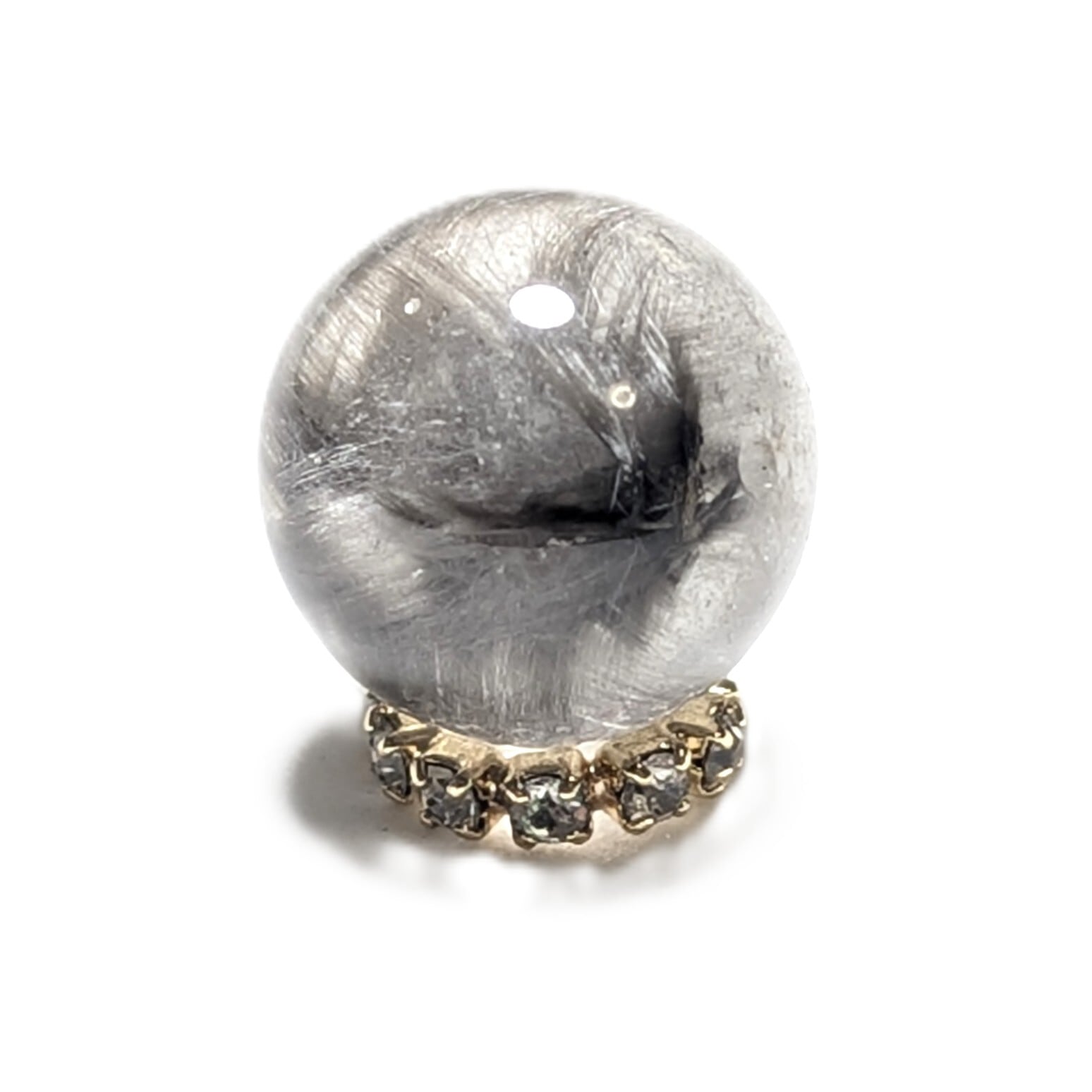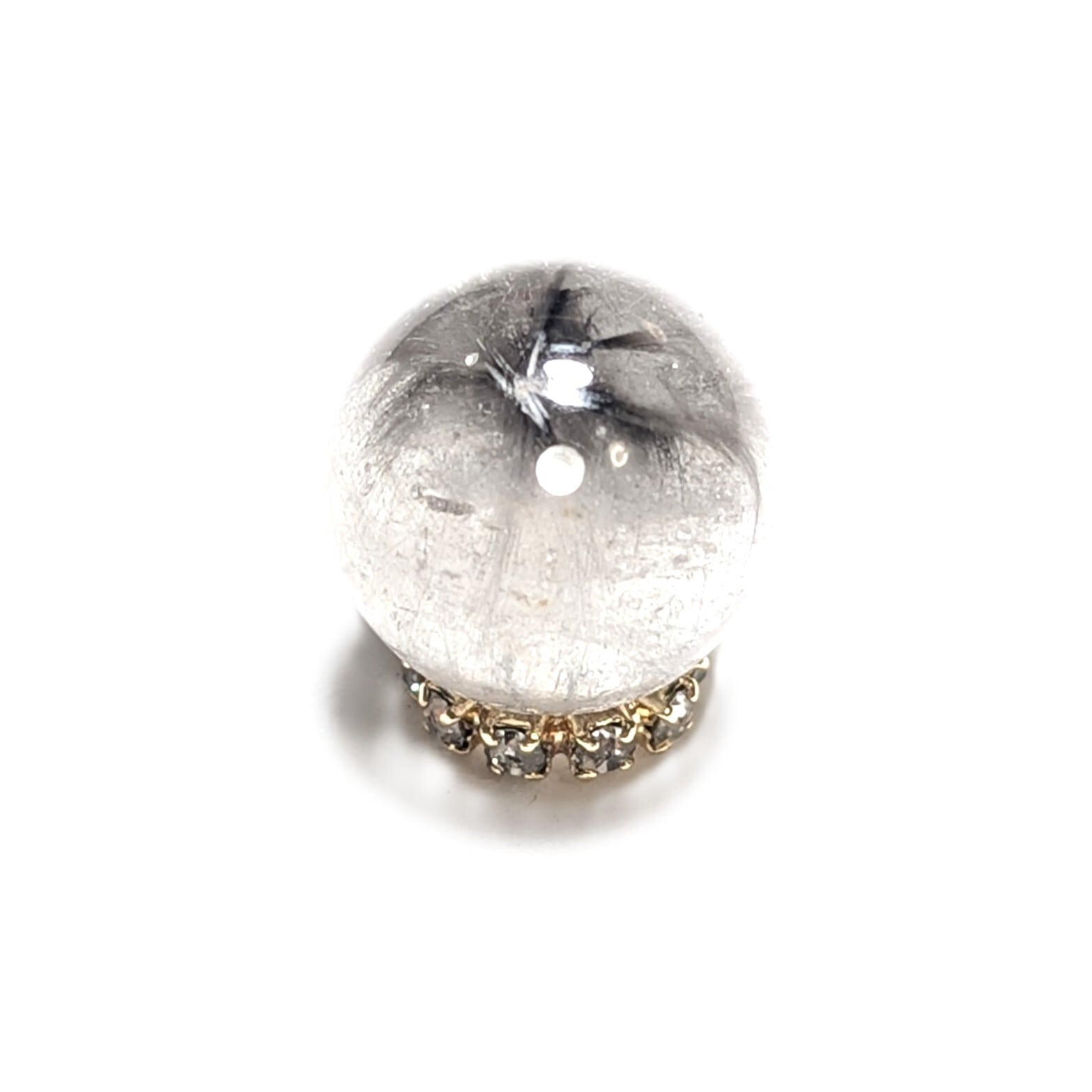 Plt40【美しすぎる1粒】プラチナルチルクォーツ 一点物 11ミリ 粒売り 貫通穴あり 白金水晶 パワーストーン お守り効果 天然石 ハンドメイド リメイク ネックレスやブレスレットに 贈り物 ギフト