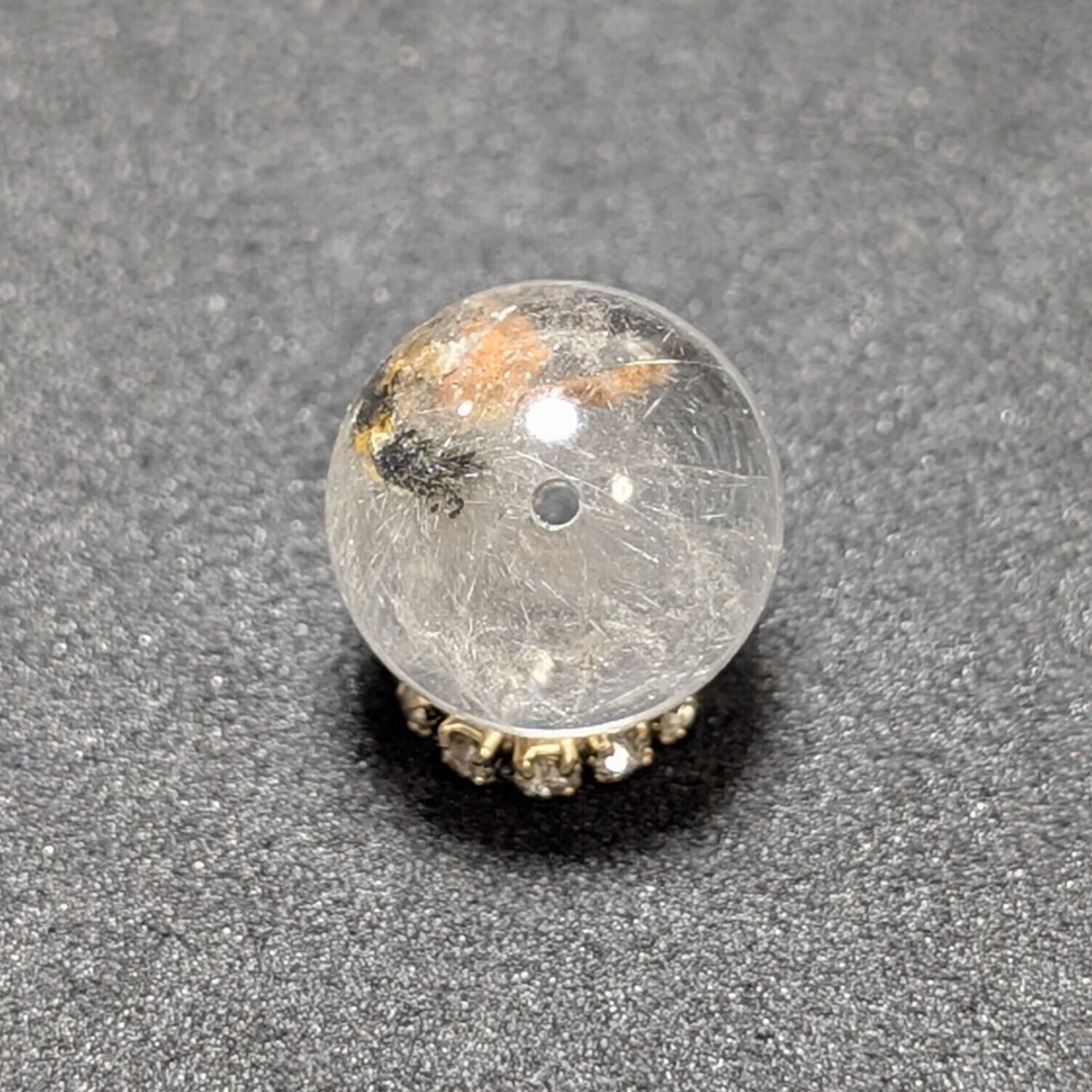 Plt42【インパクトある鉱物がすごい】プラチナルチルクォーツ 一点物 11ミリ 1粒売り 貫通穴あり 白金水晶 パワーストーン お守り効果 天然石 ハンドメイド リメイク ネックレスやブレスレットに 贈り物 ギフト
