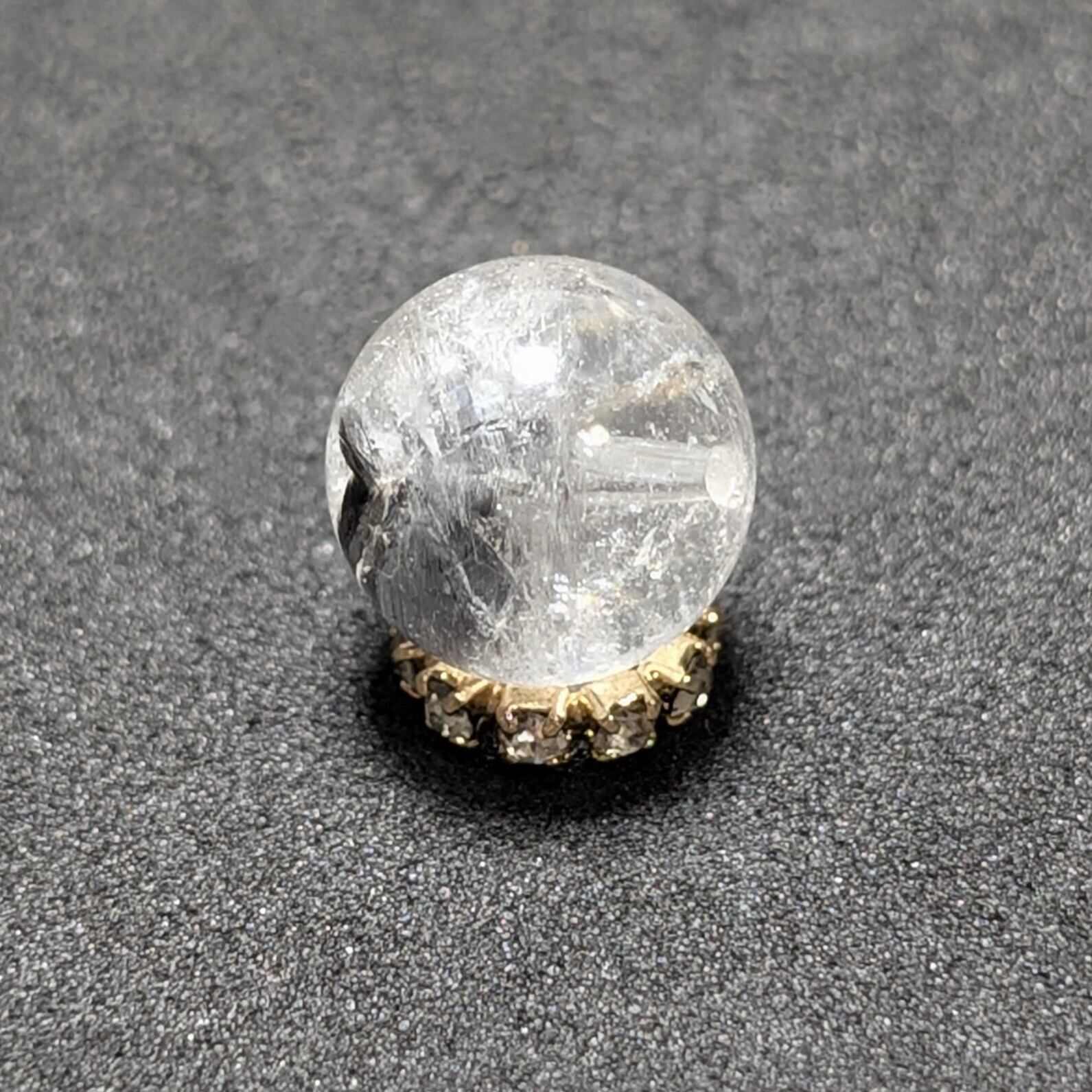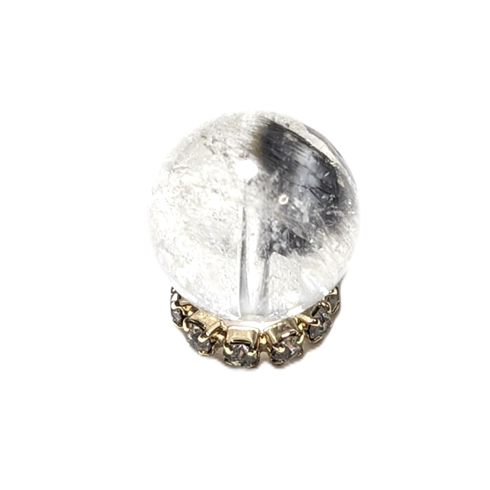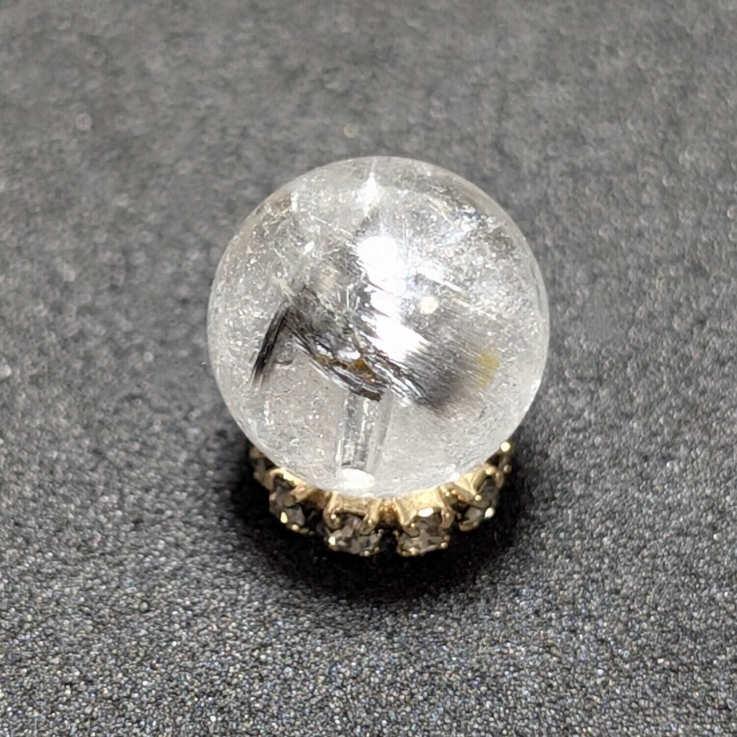 Plt43【白金のブルッカイト】プラチナルチルクォーツ 一点物 9ミリ 1粒売り 貫通穴あり 白金水晶 パワーストーン お守り効果 天然石 ハンドメイド リメイク ネックレスやブレスレットに 贈り物 ギフト