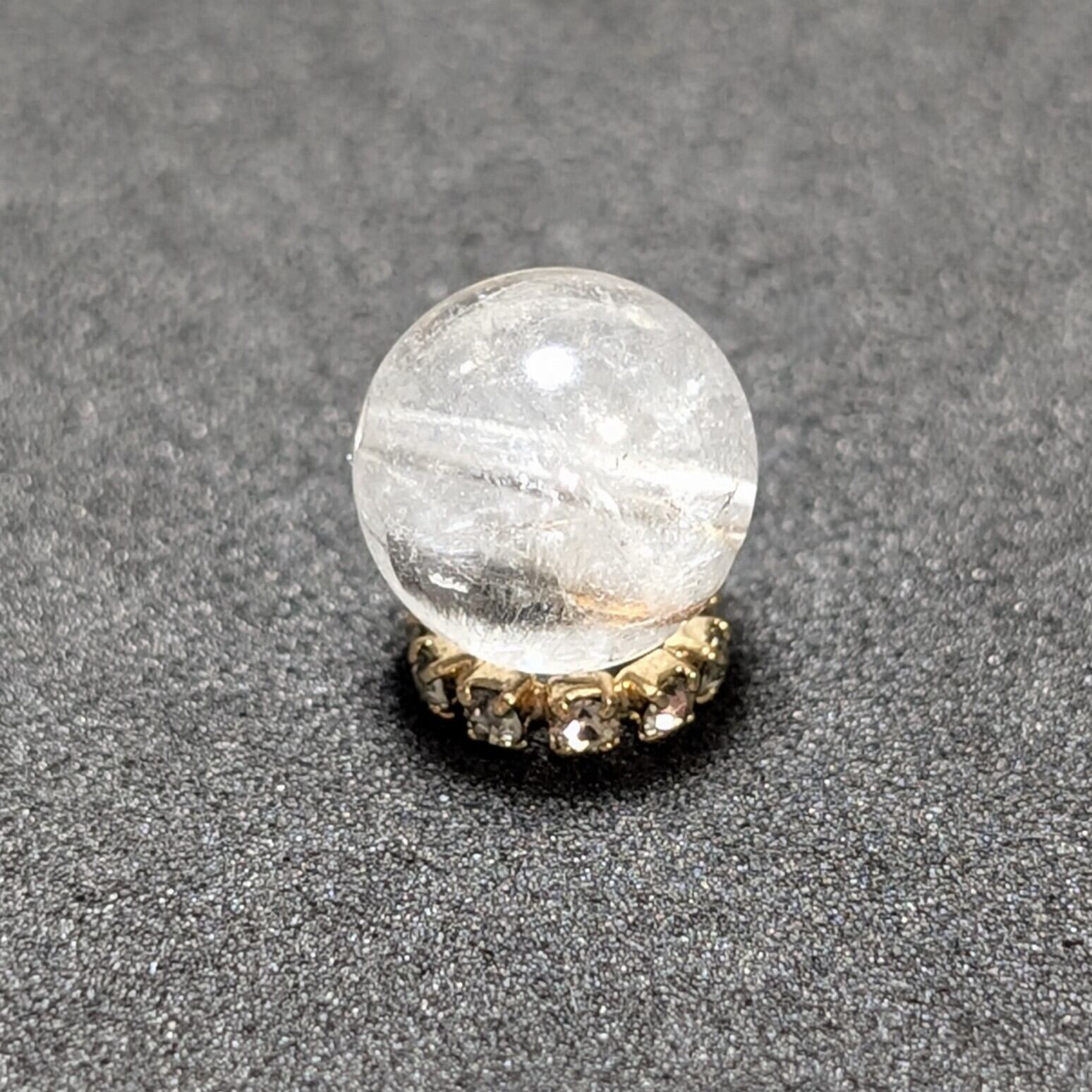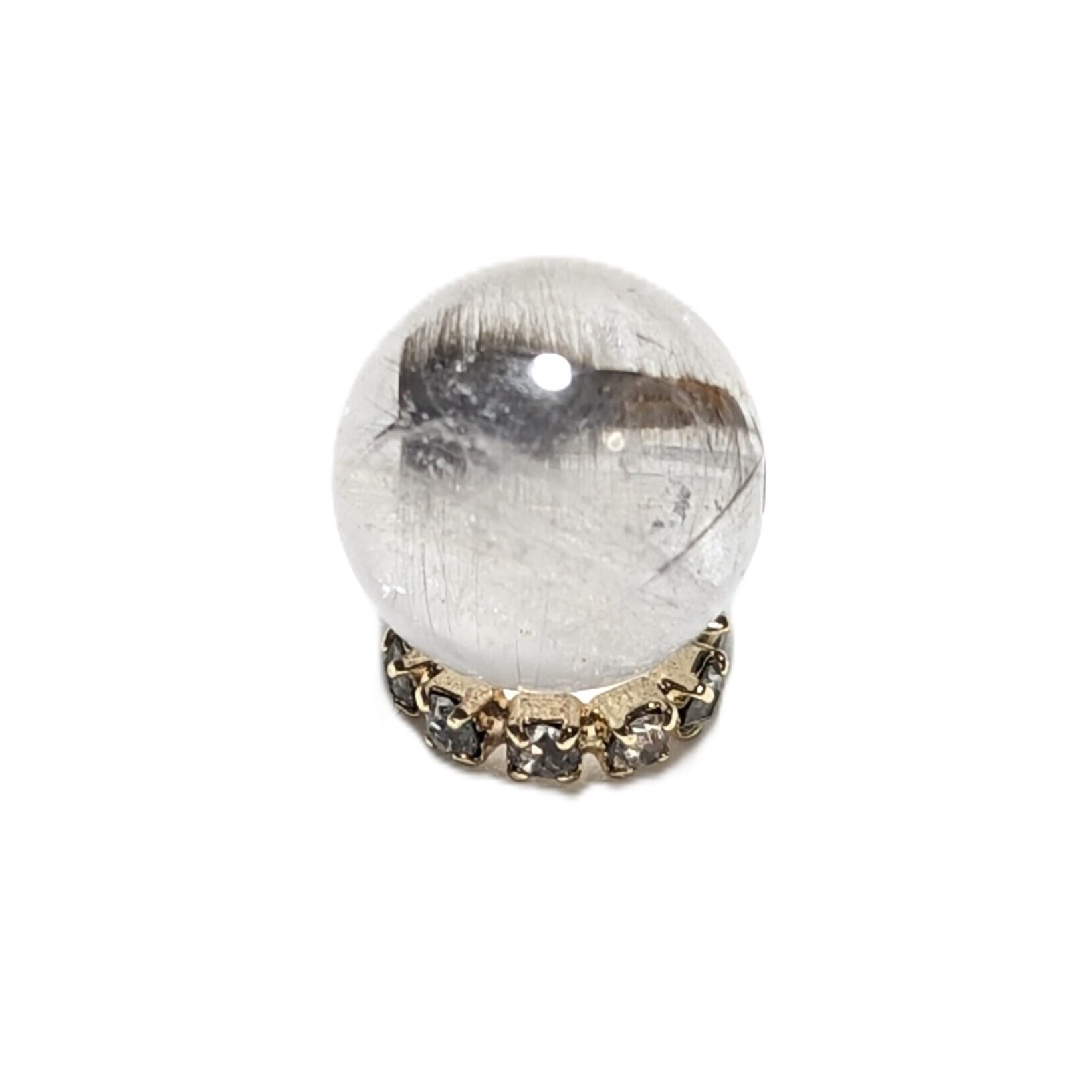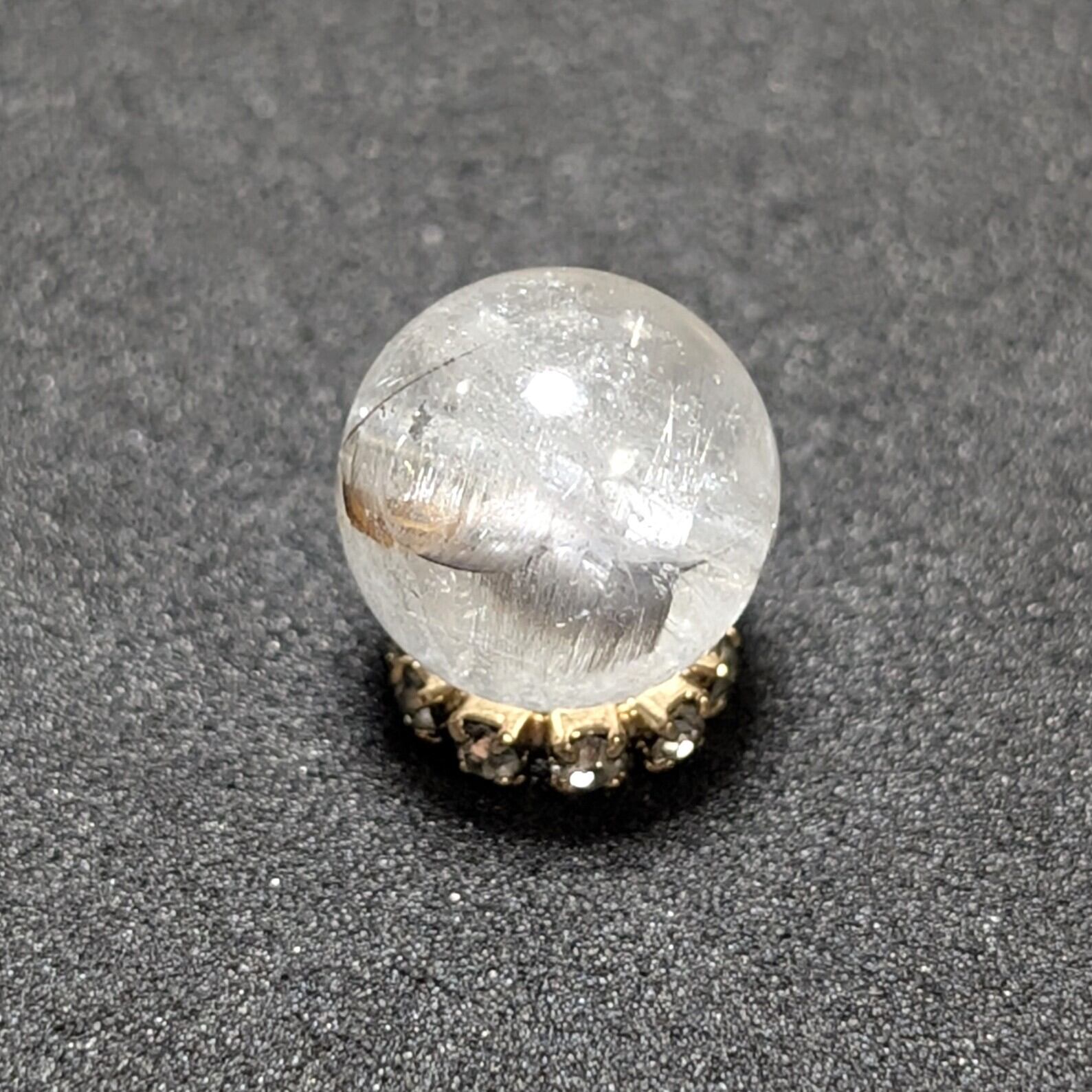 Plt44【キラキラ輝く鉱物】プラチナルチルクォーツ 一点物 9ミリ 1粒売り 貫通穴あり 白金水晶 パワーストーン お守り効果 天然石 ハンドメイド リメイク ネックレスやブレスレットに 贈り物 ギフト