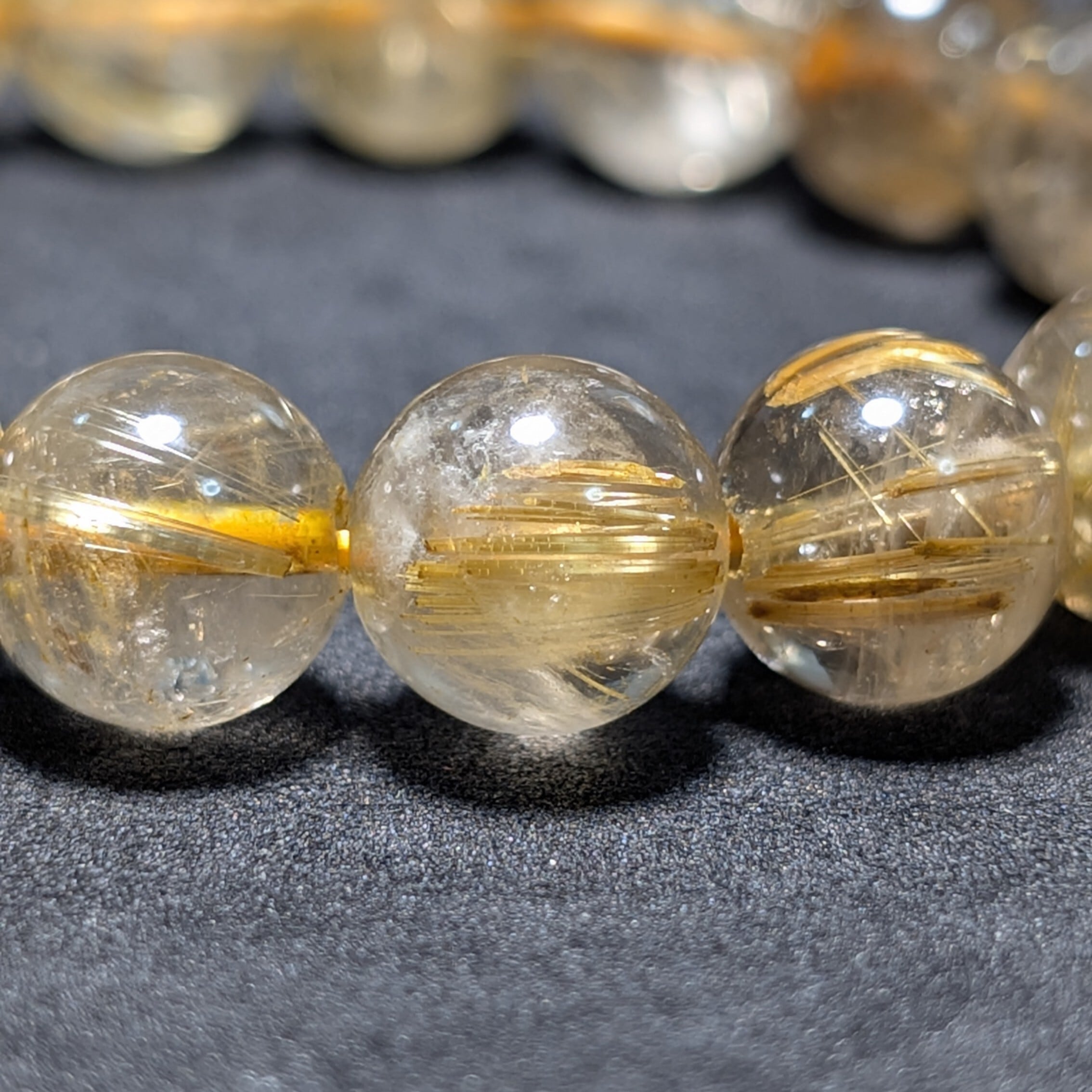 G5 【スモーキーカラーが高級感溢れる】 ゴールドルチル ブレスレット 11ミリ 最強水晶天然石 パワーストーン 金運を高める 開運 お守り効果 ギフト 入学祝い プレゼント