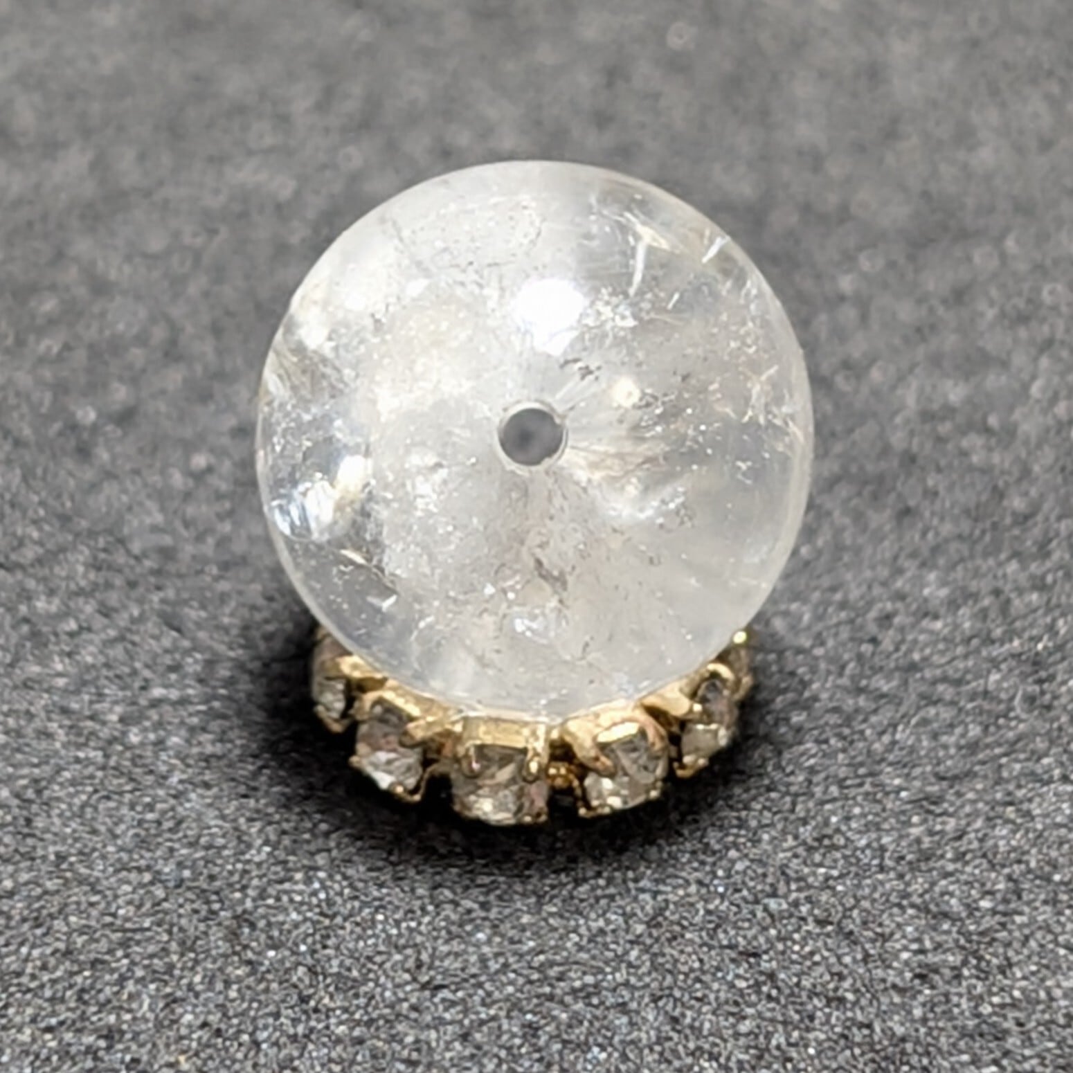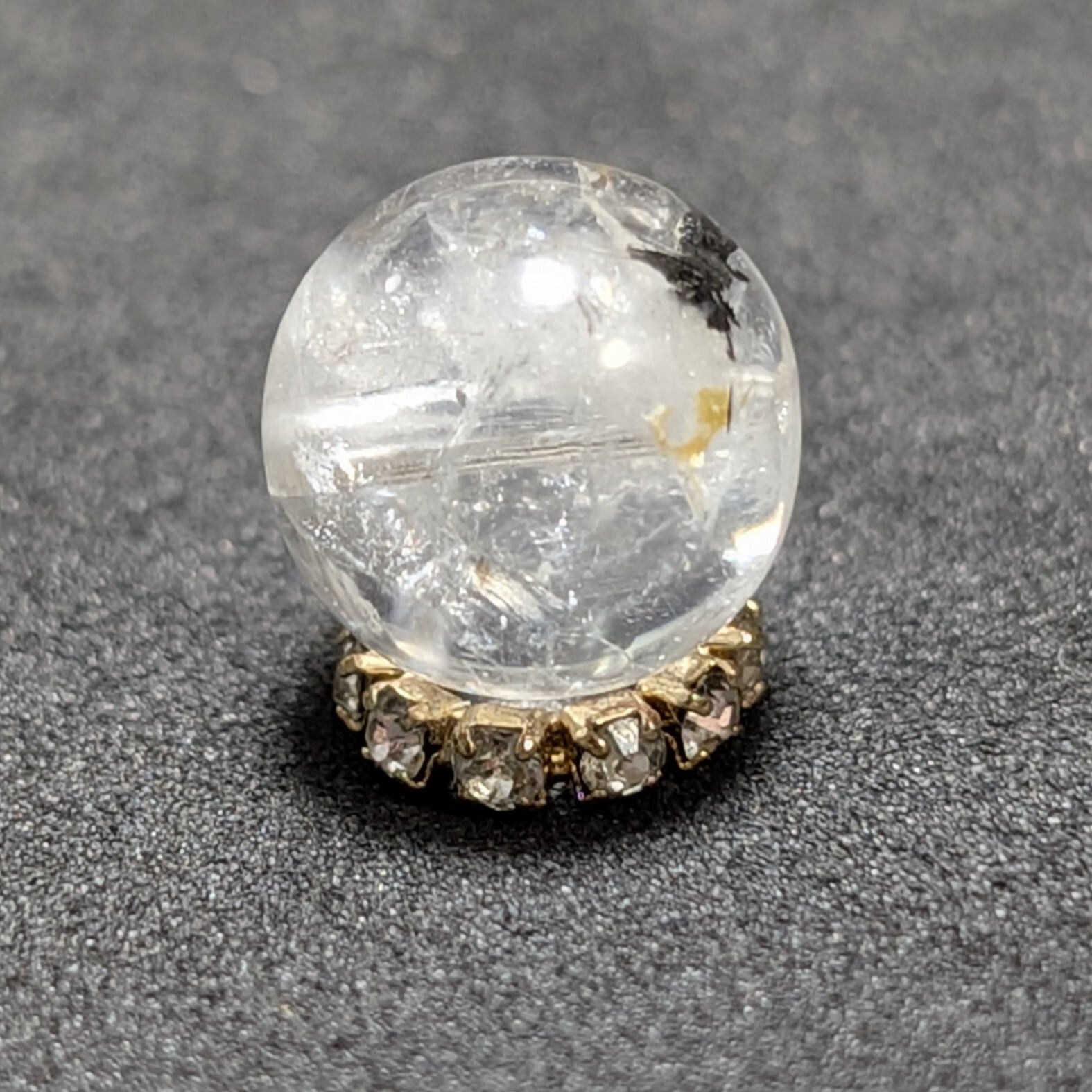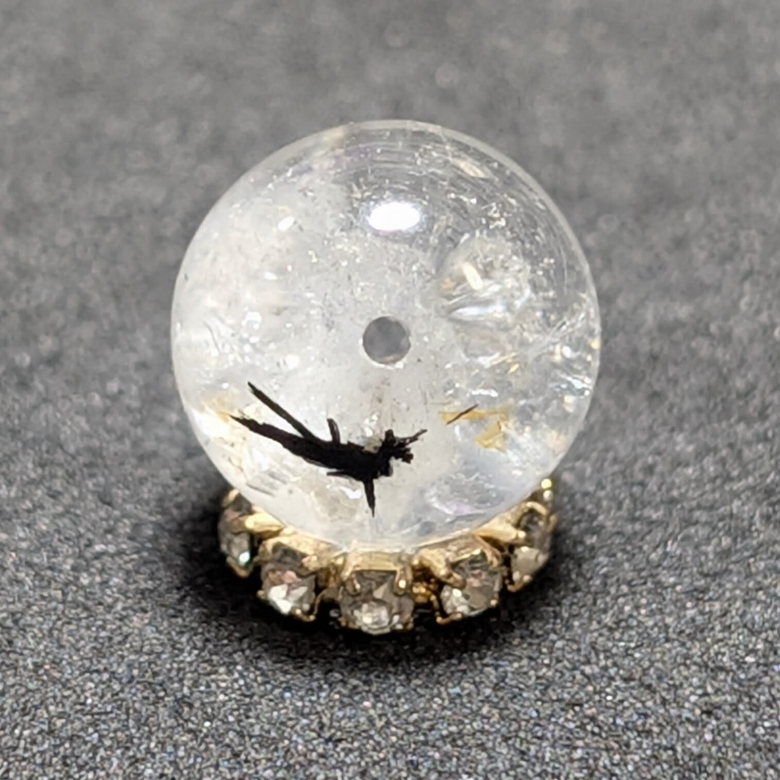 Plt46【鉱物のうさぎ!?】プラチナルチルクォーツ 一点物 9ミリ 1粒売り 貫通穴あり 白金水晶 パワーストーン お守り効果 天然石 ハンドメイド リメイク ネックレスやブレスレットに 贈り物 ギフト