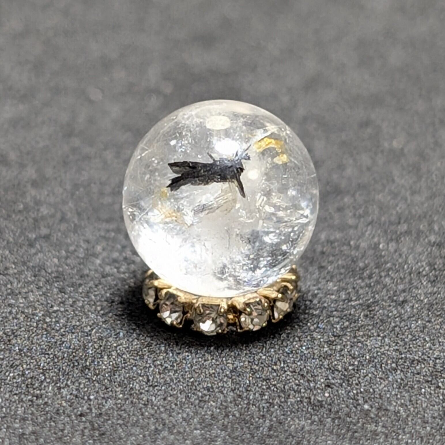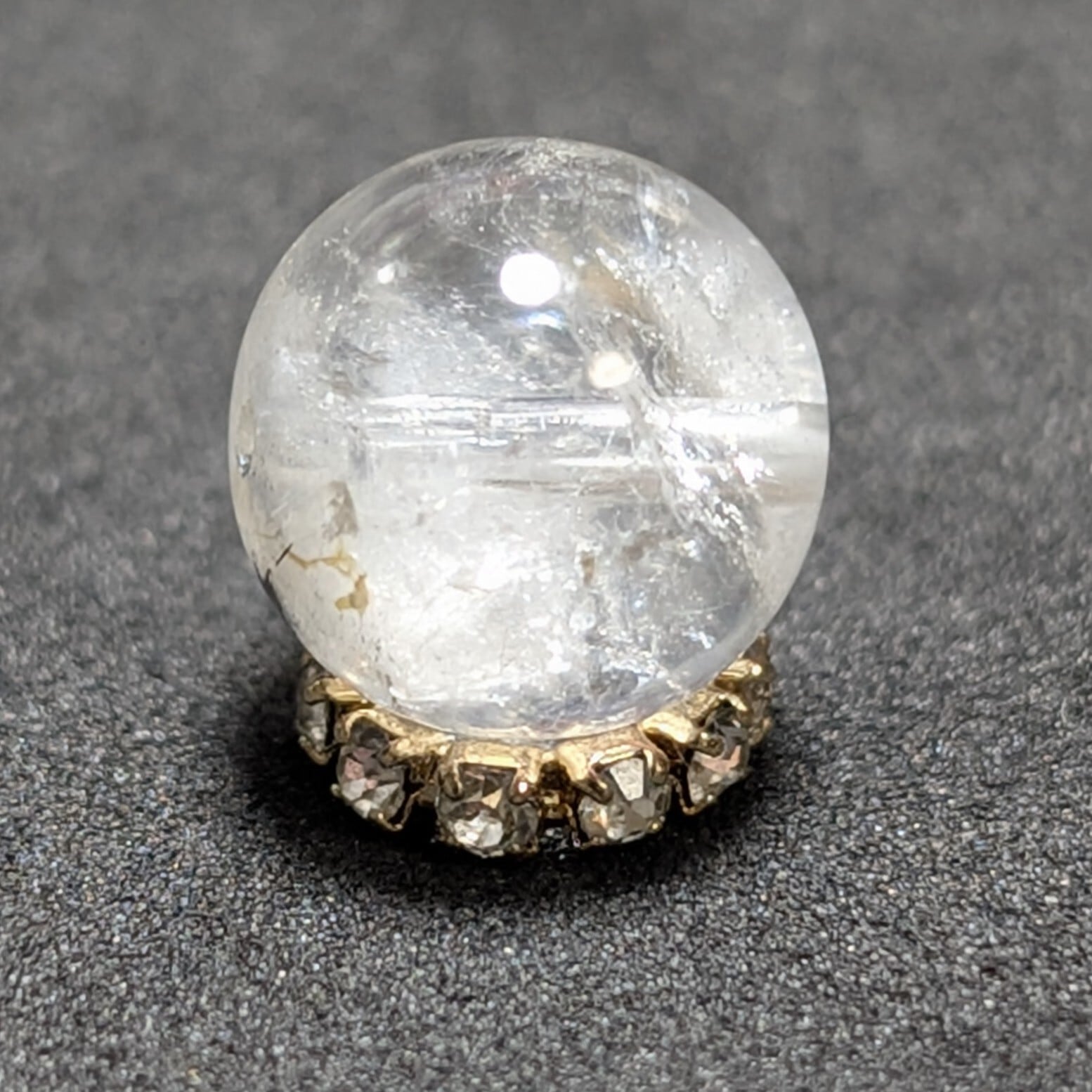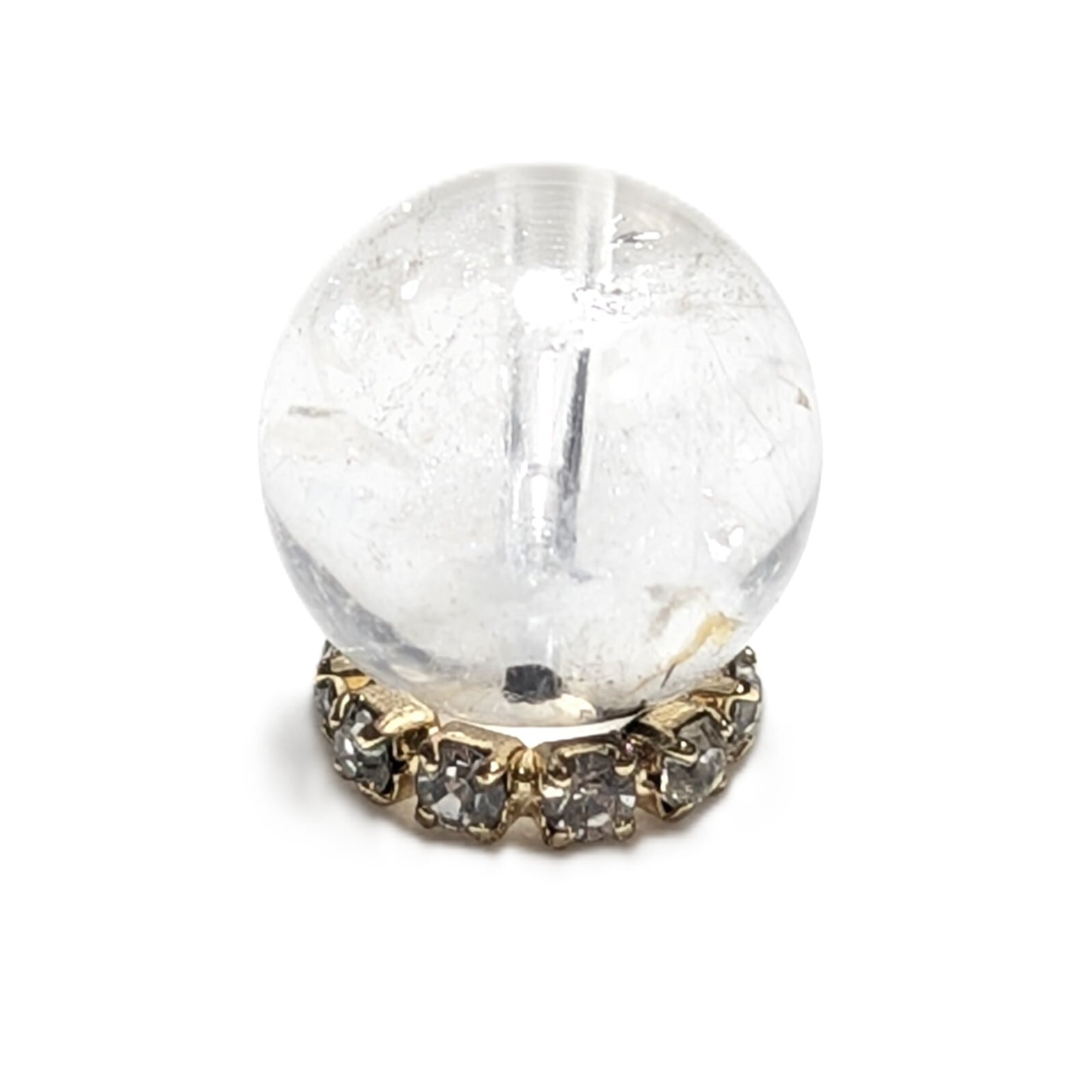 Plt46【鉱物のうさぎ!?】プラチナルチルクォーツ 一点物 9ミリ 1粒売り 貫通穴あり 白金水晶 パワーストーン お守り効果 天然石 ハンドメイド リメイク ネックレスやブレスレットに 贈り物 ギフト