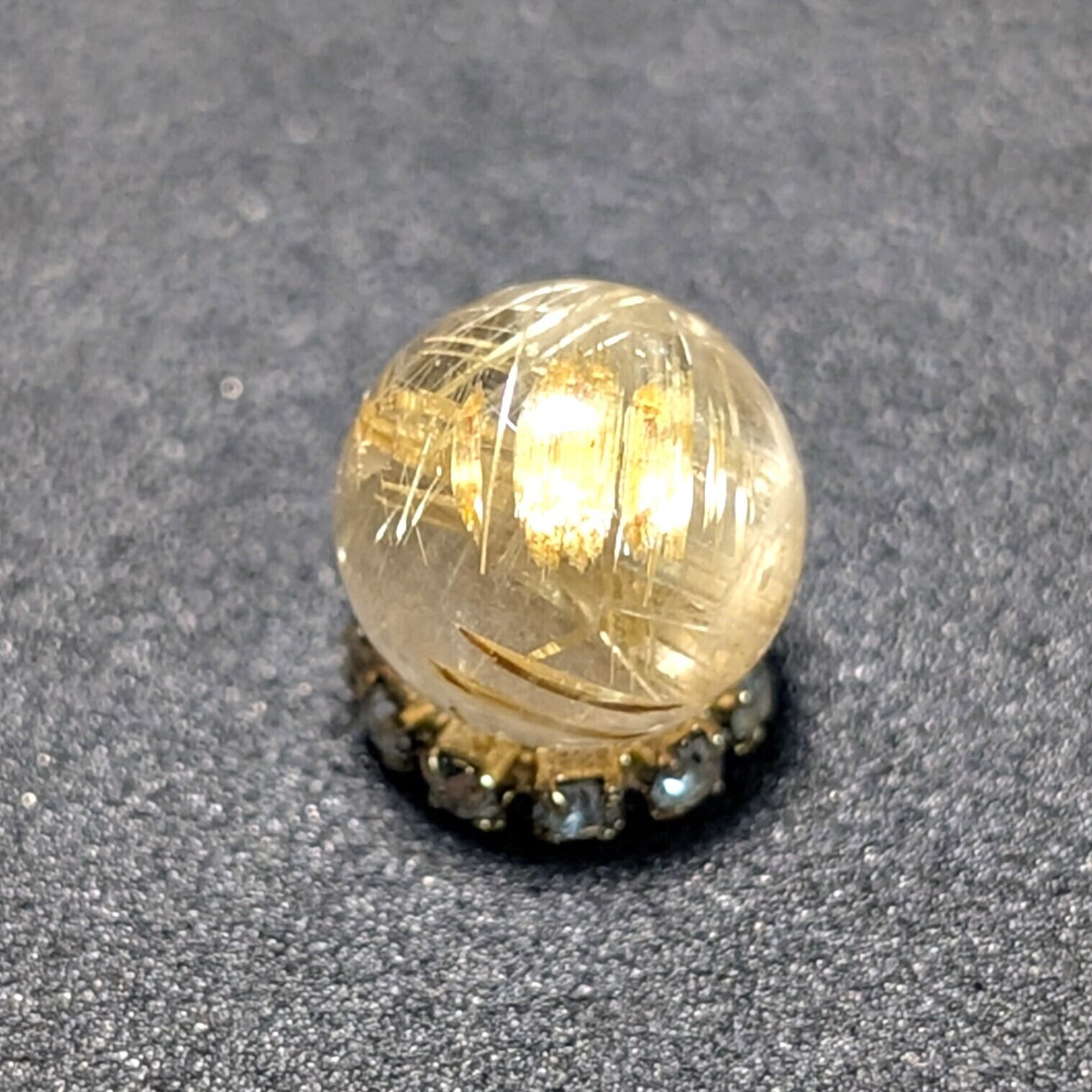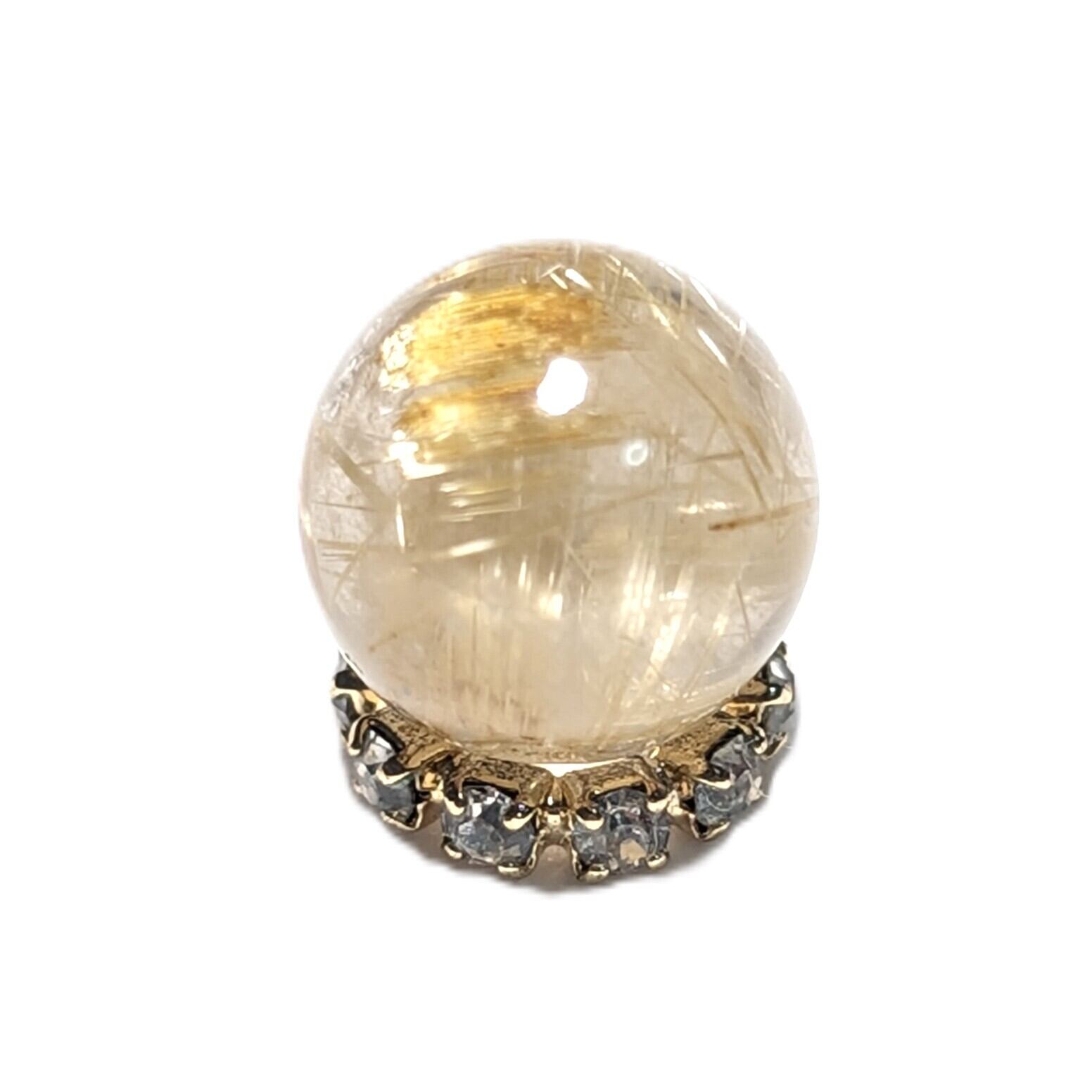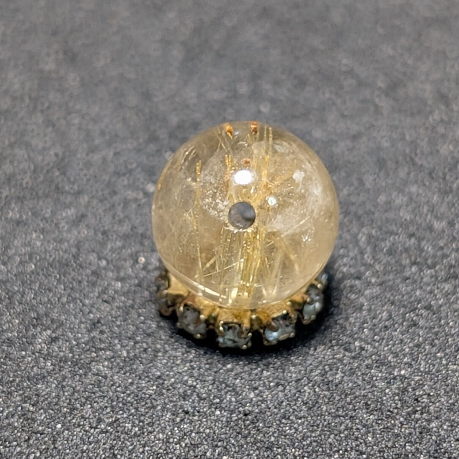 TST32【金針の塊】ゴールド タイチンルチル 8ミリ 1粒売り 貫通穴あり パワーストーン お守り効果 天然石 ハンドメイド リメイク ネックレスやブレスレットに 贈り物 ギフト